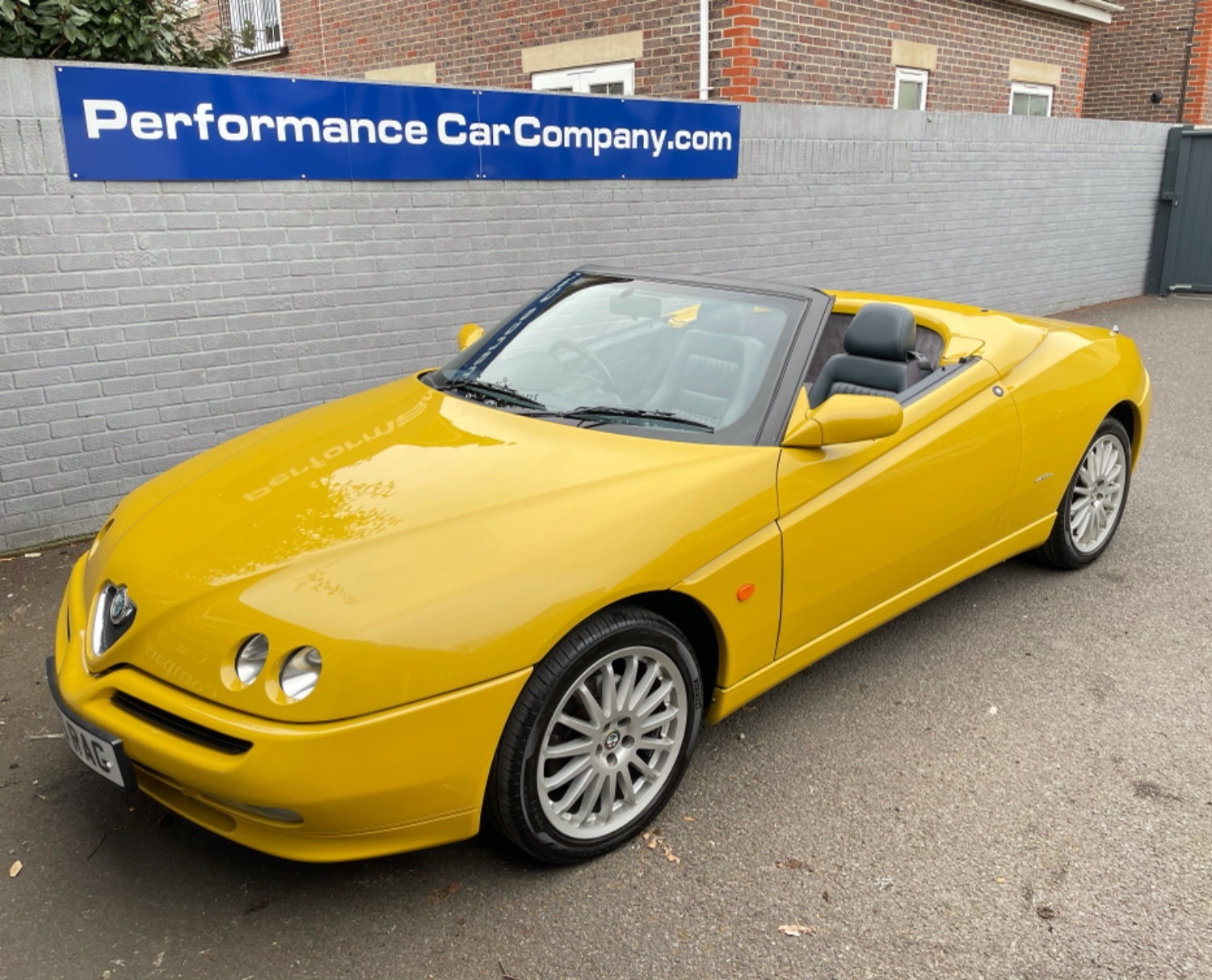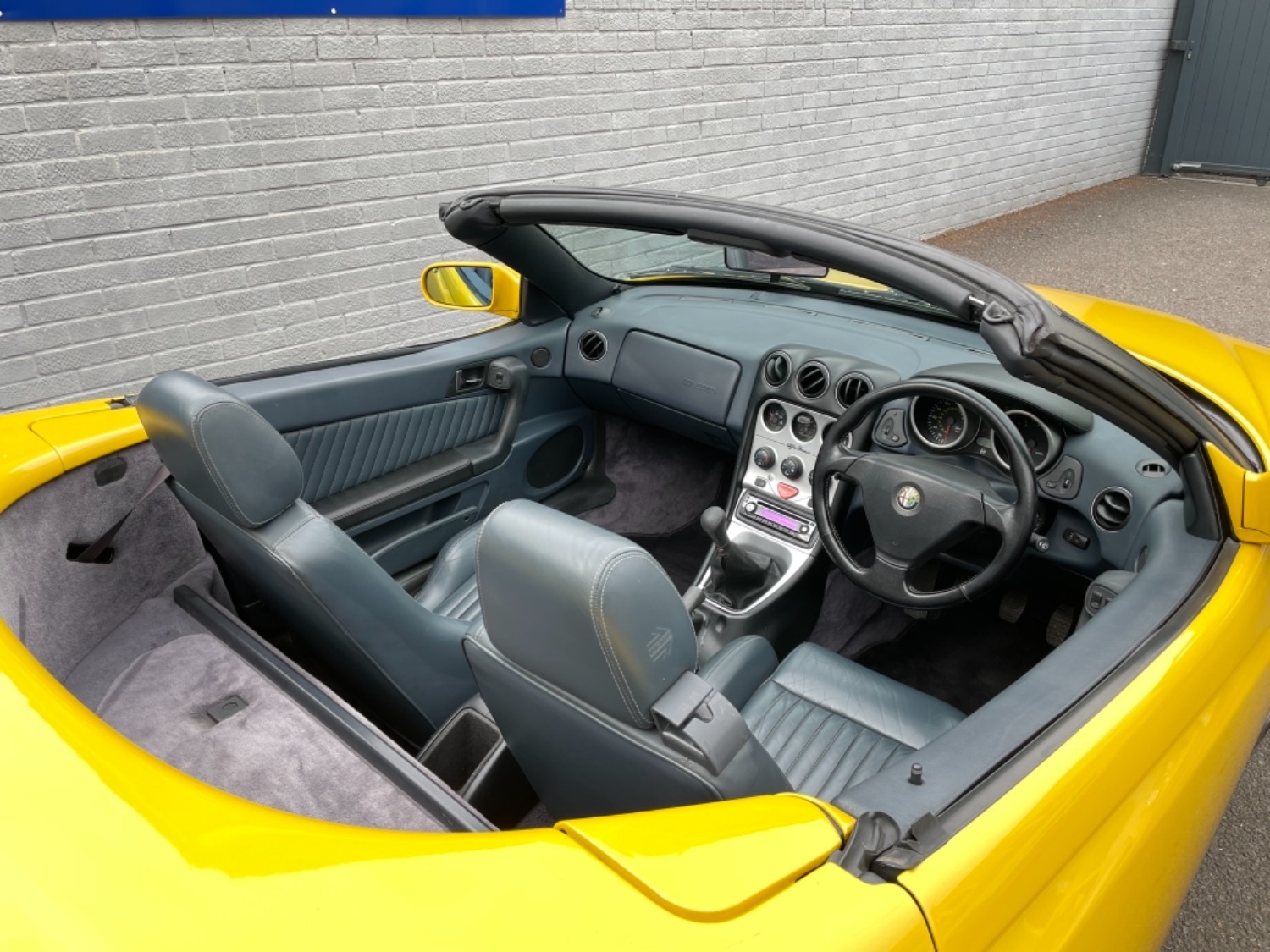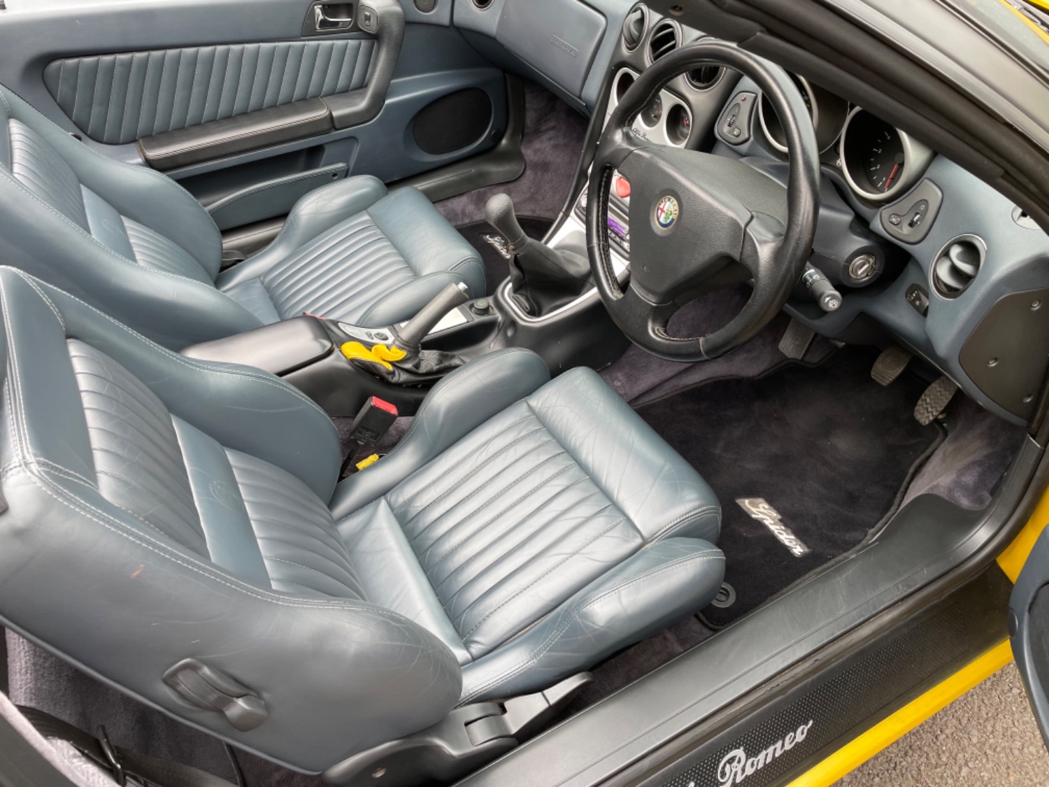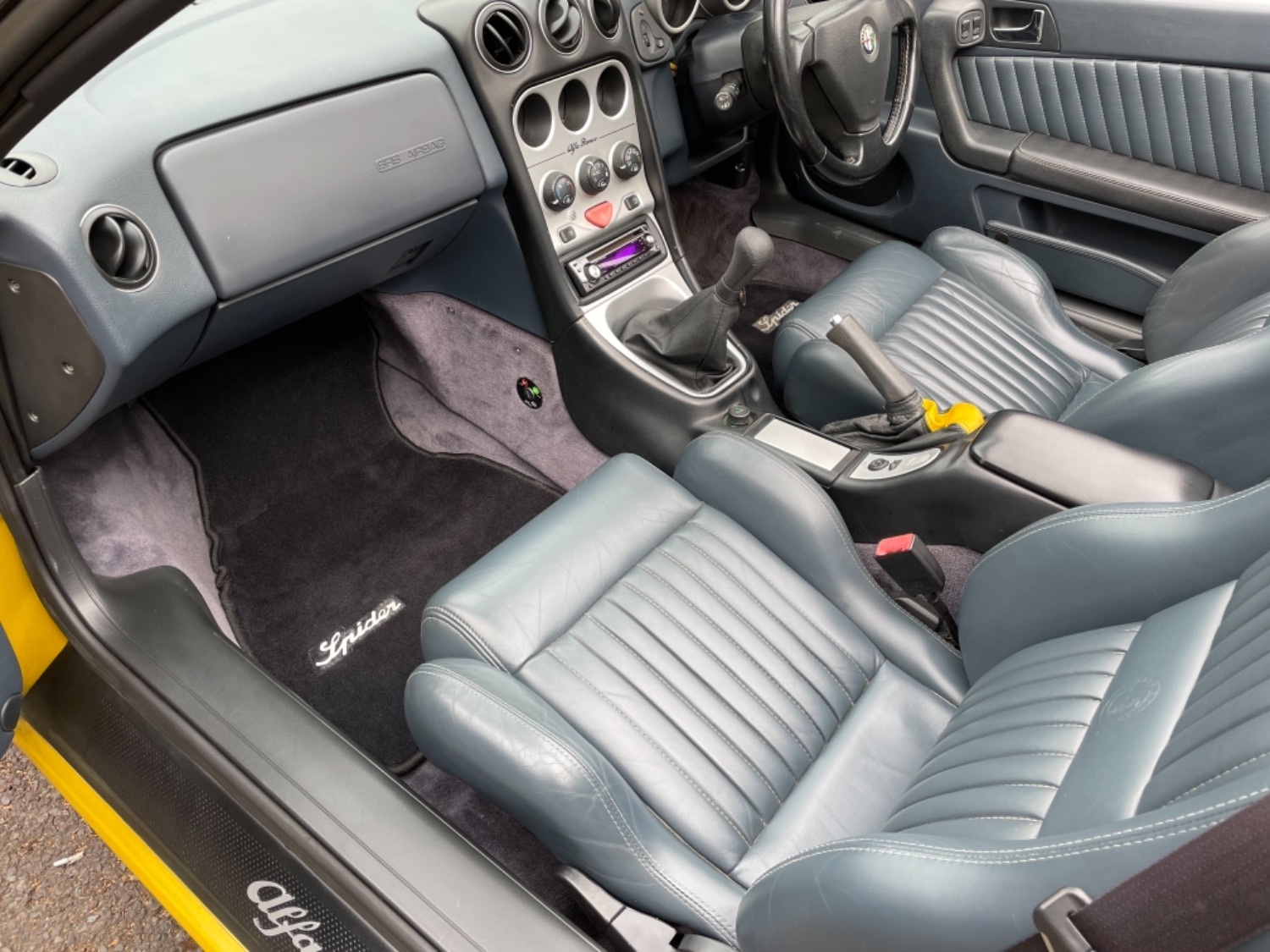 1999 T Alfa Romeo 2.0 Twinspark 16V Spider Finished in Rare Metallic Zoe Yellow and in absolutely Fabulous Condition, Complemented with Navy Blue Leather Seats and Navy Manual Hood, Electric Windows, Remote Alarm And and Central Locking, 17 Alloys with Pirelli P7 Tyres all round, this car was part exchanged into us by previous owner who had purchased the car from an Alfa Specialist and Restorer as they were retiring. The bodywork is presented in absolutely Fantastic condition and we couldn’t believe how good it looked in the flesh, both inside and out. This Alfa Romeo Spider drives superbly and is a pleasure to be in. We have a history folder with lots of bills over the life of this car including at 75000 miles in 2006 the engine was stripped down and pistons and rings were replaced along with water pump by Alfa Romeo Specialist. There was a problem with the mileage display where it became unreadable and this was not rectified for a few years until a secondhand unit was installed when the car had done approximately 90,000 miles, the new unit read 73000 miles and now reads 87,000 miles so we estimate that the car has covered approximately 104000 miles in total, not that you would believe it if your saw it as it looks fabulous and is a pleasure to Drive. Due to the Speedo issue we are unable to warrant the mileage but this Alfa makes a superb Useable Classic car which is still a head Turner and all for less than Five Thousand Pounds. UK Supplied with History Folder including engine Rebuild, Handbook and Spare Key.