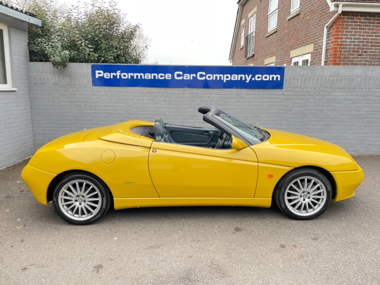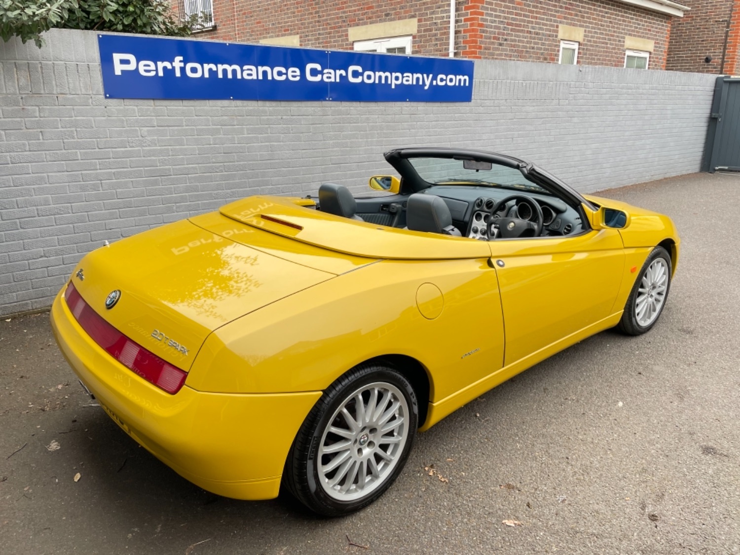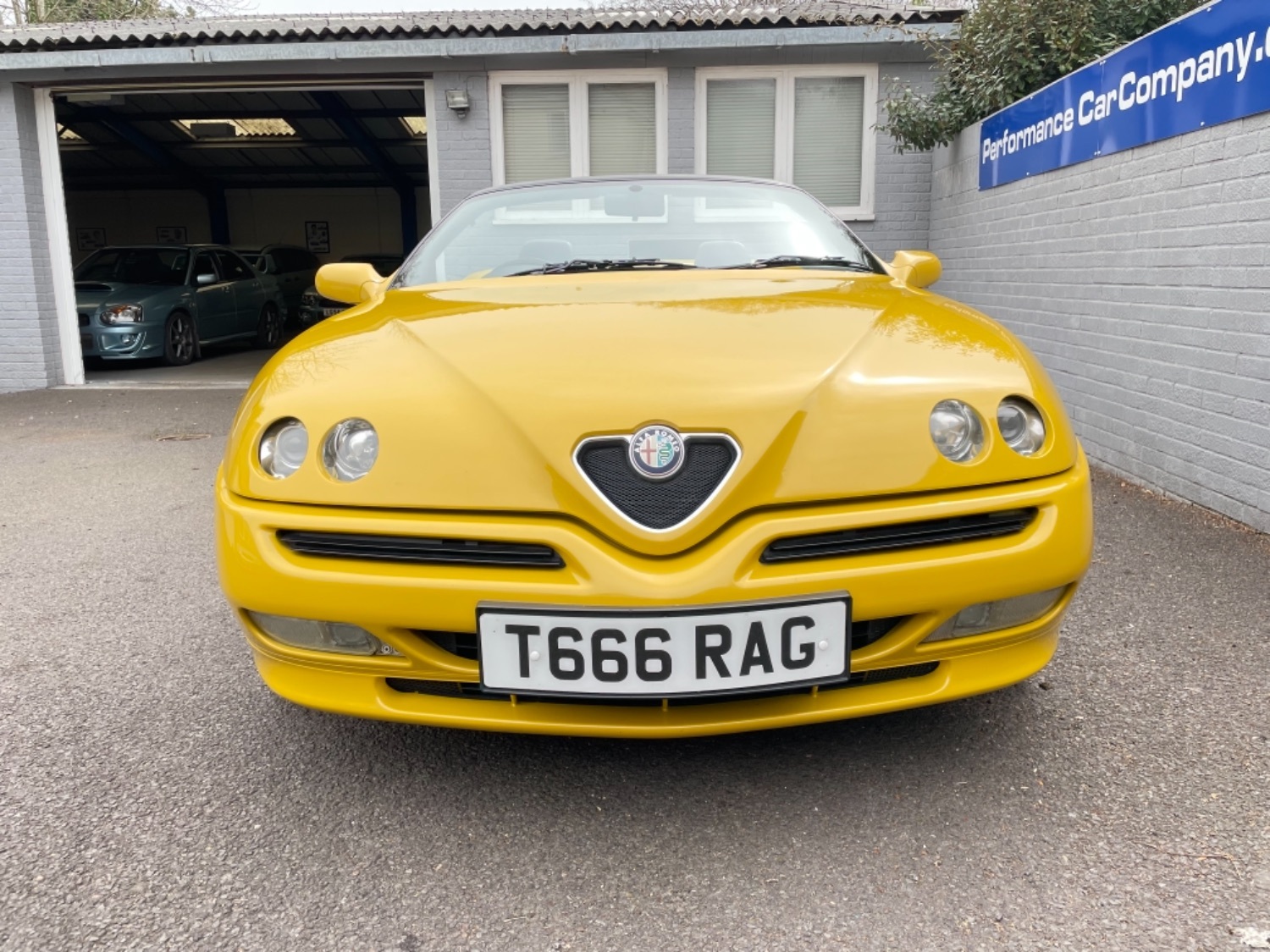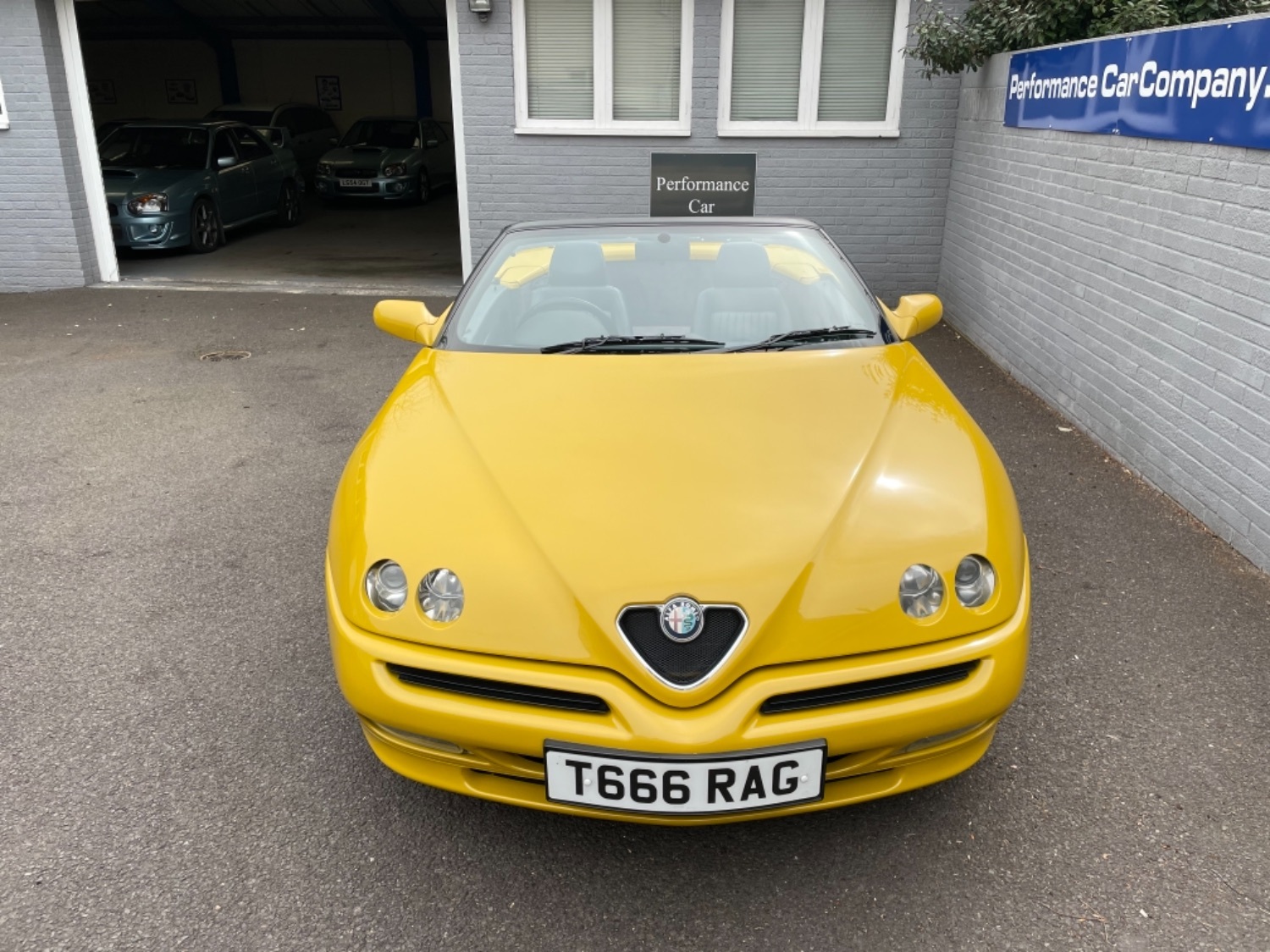 1999 T Alfa Romeo 2.0 Twinspark 16V Spider Finished in Rare Metallic Zoe Yellow and in absolutely Fabulous Condition, Complemented with Navy Blue Leather Seats and Navy Manual Hood, Electric Windows, Remote Alarm And and Central Locking, 17 Alloys with Pirelli P7 Tyres all round, this car was part exchanged into us by previous owner who had purchased the car from an Alfa Specialist and Restorer as they were retiring. The bodywork is presented in absolutely Fantastic condition and we couldn’t believe how good it looked in the flesh, both inside and out. This Alfa Romeo Spider drives superbly and is a pleasure to be in. We have a history folder with lots of bills over the life of this car including at 75000 miles in 2006 the engine was stripped down and pistons and rings were replaced along with water pump by Alfa Romeo Specialist. There was a problem with the mileage display where it became unreadable and this was not rectified for a few years until a secondhand unit was installed when the car had done approximately 90,000 miles, the new unit read 73000 miles and now reads 87,000 miles so we estimate that the car has covered approximately 104000 miles in total, not that you would believe it if your saw it as it looks fabulous and is a pleasure to Drive. Due to the Speedo issue we are unable to warrant the mileage but this Alfa makes a superb Useable Classic car which is still a head Turner and all for less than Five Thousand Pounds. UK Supplied with History Folder including engine Rebuild, Handbook and Spare Key.