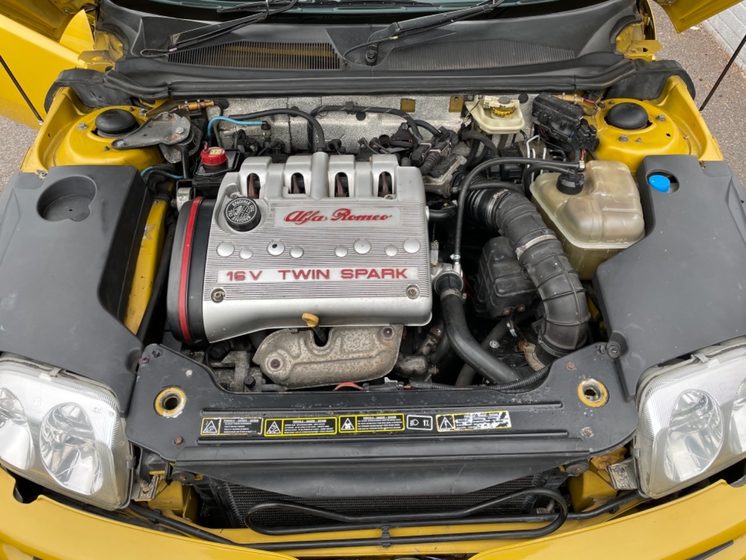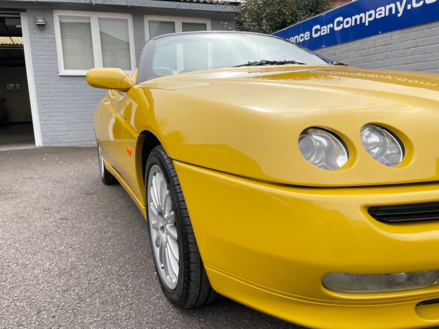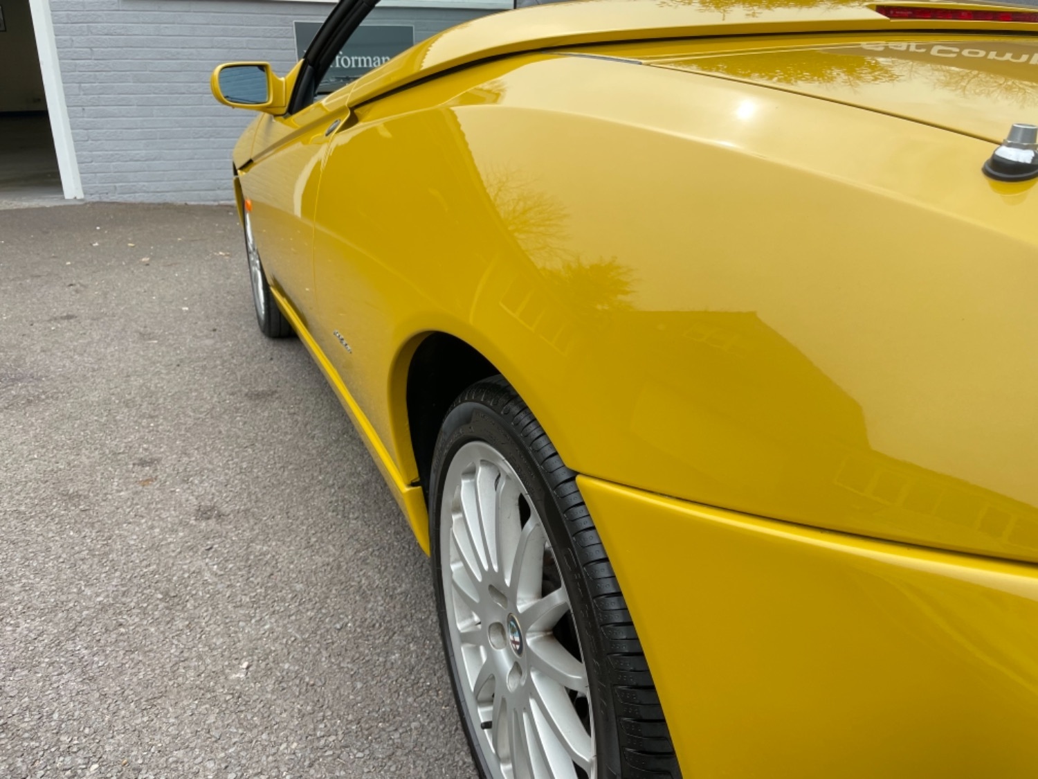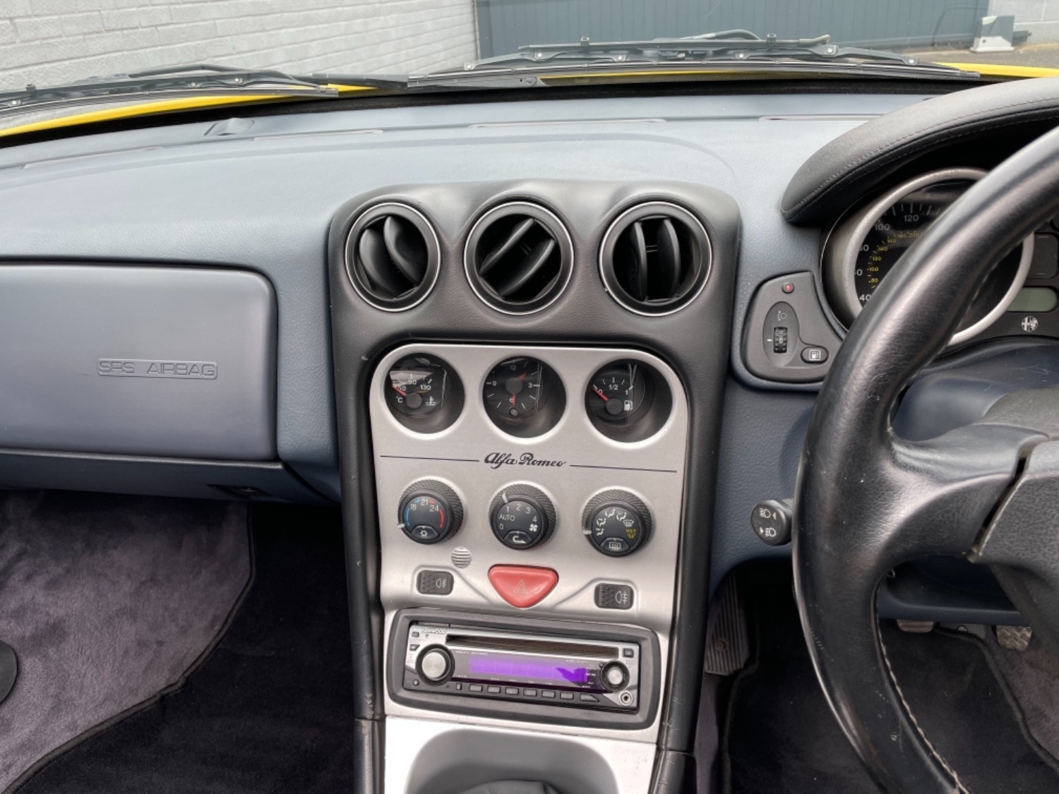 1999 T Alfa Romeo 2.0 Twinspark 16V Spider Finished in Rare Metallic Zoe Yellow and in absolutely Fabulous Condition, Complemented with Navy Blue Leather Seats and Navy Manual Hood, Electric Windows, Remote Alarm And and Central Locking, 17 Alloys with Pirelli P7 Tyres all round, this car was part exchanged into us by previous owner who had purchased the car from an Alfa Specialist and Restorer as they were retiring. The bodywork is presented in absolutely Fantastic condition and we couldn’t believe how good it looked in the flesh, both inside and out. This Alfa Romeo Spider drives superbly and is a pleasure to be in. We have a history folder with lots of bills over the life of this car including at 75000 miles in 2006 the engine was stripped down and pistons and rings were replaced along with water pump by Alfa Romeo Specialist. There was a problem with the mileage display where it became unreadable and this was not rectified for a few years until a secondhand unit was installed when the car had done approximately 90,000 miles, the new unit read 73000 miles and now reads 87,000 miles so we estimate that the car has covered approximately 104000 miles in total, not that you would believe it if your saw it as it looks fabulous and is a pleasure to Drive. Due to the Speedo issue we are unable to warrant the mileage but this Alfa makes a superb Useable Classic car which is still a head Turner and all for less than Five Thousand Pounds. UK Supplied with History Folder including engine Rebuild, Handbook and Spare Key.