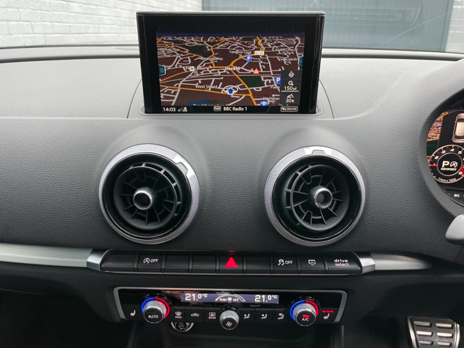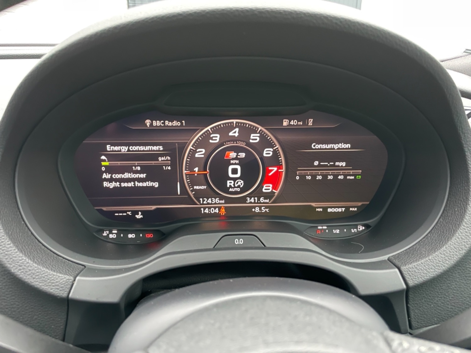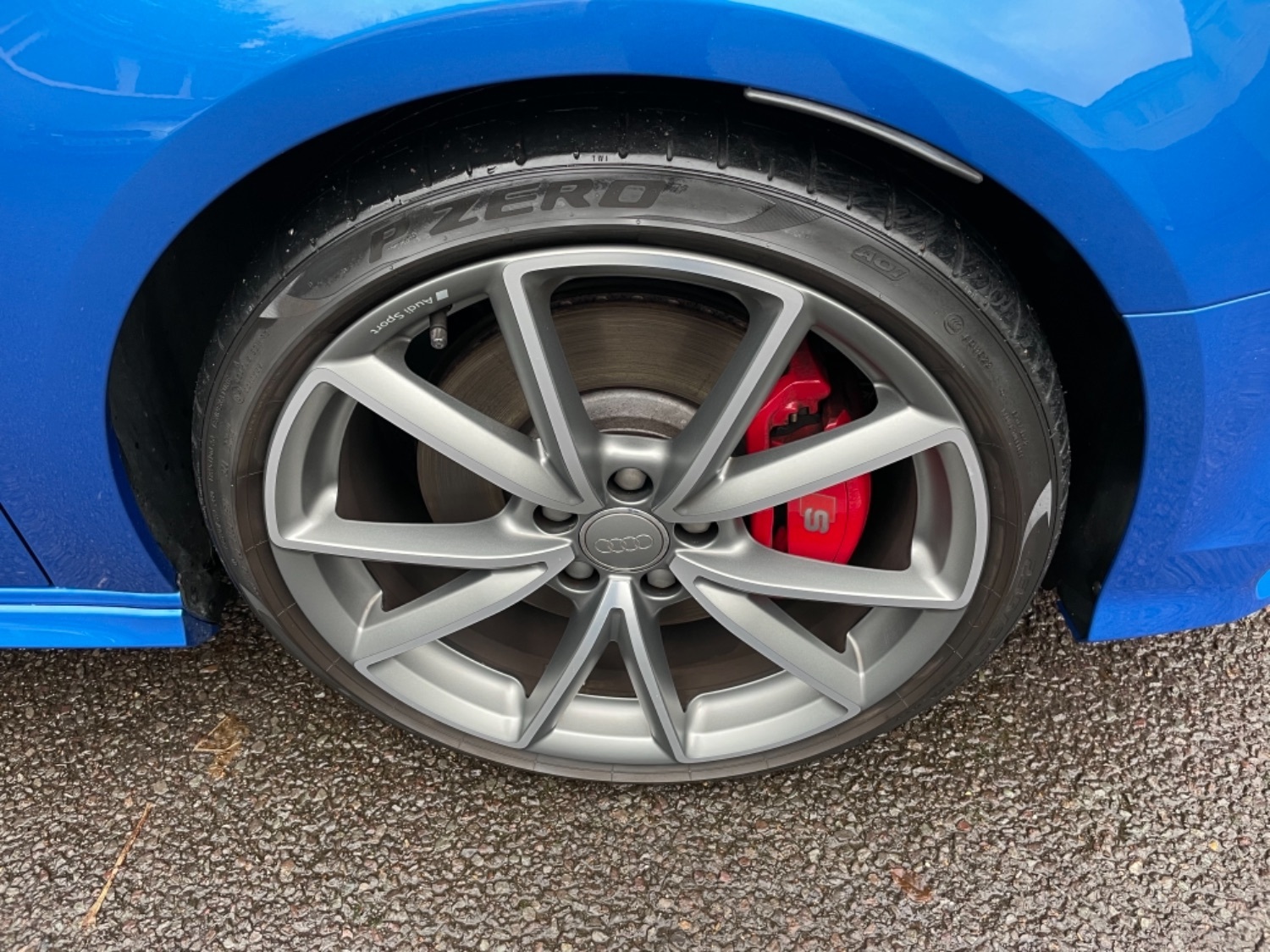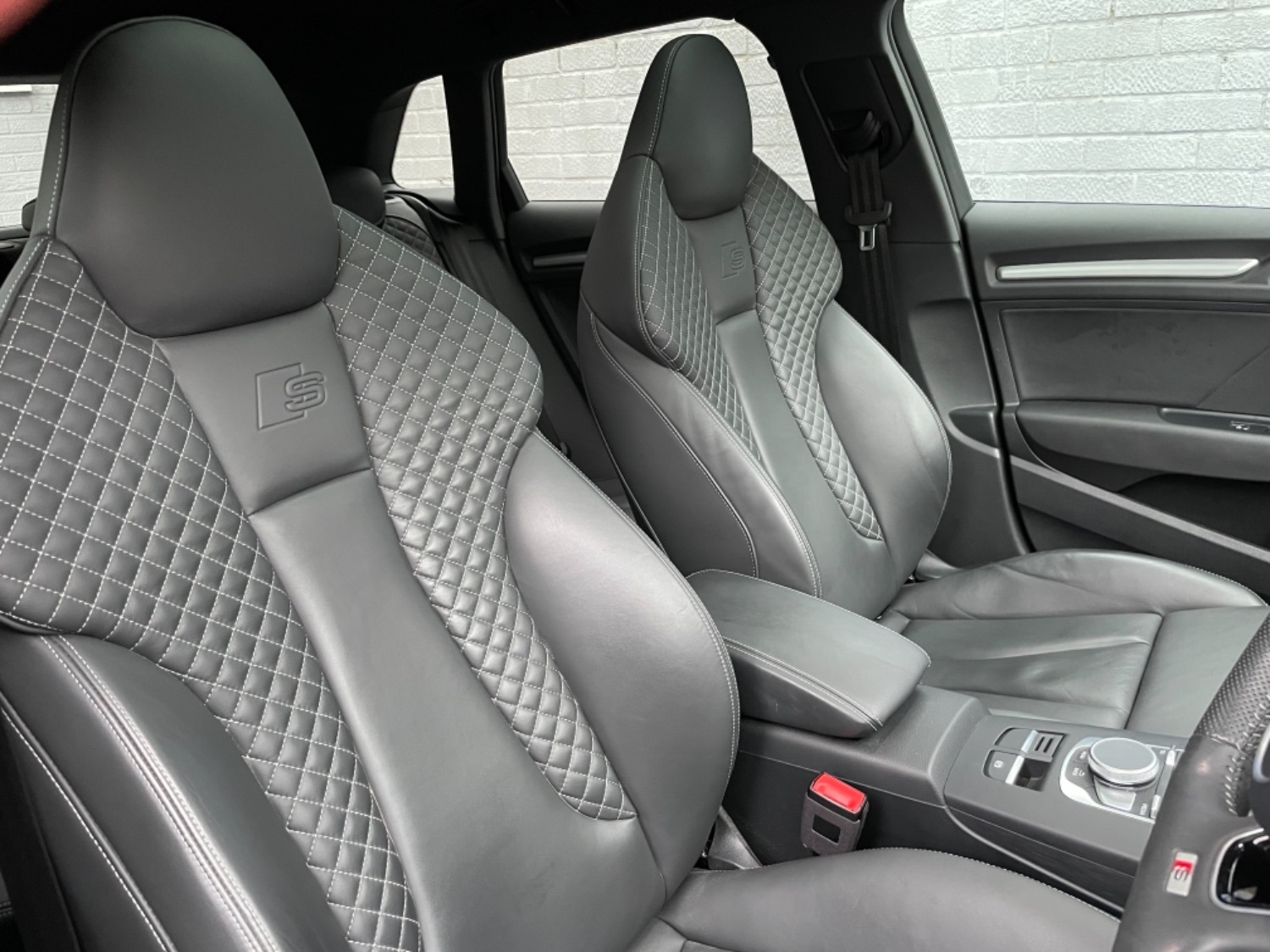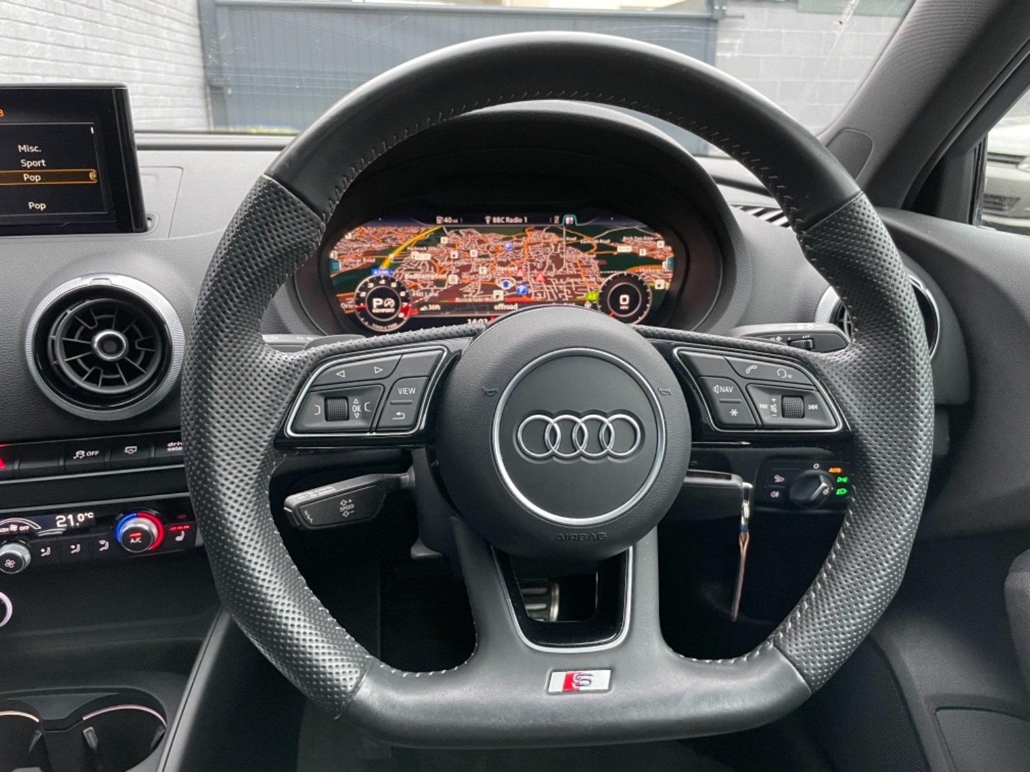 2017/67 Finished in Ara Blue Crystal Effect with Only 12,000 miles with Full Audi Main Dealer service history with Services Entries at 7526 miles, 10737 miles and 12098 miles in September 2020 including Haldex Oil Change. Purchased From Audi by Current Owner at 1700 miles in April 2018. Black SuperSports Wing Back Leather Seats with Quilted Leather with White Stitching and Electric Lumbar Support, Heated Seats, Digital Cockpit, Flat Bottom Sports Multi Function Steering Wheel, Cruise Control, Electric Panoramic Roof, MMi Satellite Navigation Plus, 19 Unmarked 5 V Spoke Titanium Alloys with Pirelli Pzero Tyres All Round, Electric Folding Mirrors, Rear Privacy Glass, Climate Air Conditioning, Electric Windows, Remote Alarm and Central Locking, Rear Parking Sensors, Xenon Headlights, Auto Lights, Factory Bluetooth, Audi Drive Select, Audi Puddle Lights. Absolutely Fantastic Original Condition and Great Opportunity to Buy a Very Low mileage S3 Sportback with Superb Specification and in Stunning Colour Combination. UK Supplied with Full Book pack, Spare Key and Ready to go.