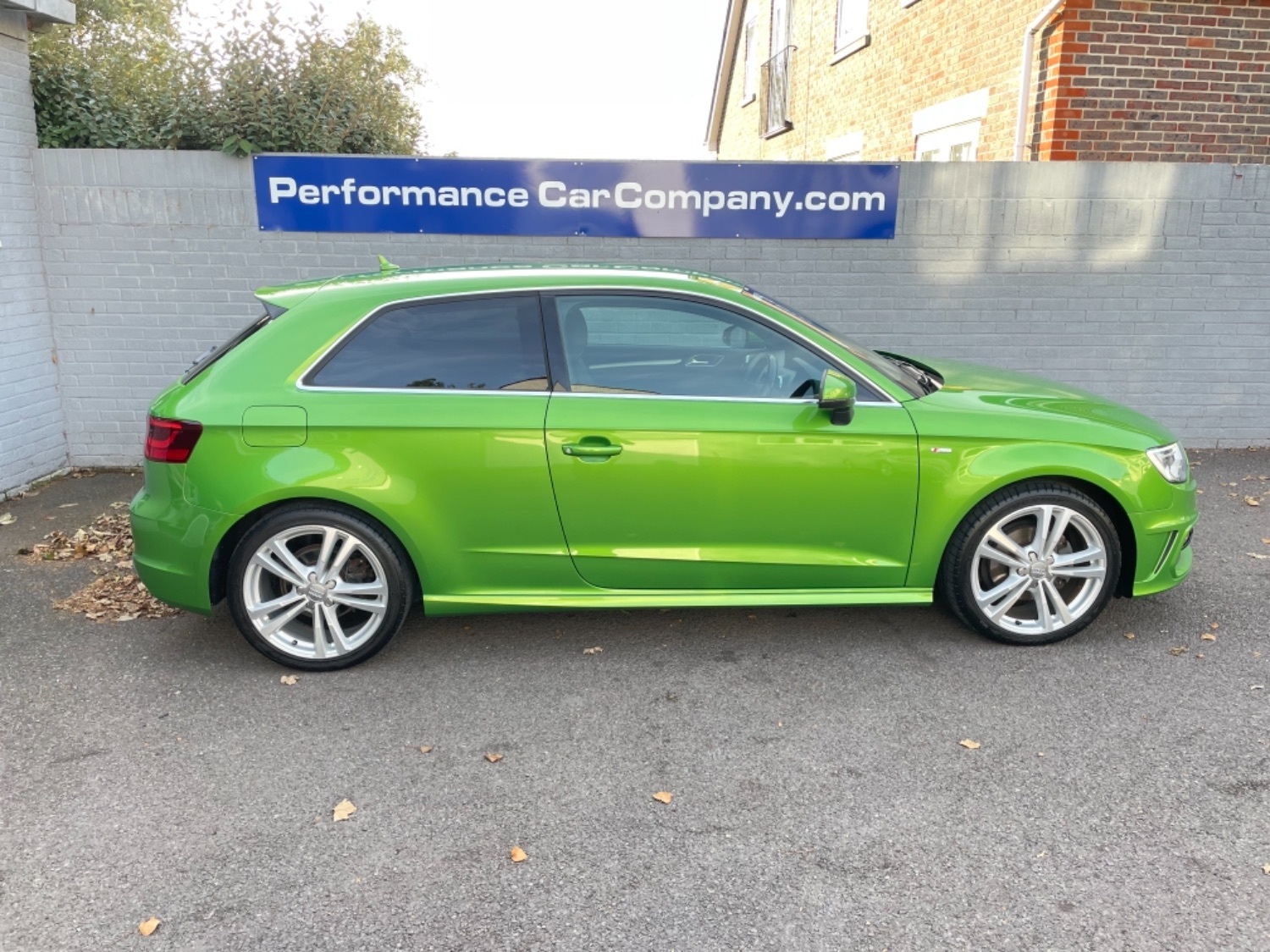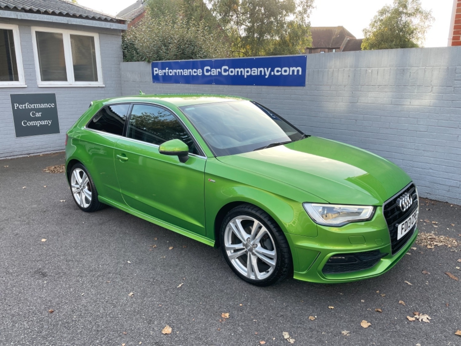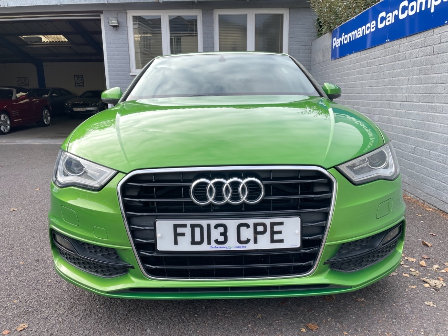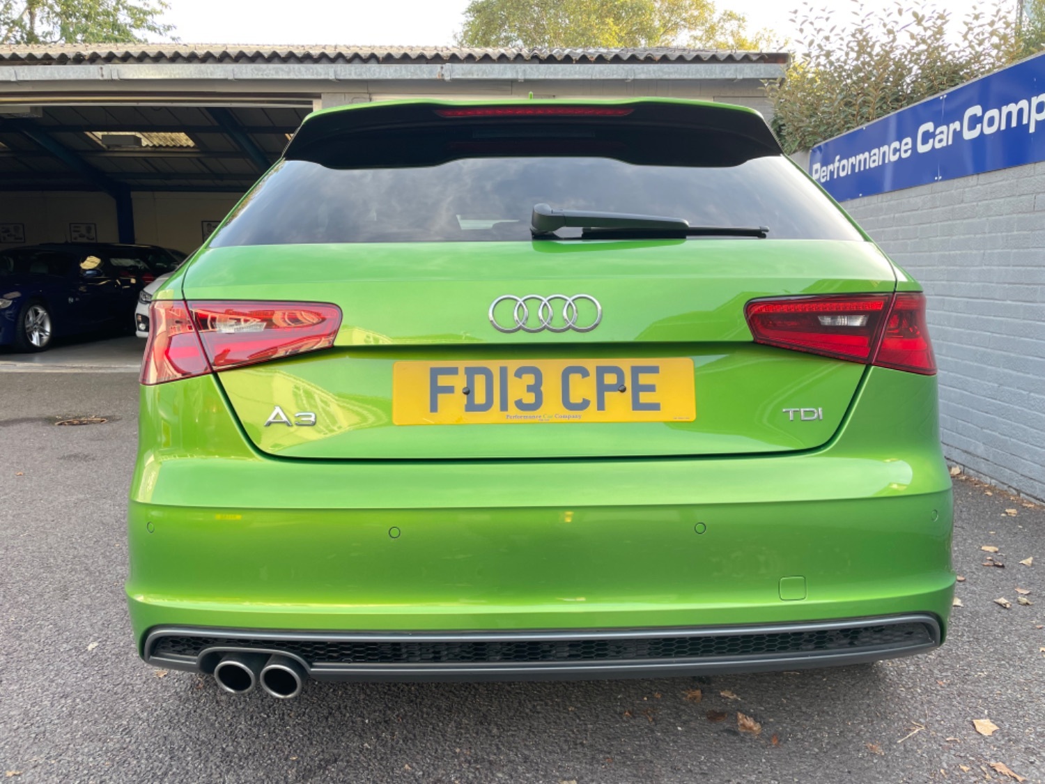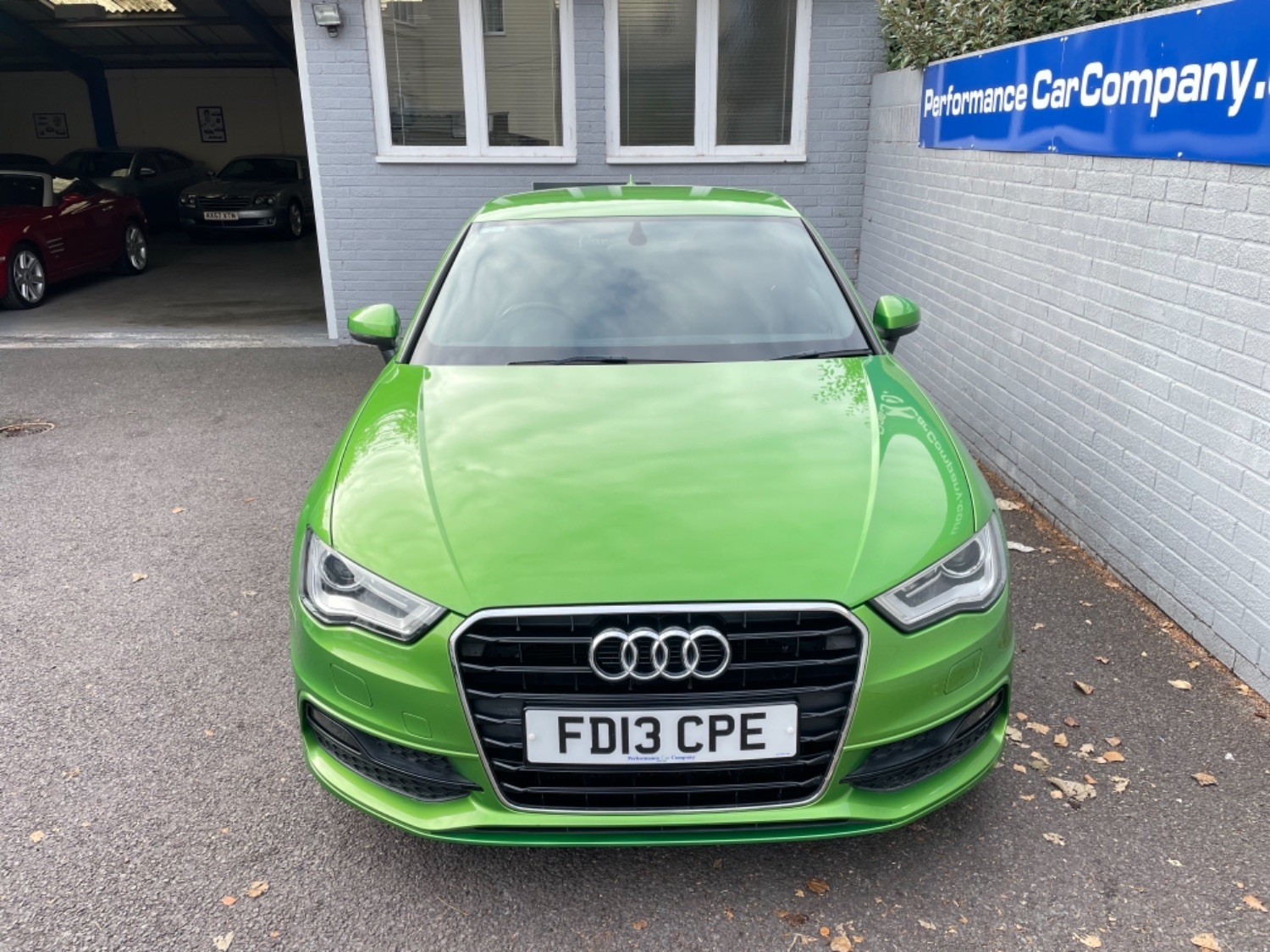 2013 / 13 Audi A3 2.0 TDi S-Line Finished in Audi A3 Exclusive Paint Finish Metallic Java Green which was an Expensive Option which cost over 2000 pounds, Only 35,000 miles with Full Audi Main Dealer Service History with Services at 9132 miles, 22826 miles, 26371 miles and 32563 miles, 2 Owners from New with last Owner Purchasing from Audi and has owned for 5 years. Full Black Leather, Heated Seats, Satellite Navigation, Factory Bluetooth, 18 Alloys with Dunlop Sport Max Tyres All round, 6 Speed Manual, Air Conditioning, Electric Windows, Electric Mirrors, Remote Alarm and Central Locking. Absolutely Superb Original Condition and Looks Absolutely Stunning in this Colour and with Full Black Leather. If you are looking for an A3 2.0 TDi with a difference then this car certainly is, we could not find another one like it so quite possibly the only like this in the UK.