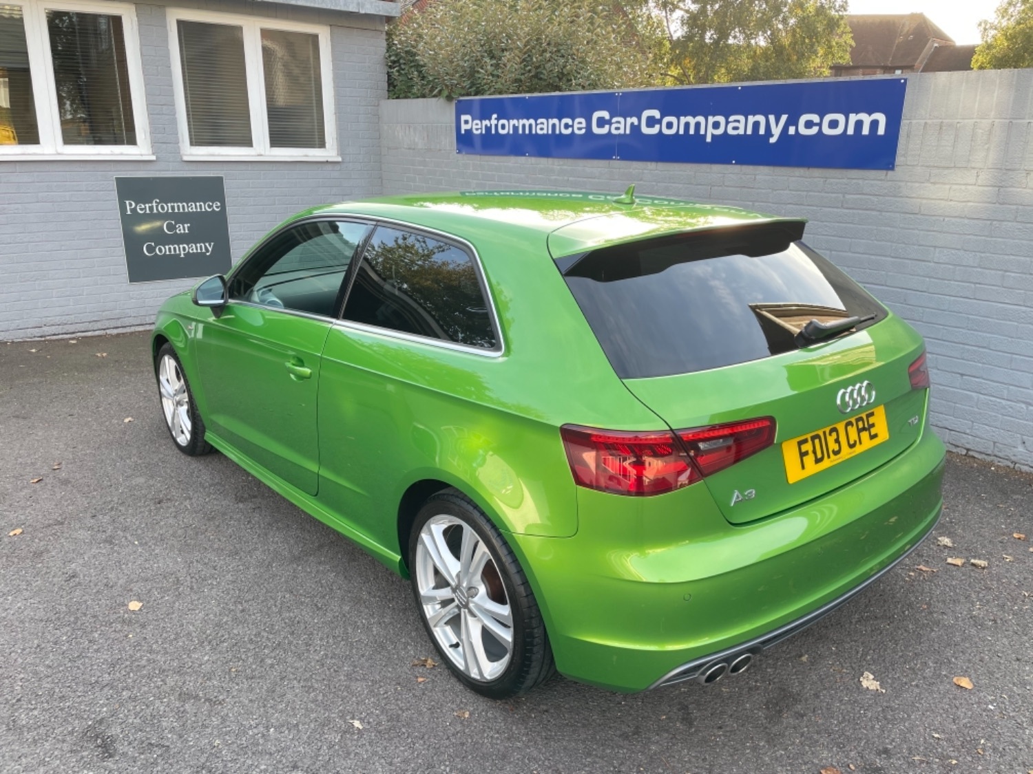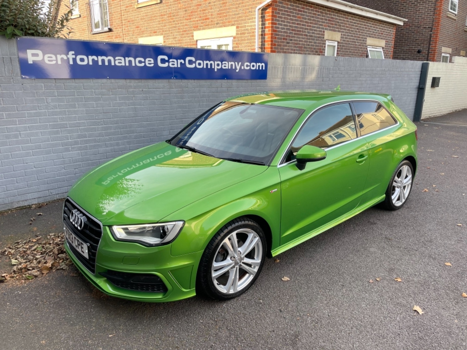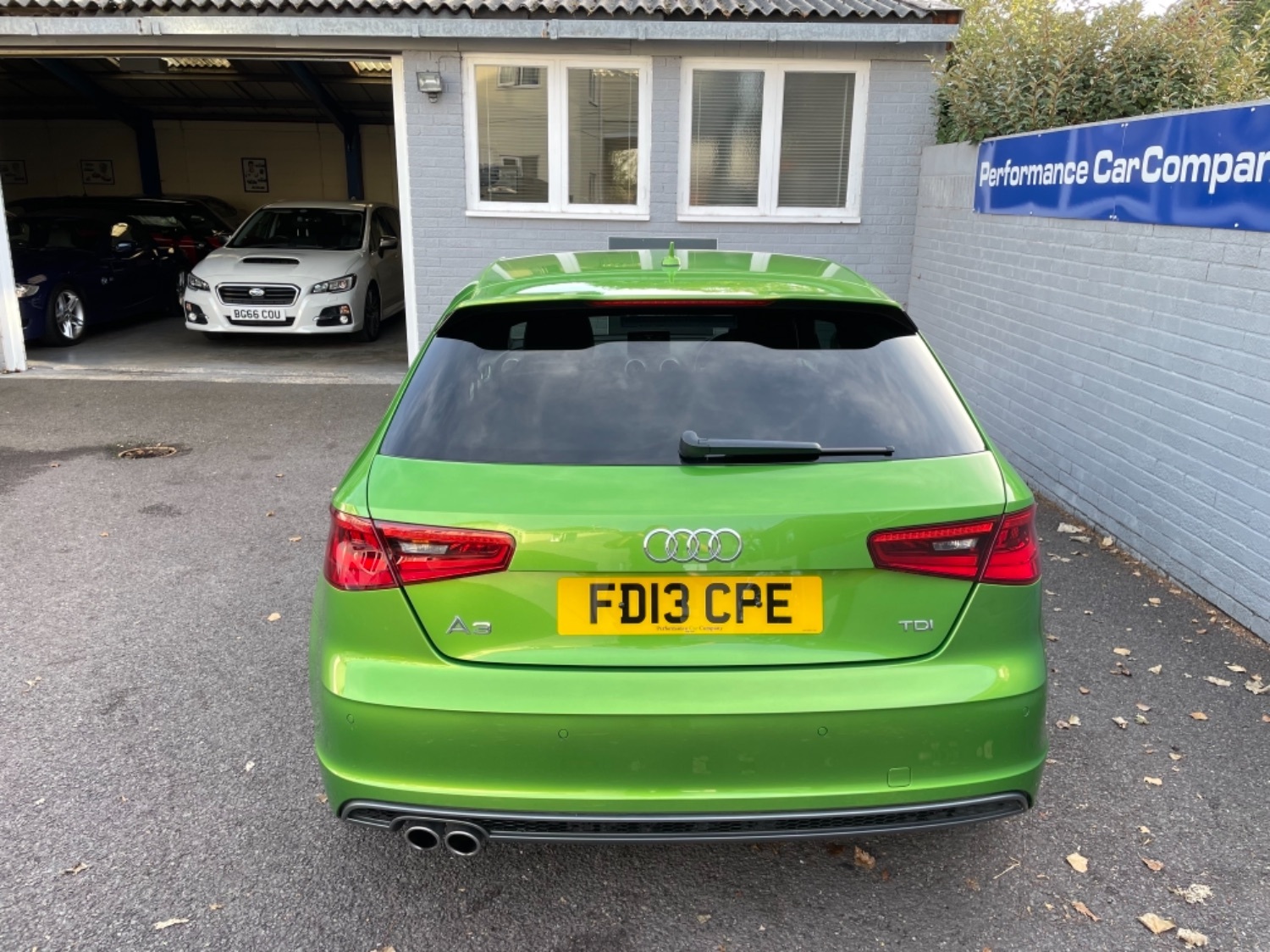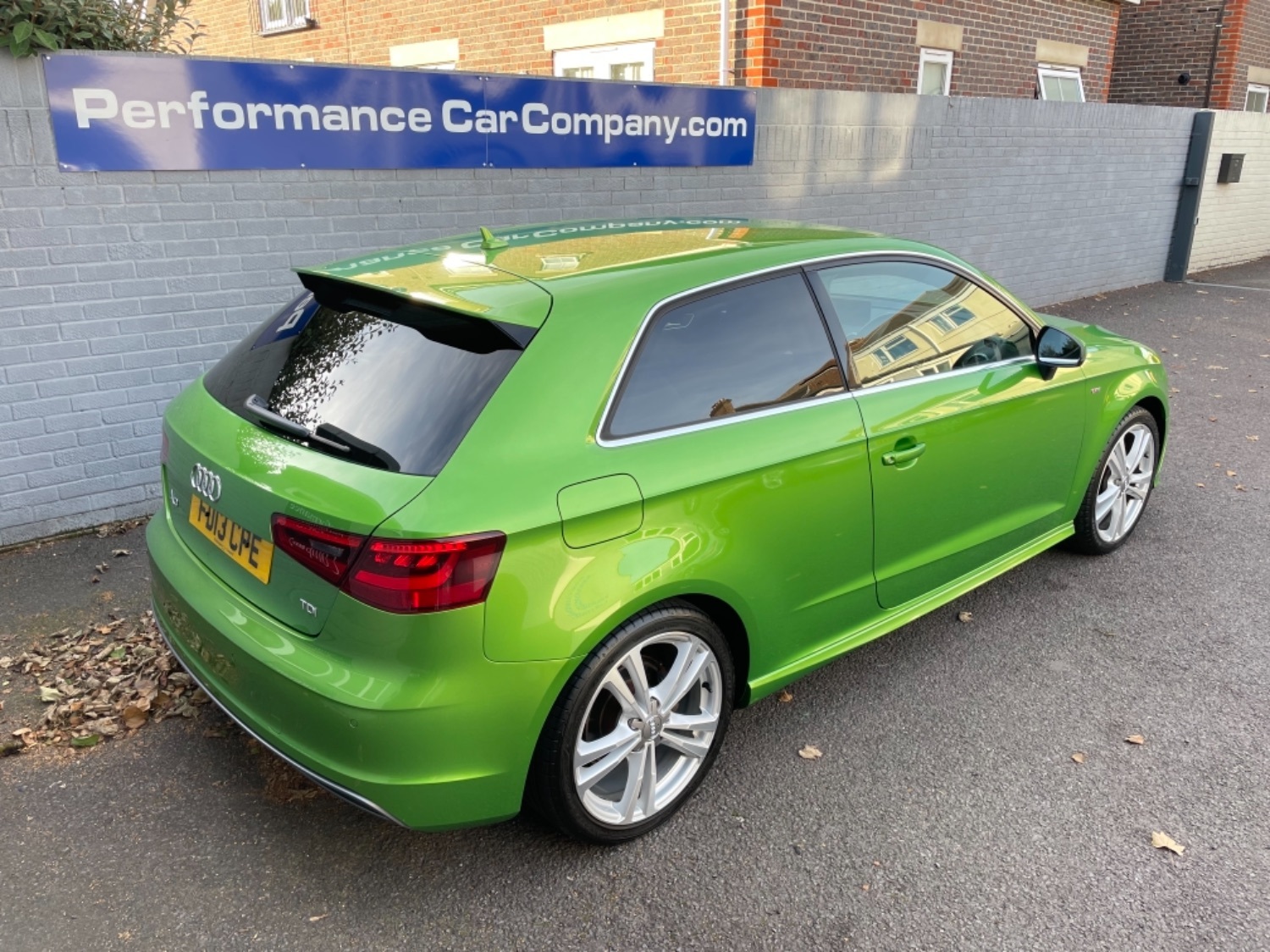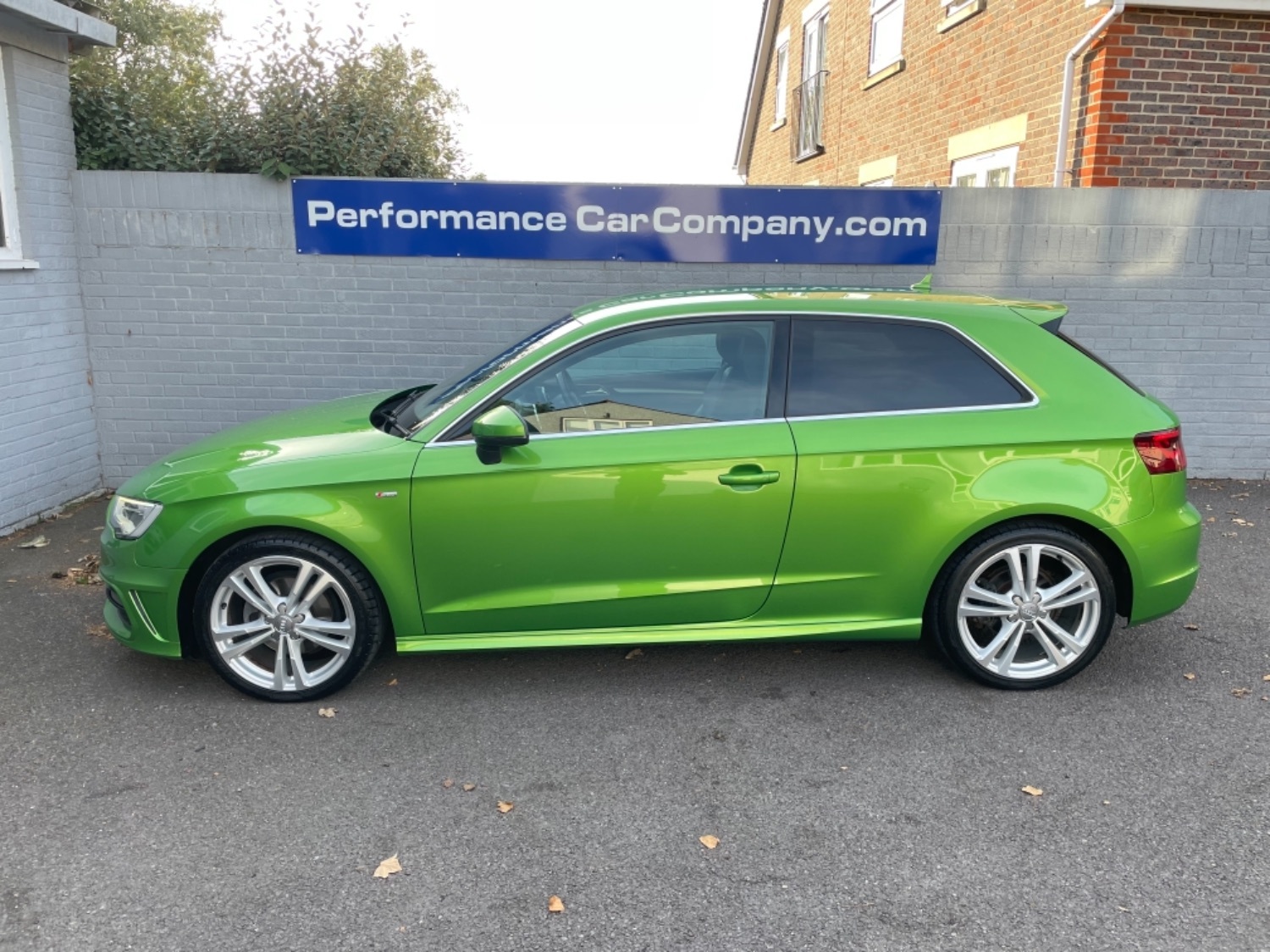 2013 / 13 Audi A3 2.0 TDi S-Line Finished in Audi A3 Exclusive Paint Finish Metallic Java Green which was an Expensive Option which cost over 2000 pounds, Only 35,000 miles with Full Audi Main Dealer Service History with Services at 9132 miles, 22826 miles, 26371 miles and 32563 miles, 2 Owners from New with last Owner Purchasing from Audi and has owned for 5 years. Full Black Leather, Heated Seats, Satellite Navigation, Factory Bluetooth, 18 Alloys with Dunlop Sport Max Tyres All round, 6 Speed Manual, Air Conditioning, Electric Windows, Electric Mirrors, Remote Alarm and Central Locking. Absolutely Superb Original Condition and Looks Absolutely Stunning in this Colour and with Full Black Leather. If you are looking for an A3 2.0 TDi with a difference then this car certainly is, we could not find another one like it so quite possibly the only like this in the UK.