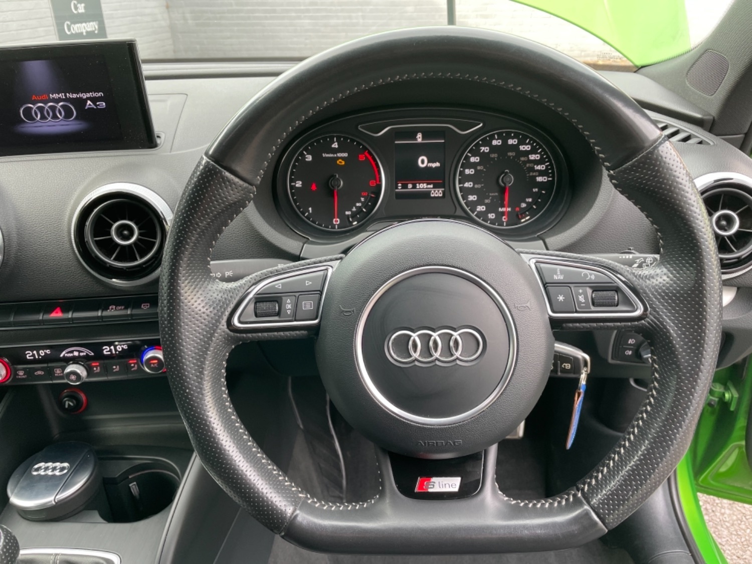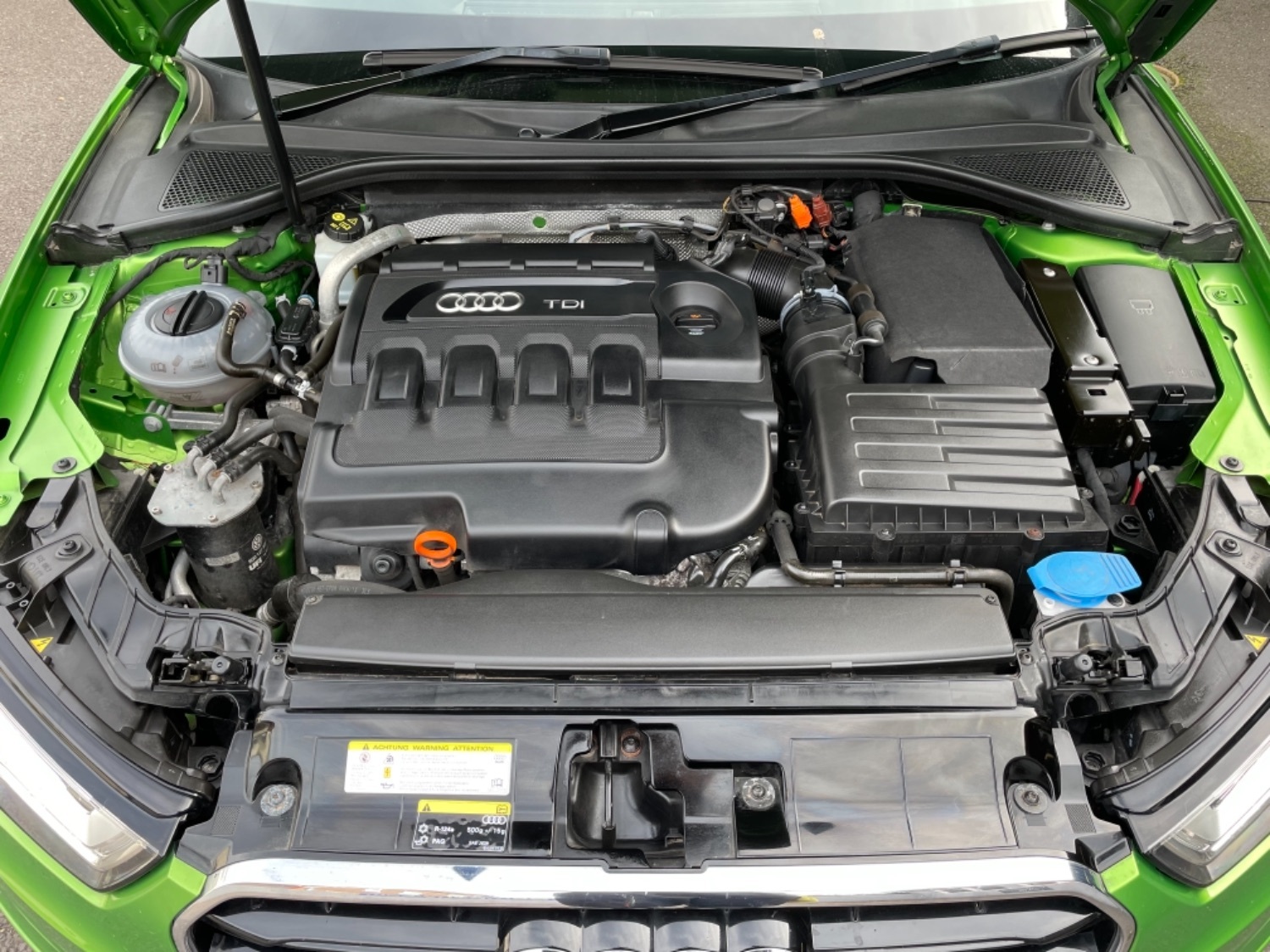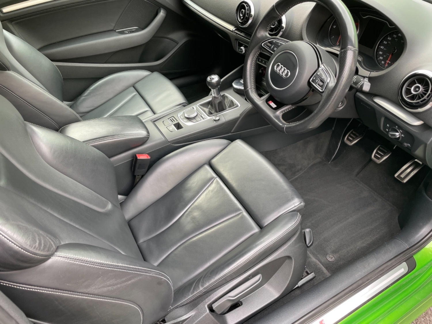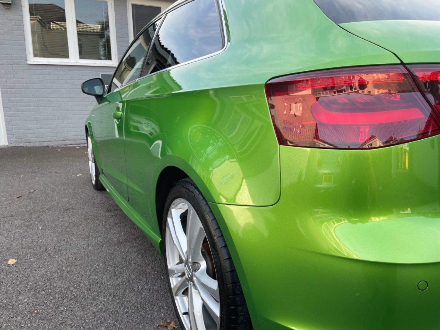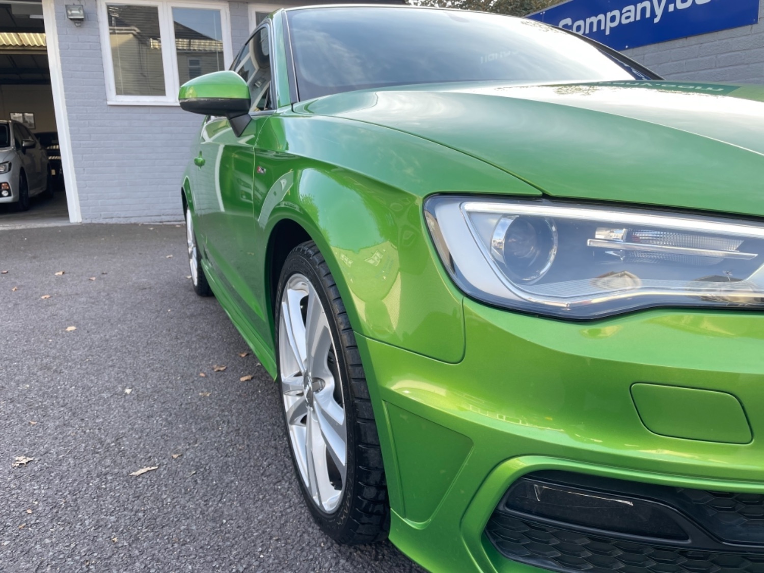 2013 / 13 Audi A3 2.0 TDi S-Line Finished in Audi A3 Exclusive Paint Finish Metallic Java Green which was an Expensive Option which cost over 2000 pounds, Only 35,000 miles with Full Audi Main Dealer Service History with Services at 9132 miles, 22826 miles, 26371 miles and 32563 miles, 2 Owners from New with last Owner Purchasing from Audi and has owned for 5 years. Full Black Leather, Heated Seats, Satellite Navigation, Factory Bluetooth, 18 Alloys with Dunlop Sport Max Tyres All round, 6 Speed Manual, Air Conditioning, Electric Windows, Electric Mirrors, Remote Alarm and Central Locking. Absolutely Superb Original Condition and Looks Absolutely Stunning in this Colour and with Full Black Leather. If you are looking for an A3 2.0 TDi with a difference then this car certainly is, we could not find another one like it so quite possibly the only like this in the UK.