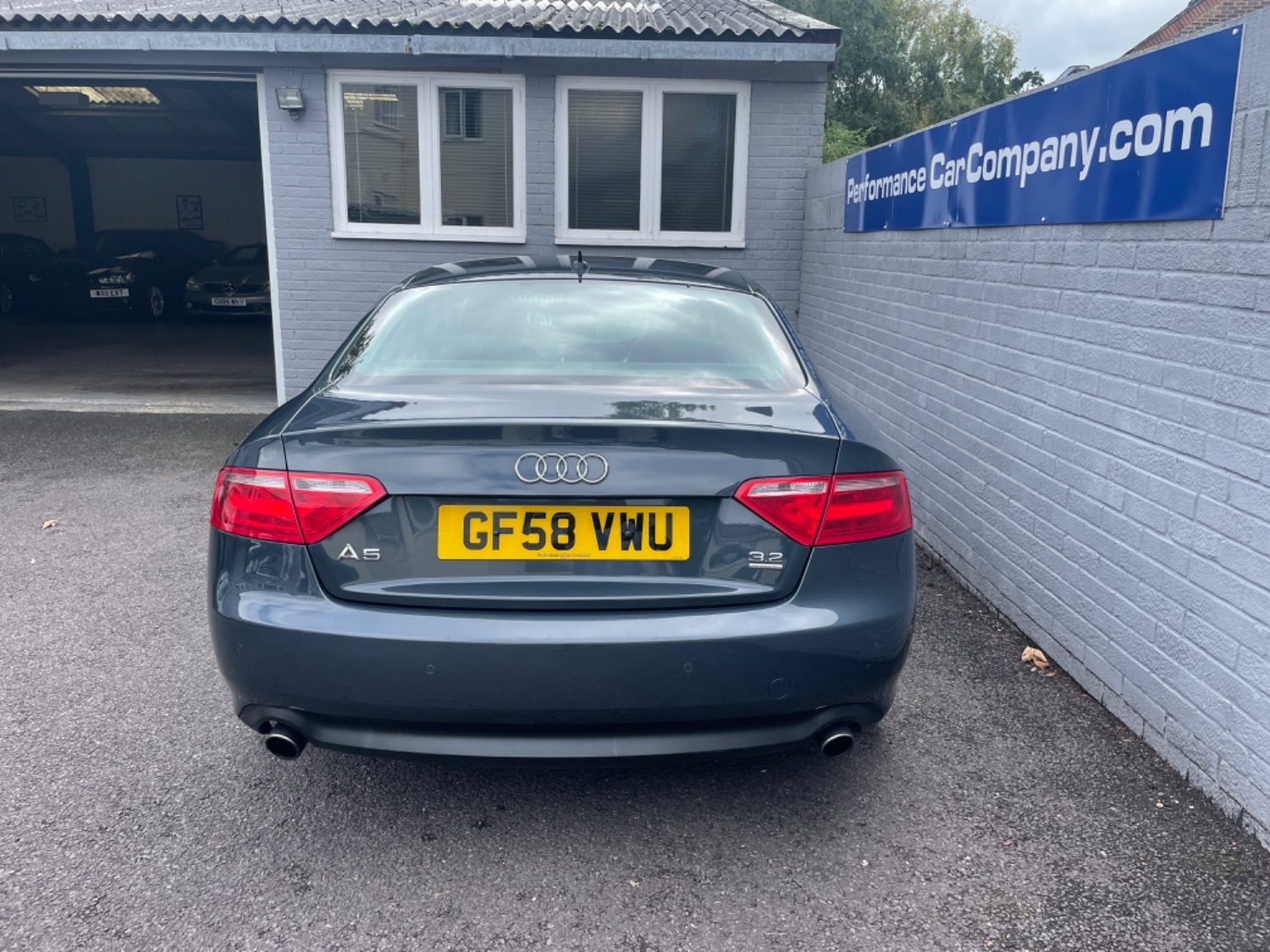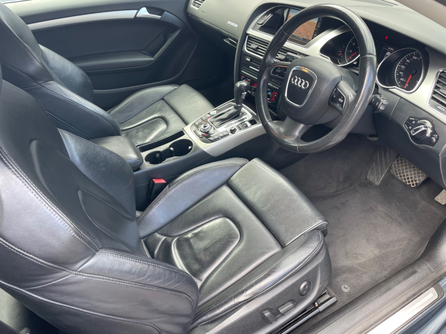 2008 58 Audi A5 3.2 Sport Quattro Tiptronic Finished in Metallic Meteor Grey having covered 91,000 miles with Full Service History,Electric Black Leather Sports seats, Heated Seats, Factory Audi Satellite Navigation, Audi Multimedia, Audi Bluetooth, Rear Parking Sensors, Multi Function Steering Wheel with Gear paddle change, Cruise Control, 18 Alloys, Electric Folding Mirrors, Electric Windows, Climate Air Conditioning, Xenons, Autolights, Daytime Running Lights, Superb Condition and Value for great Specification Audi A5. UK Supplied with Full Book Pack and Spare Key.