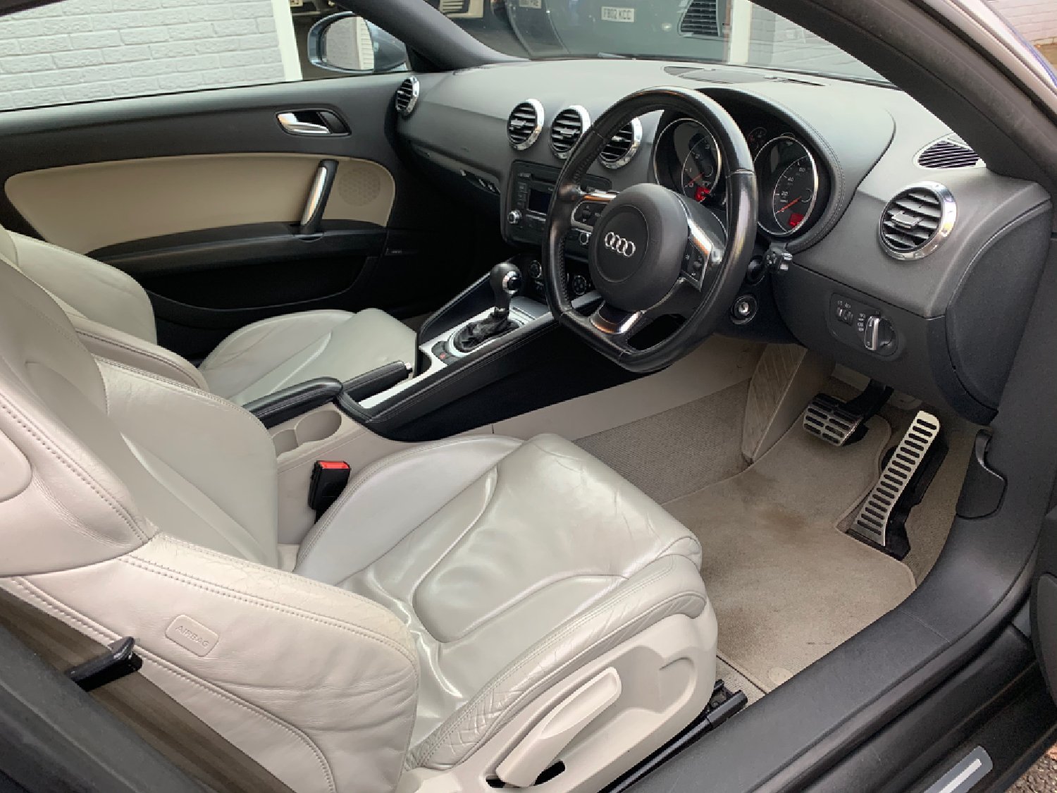 Finished in Metallic Grey with 100000 miles and a Full Main Audi Dealer Service History with Services at 9892 miles, 20065 miles, 28891 miles, 39567 miles including Haldex, 48116 miles, 49273 miles, 58853 miles including haldex, 61793 miles, 67892 miles, 81655 miles including Haldex, 91124 miles and 98099 miles in June 2019 which included Gearbox ATF and Brake Fluid Change, Full Leather, 18 Alloys, Electric Windows, Remote Alarm and Central Locking, Air Conditioning, Electric Mirrors. Private Plate included in the Sale. Car is in Superb condition for age and mileage. Hpi clear and not in higher Road Tax Bracket like the Convertible 3.2. We have taken this TT in part Exchange and it is now a PX to Clear sold on a Trade Sale Basis. First £4500 buys it which makes it a great Value 3.2 S-Tronic TT Coupe with a Good History. Please visit our website for our full Retail Stocklist www.performancecarcompany.com