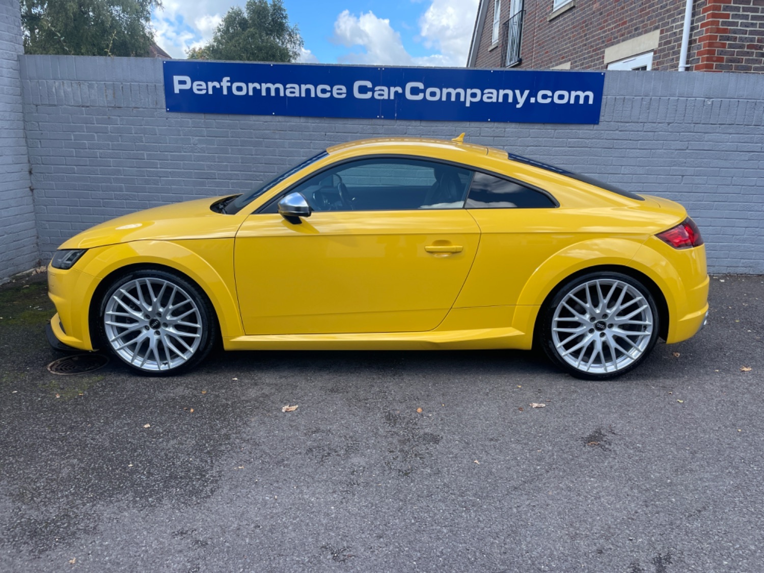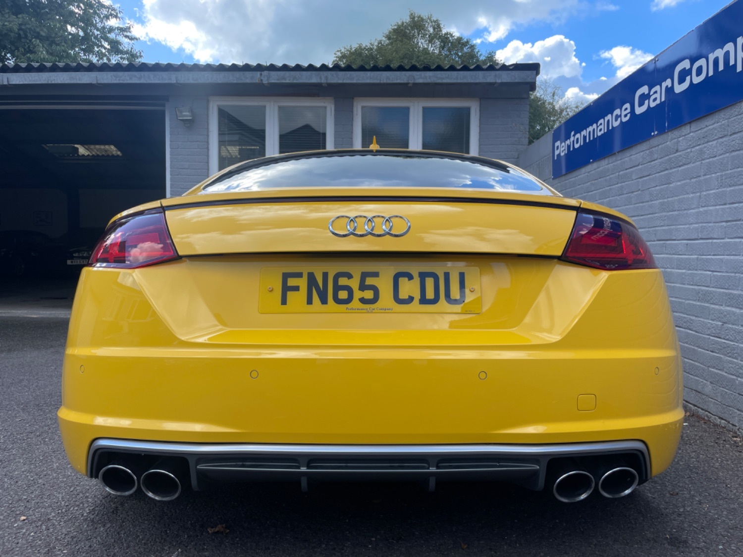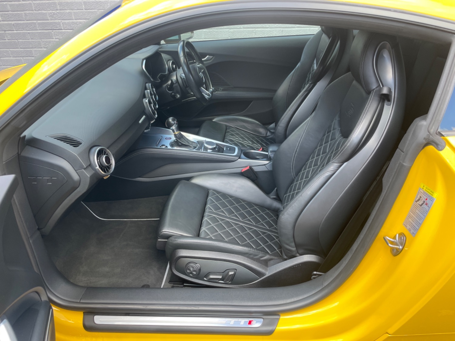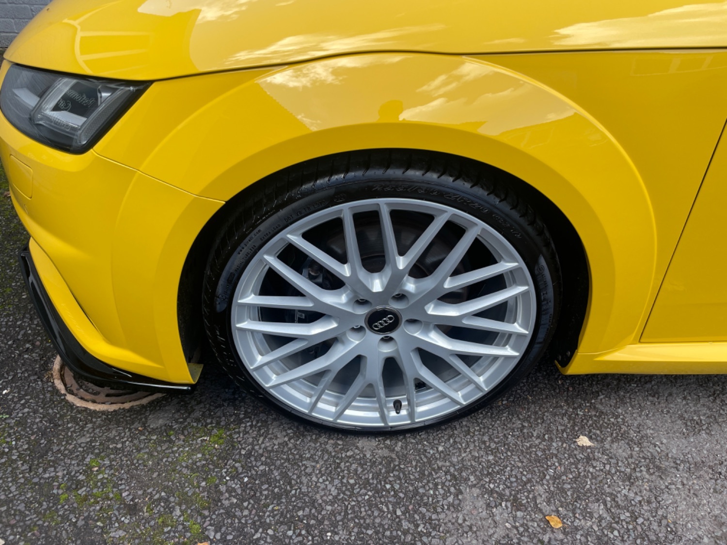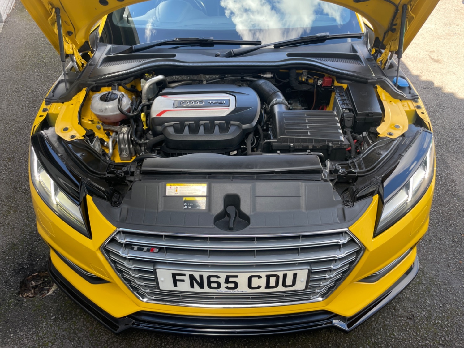 2015 65 Audi TTS TFSI S-Tronic Finished in Vegas Yellow with Only 42500 miles and a Full Audi Main Dealer Service History with Services at 8827 miles, 16295 miles, 24540 miles, 32776 miles, 38202 miles ( Gearbox Oil ), 39262 miles and 42454 miles on 15.9.22, Full Black Electric Sports Leather Seats with Grey Stitching, Heated Seats, Virtual Cockpit, Comfort Pack, Sound Pack with Bang&Olfson Speakers, Audi Matrix LED lights, Autolights, Unmarked 20 Inch TT Y Spoke Alloys with Virtually New Pirelli Pzero Tyres All Round, Push Button Start, Satellite Navigation, Factory Bluetooth, Multi Function Flat Bottom Steering Wheel, Cruise Control, Audi Parking System Plus Front and Rear with Selective Display, Privacy Glass, Full Electrics, Remote Alarm and Central Locking. Diamond brite Paint and Interior Protection. Absolutely Stunning Audi TTS in Beautiful Original Condition and in Fantastic Colour Combination which makes it so Striking. Add to this a High Specification and Superb Full Audi Main Dealer Service with Recent Service makes this a Rare Car.