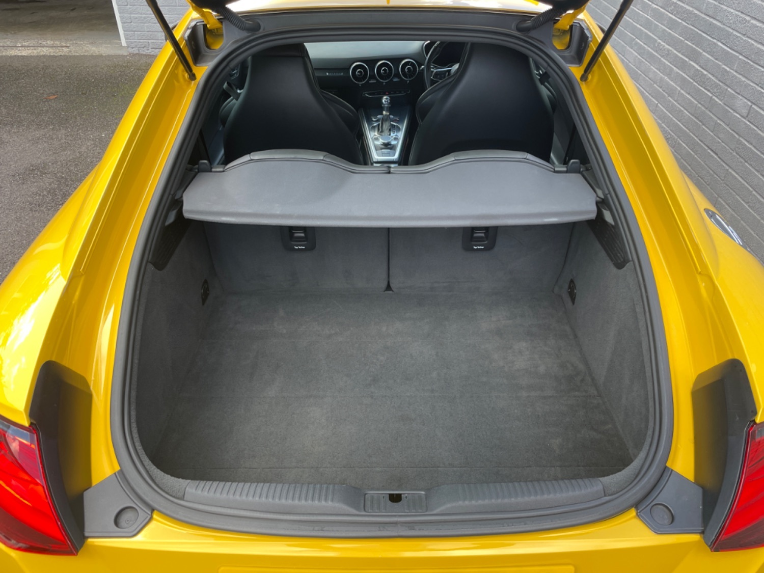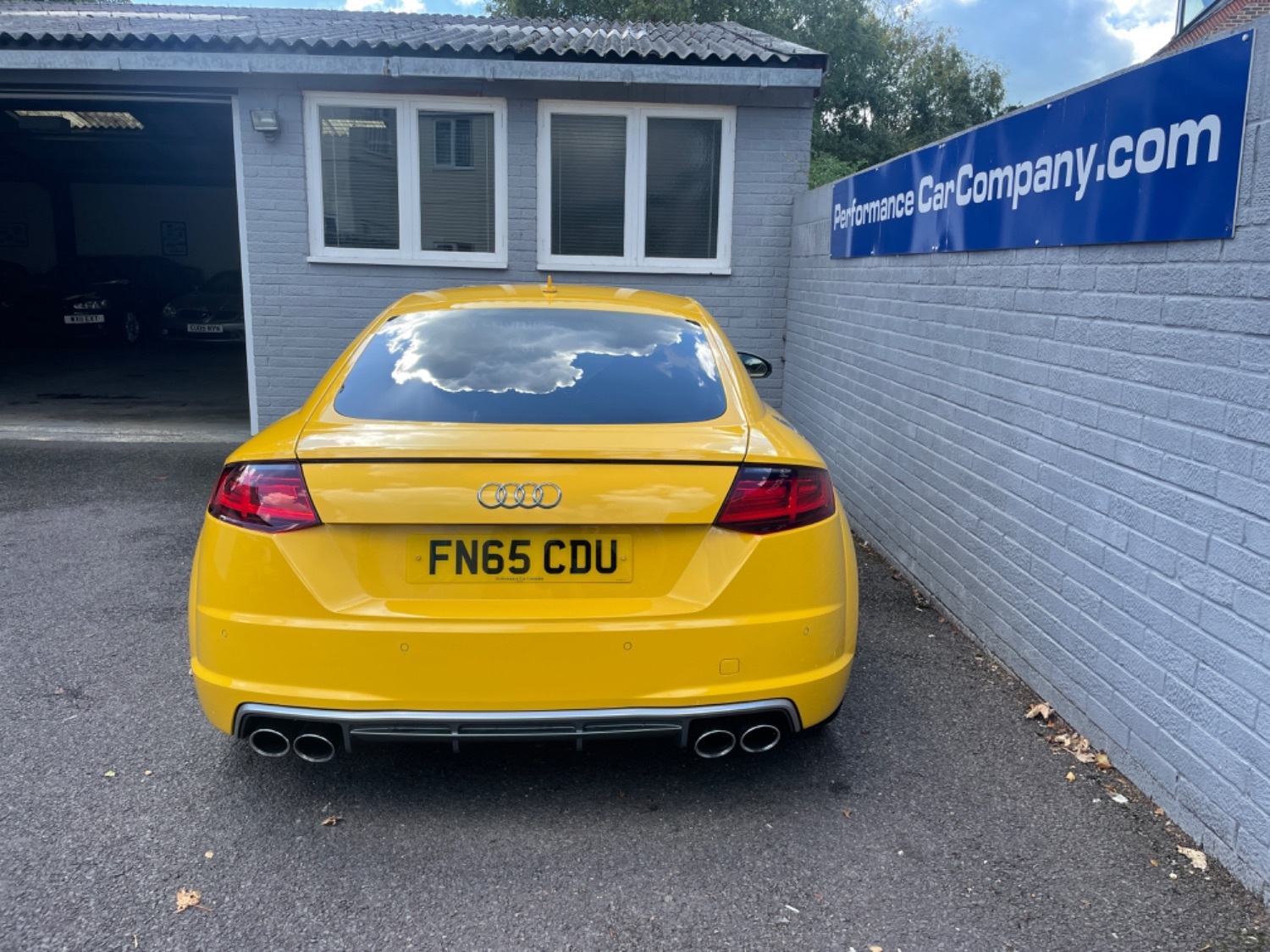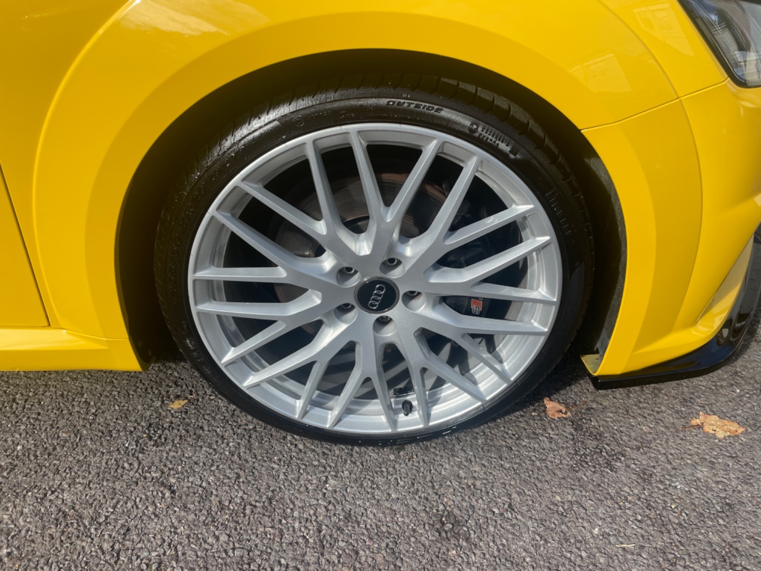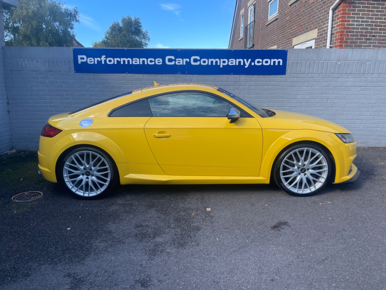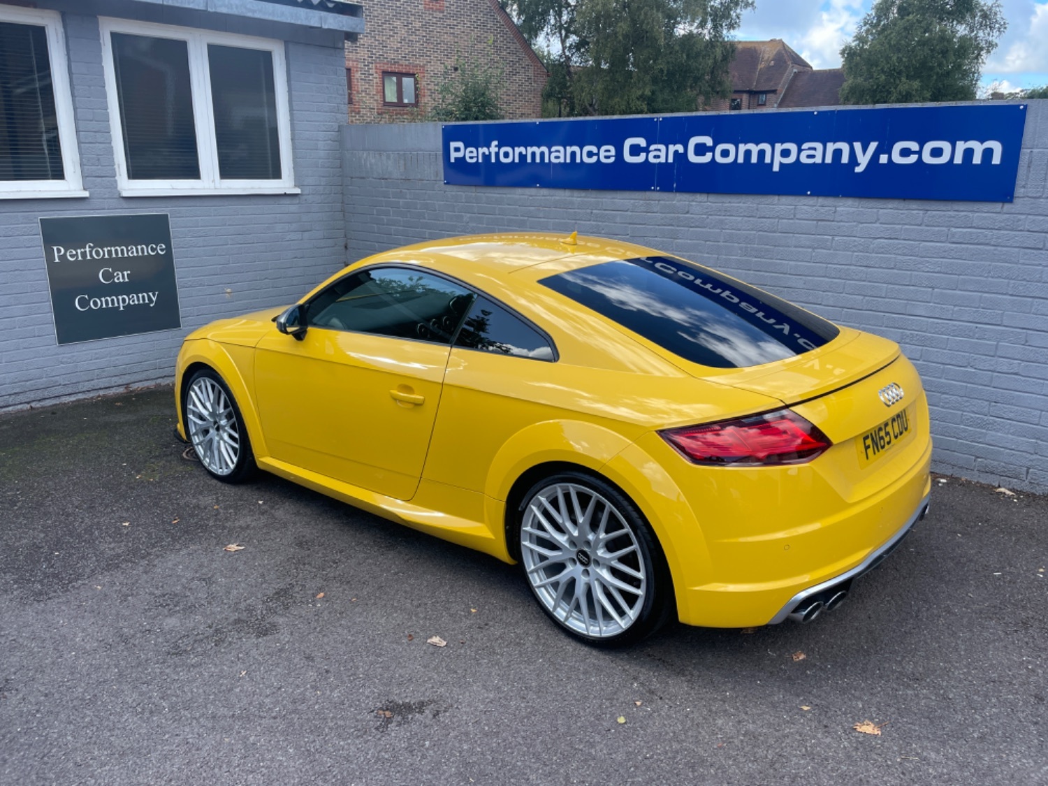 2015 65 Audi TTS TFSI S-Tronic Finished in Vegas Yellow with Only 42500 miles and a Full Audi Main Dealer Service History with Services at 8827 miles, 16295 miles, 24540 miles, 32776 miles, 38202 miles ( Gearbox Oil ), 39262 miles and 42454 miles on 15.9.22, Full Black Electric Sports Leather Seats with Grey Stitching, Heated Seats, Virtual Cockpit, Comfort Pack, Sound Pack with Bang&Olfson Speakers, Audi Matrix LED lights, Autolights, Unmarked 20 Inch TT Y Spoke Alloys with Virtually New Pirelli Pzero Tyres All Round, Push Button Start, Satellite Navigation, Factory Bluetooth, Multi Function Flat Bottom Steering Wheel, Cruise Control, Audi Parking System Plus Front and Rear with Selective Display, Privacy Glass, Full Electrics, Remote Alarm and Central Locking. Diamond brite Paint and Interior Protection. Absolutely Stunning Audi TTS in Beautiful Original Condition and in Fantastic Colour Combination which makes it so Striking. Add to this a High Specification and Superb Full Audi Main Dealer Service with Recent Service makes this a Rare Car.