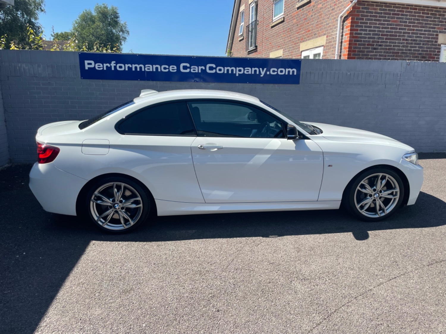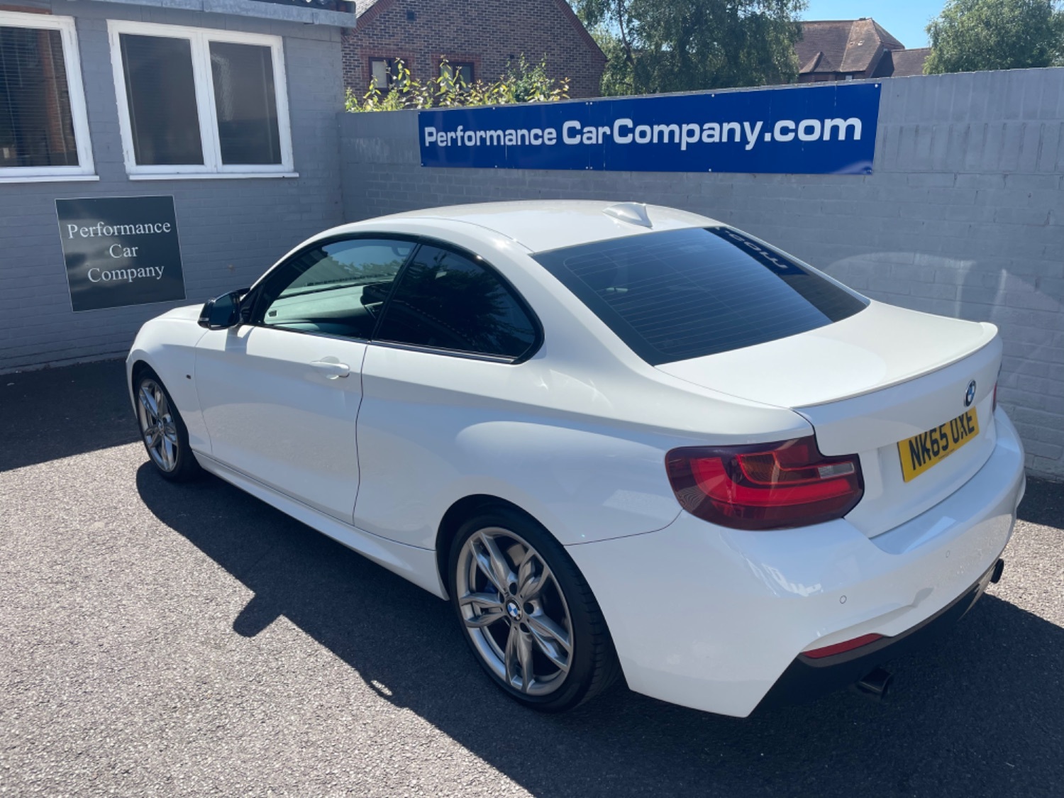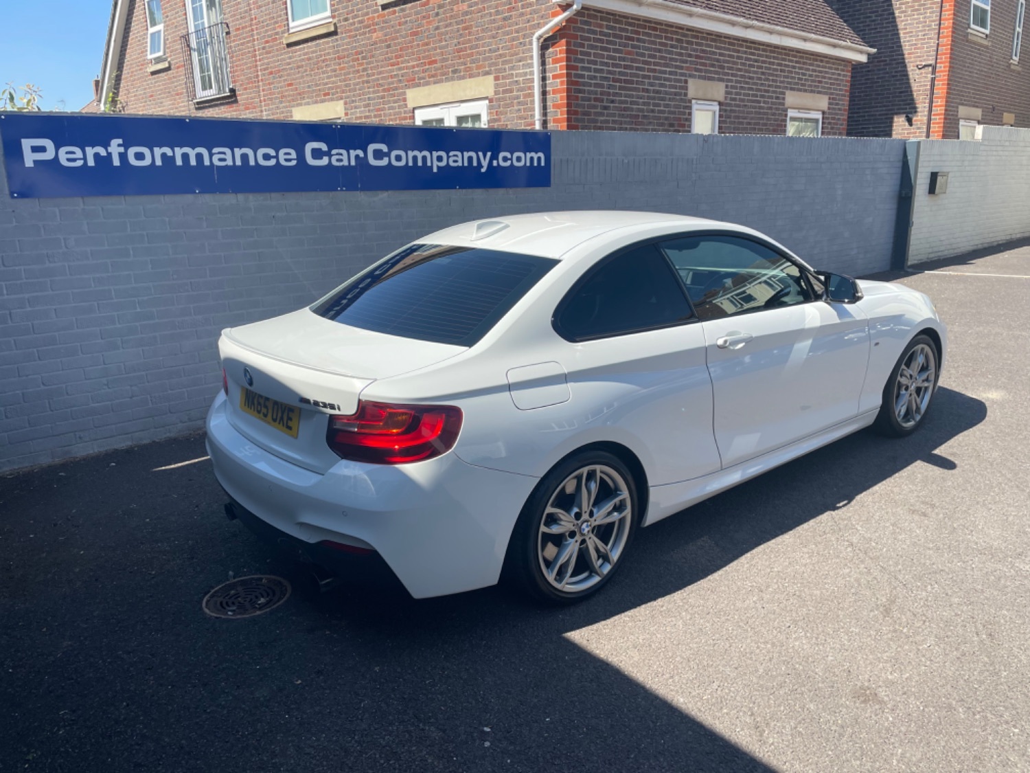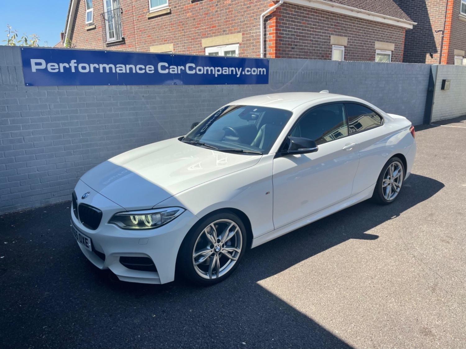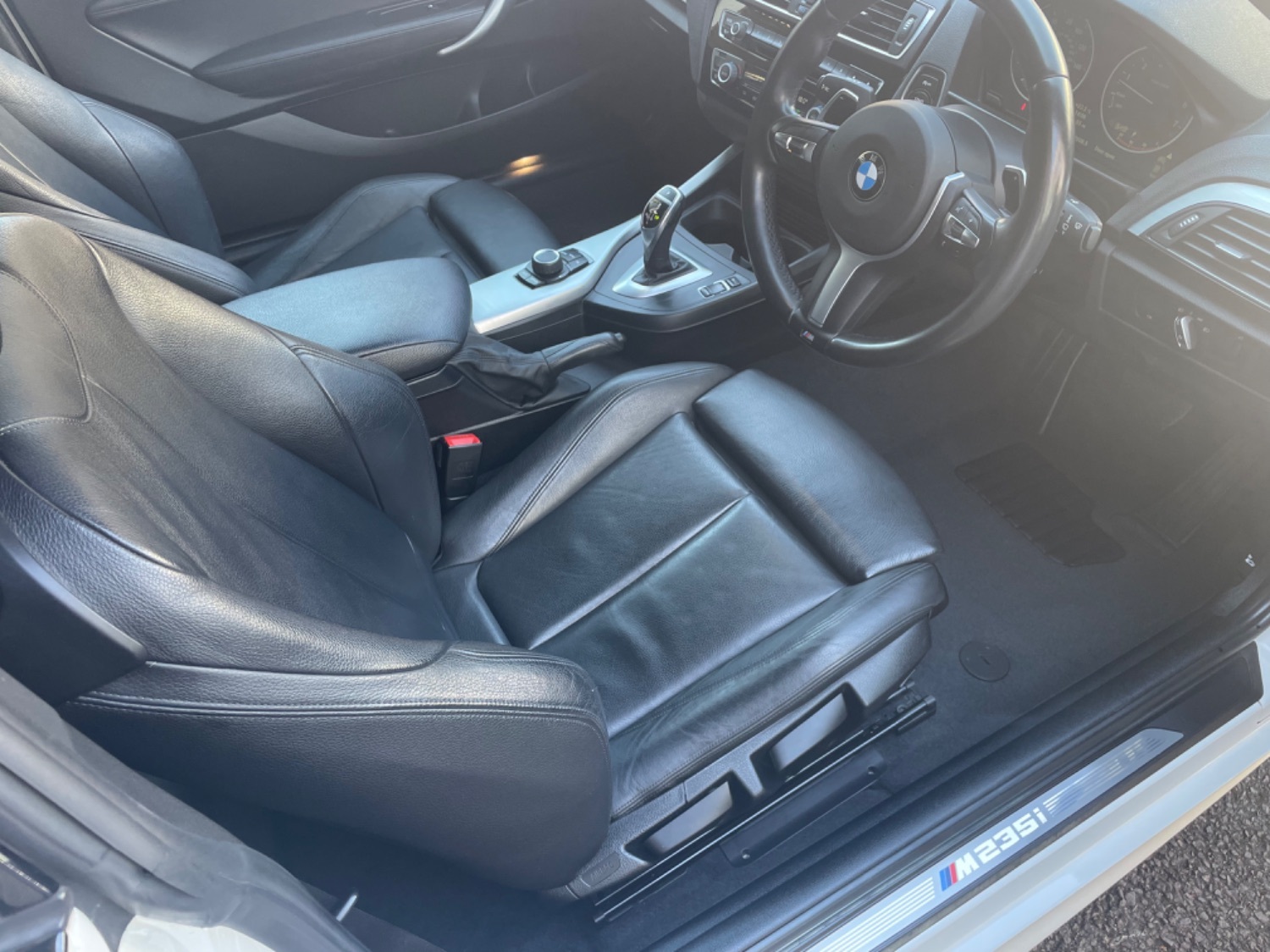 2015 65 BMW M235i Coupe Auto finished in White with Black Sports leather interior. Only 50000 miles with FBMWSH and services at 19153 miles, 30657 miles, 37305 miles and 45151 in January 2022. 3 litre turbocharged petrol engine with 8 speed automatic gearbox and 18 inch smoke silver alloy wheels with Recent Set of Pirelli Pzero’s all round, Rear parking sensors, multi function M Sport steering wheel with paddle change. Xenon headlights, Keyless start, Rear sun protection glass, BMW iDrive system, start stop technology and Eco Pro driving mode for better fuel efficiency. Electric windows and mirrors, remote alarm and central locking. Air conditioning and on board trip computer. Absolutely superb condition with Fantastic Performance. UK supplied and comes with full book pack and 2 keys.