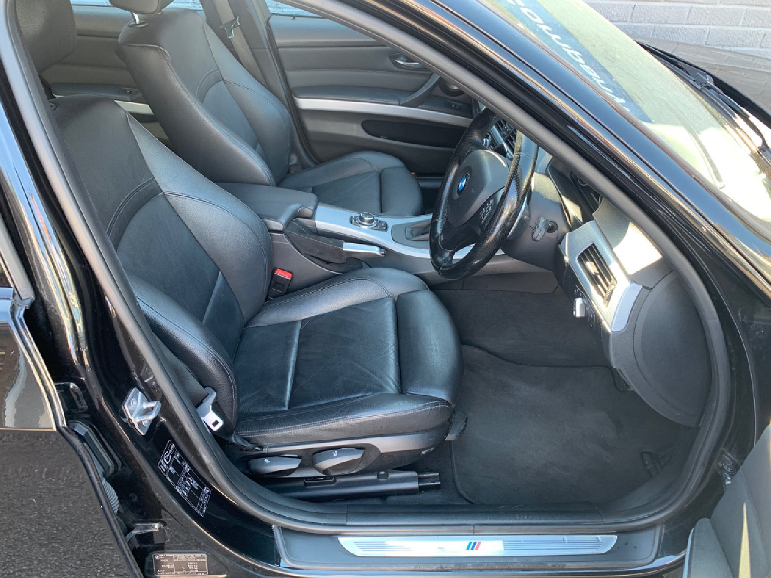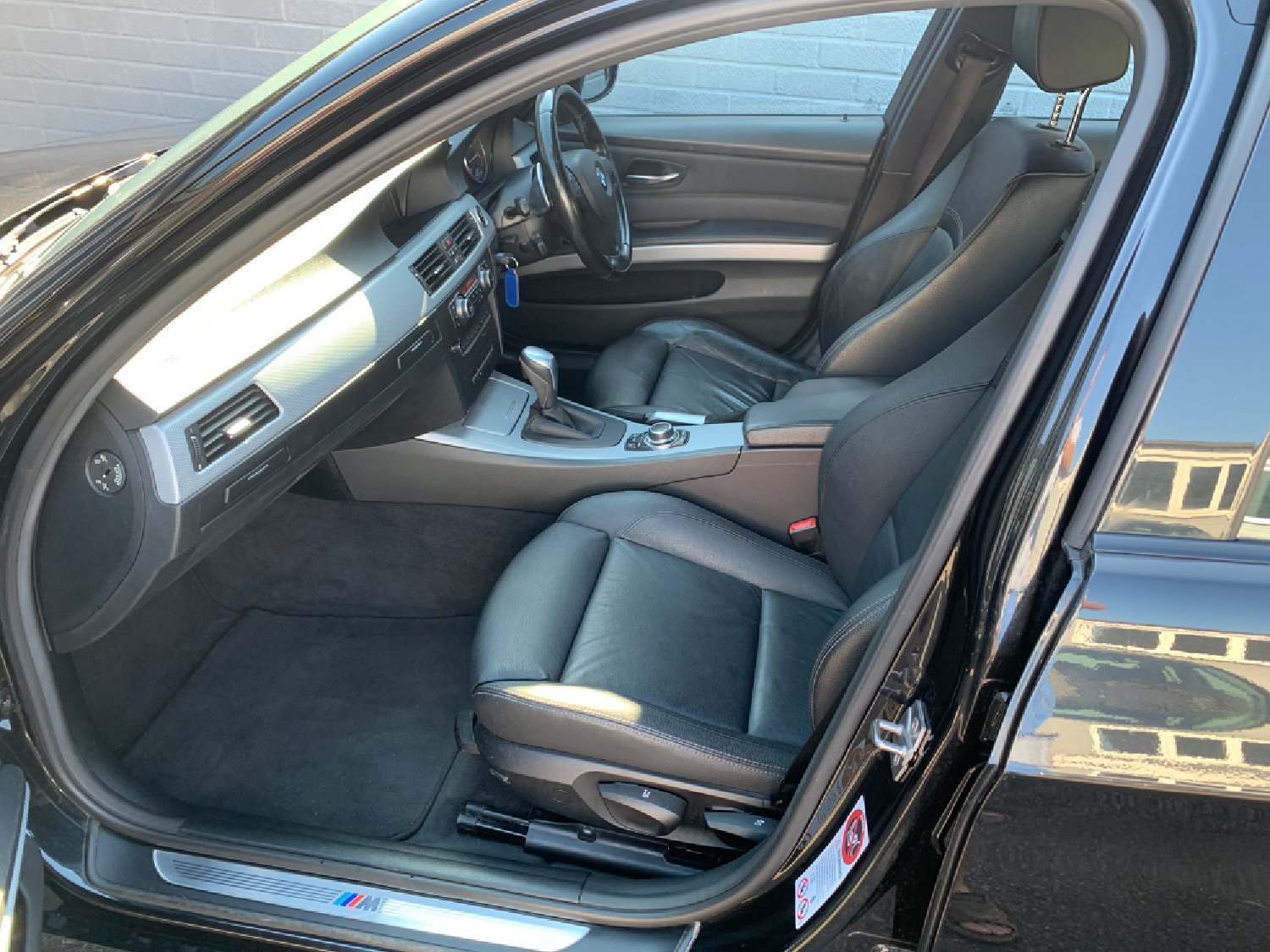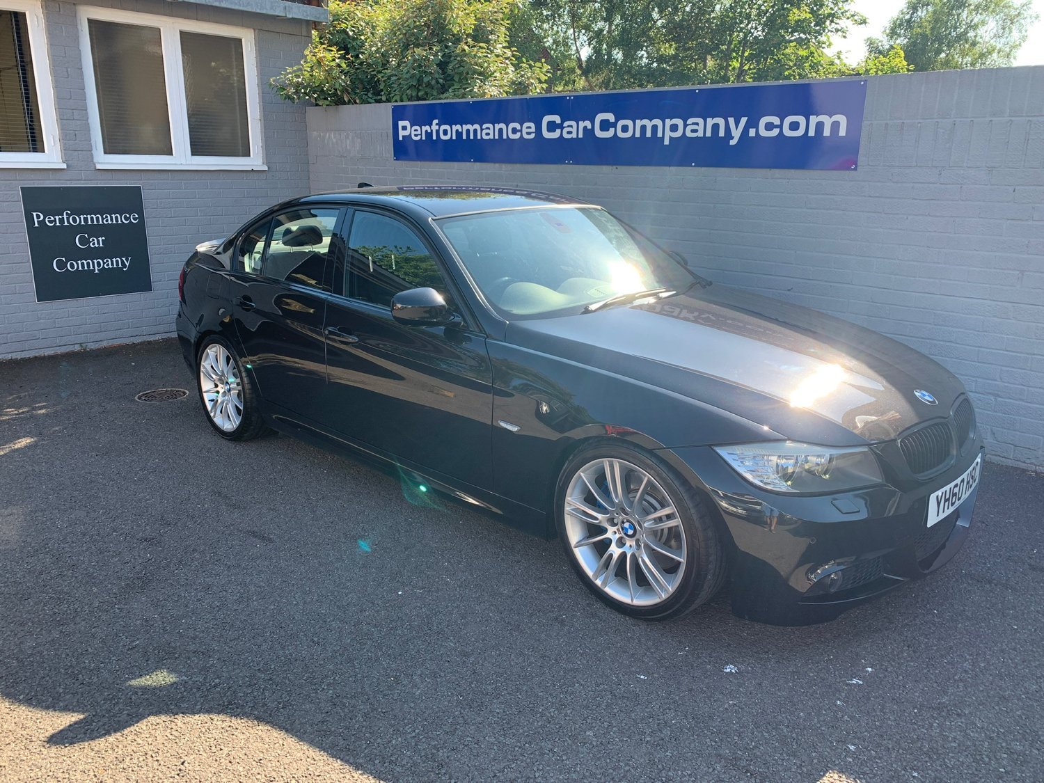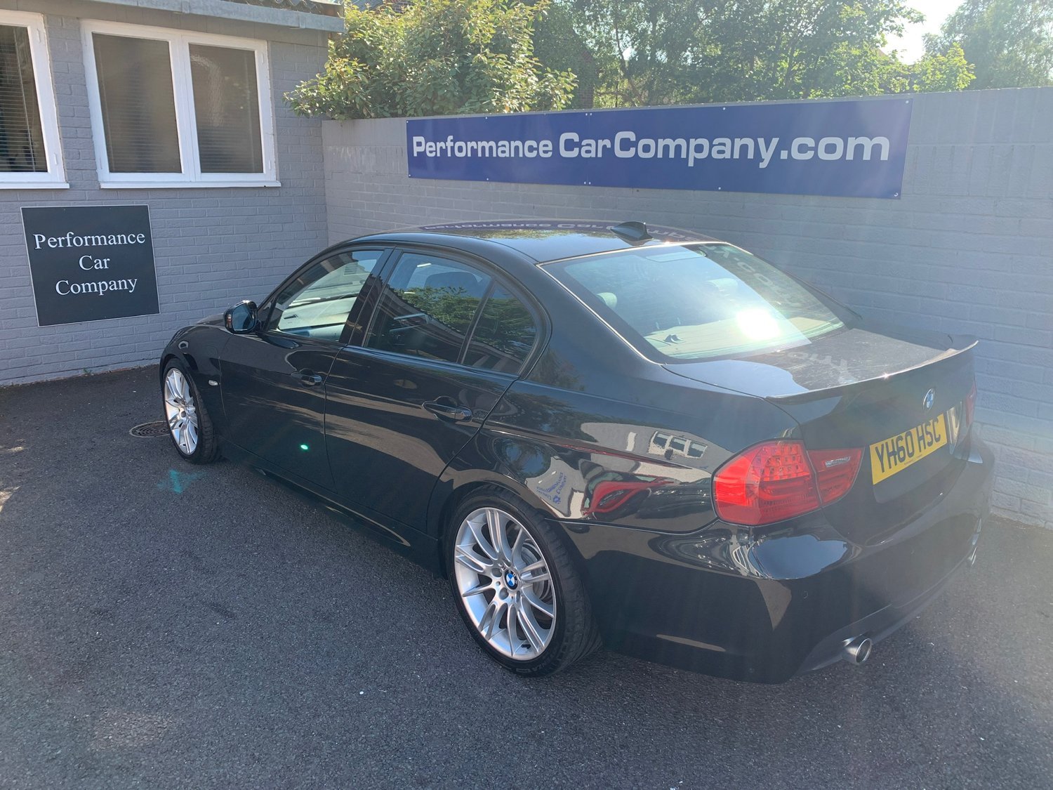 2010 /60 Finished in Metallic Sapphire Black with only 59,000 miles and Full Service History, Black Leather Sports Seats, Factory Professional Widescreen Satellite Navigation with updated Maps and latest Firmware and Combox ( The updated ici unit ) BMW iDrive, BMW factory Bluetooth with Music Streaming facility, Angel Headlight, Auto Lights, 18” Alloys with Matching Bridgestone Tyres All round, Front and Rear Parking Sensors, CD, Multi Function Steering Wheel with Gear Paddle change, Cruise Control. This car has been remapped to approx 350 BHP and had the gearbox remapped for faster shifts and to raise the torque limit to the gearbox to handle the extra power. Recently had 6 glow plugs, glow plug controller and Red boost hose replaced. Also fitted with a set of Eibach lowering springs to enhance look plus Fitted with LED bulbs and Carbon Fibre Rear Spoiler. Also had upgraded speakers fitted and Official BMW Alpine Audio upgrade. Great Performance with Good Economy. Superb Condition and Value for Rare 335d M Sport Auto. UK Supplied car. Please visit our website for our Full Retail stock list www.performancecarcompany.com