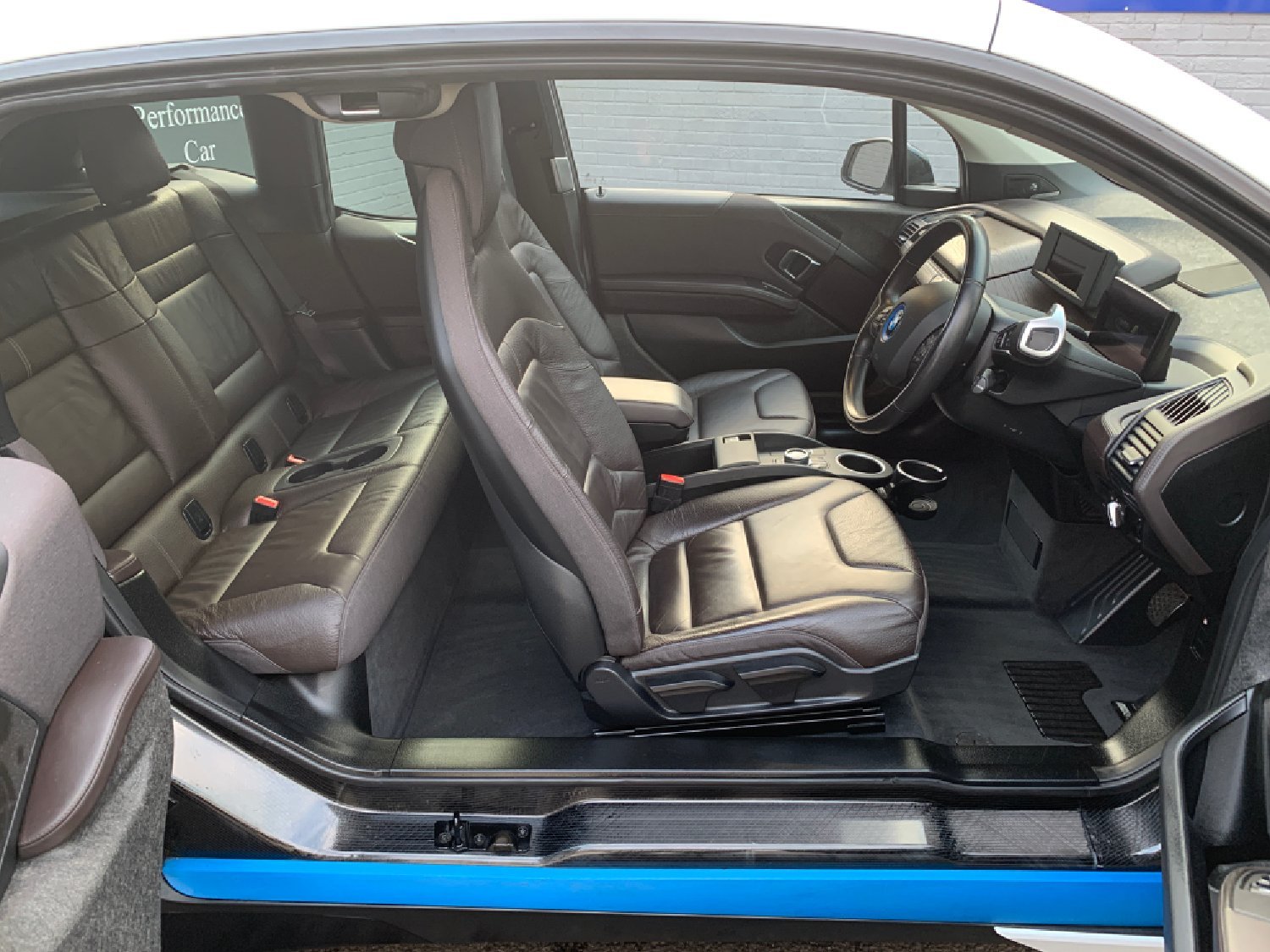 2017 / 17 i3 94Ah Finished in White having covered 64000 miles with a Full BMW Service History, Full Leather interior World Suite, Heated Seats, Satellite Navigation, Harmon Kardon Speakers, BMW iBlue, Rear Parking Sensors, Rear Sun Protection Glass, 19" BMW i-Turbine Alloys, Multi Function Steering Wheel, Air conditioning, Rain Sensor, Auto Lights, Cruise Control, Electric Mirrors, Electric Windows, Remote Alarm and Central Locking, CD and Free Tax. Superb Condition and Great Value for High Specification i3 94ah Range Extender plus Zero Pounds Road Tax. Previously Supplied by us. UK Car with Hand book and Spare key.