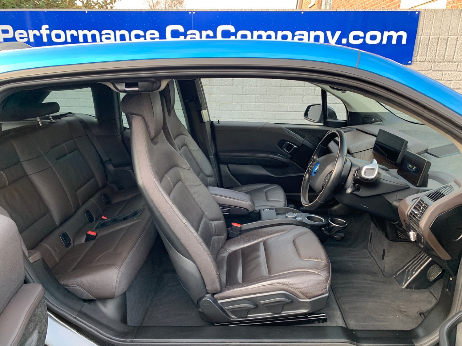 Finished in Metallic Protonic Blue With Frozen Grey Accents and Only 19000 miles and Full BMW Service History With Service Pack plus One Private Owner from New, Full Leather, Heated Seats, Interior World Suite, Wide Screen Professional Navigation, Parking Sensors, Rear Sun Protection Glass, 19" BMW i-Turbine Alloys, Multi Function Steering Wheel, Rapid charge, Air conditioning, Rain Sensor, Auto Lights, Cruise Control, Electric Mirrors, Electric Windows, Remote Alarm and Central Locking, CD. Absolutely Superb Original Condition and Value for Rare High Specification i3 94ah Range Extender plus Free to Tax as Registered before new Tax Rules..UK Supplied with Hand book and Spare Key.