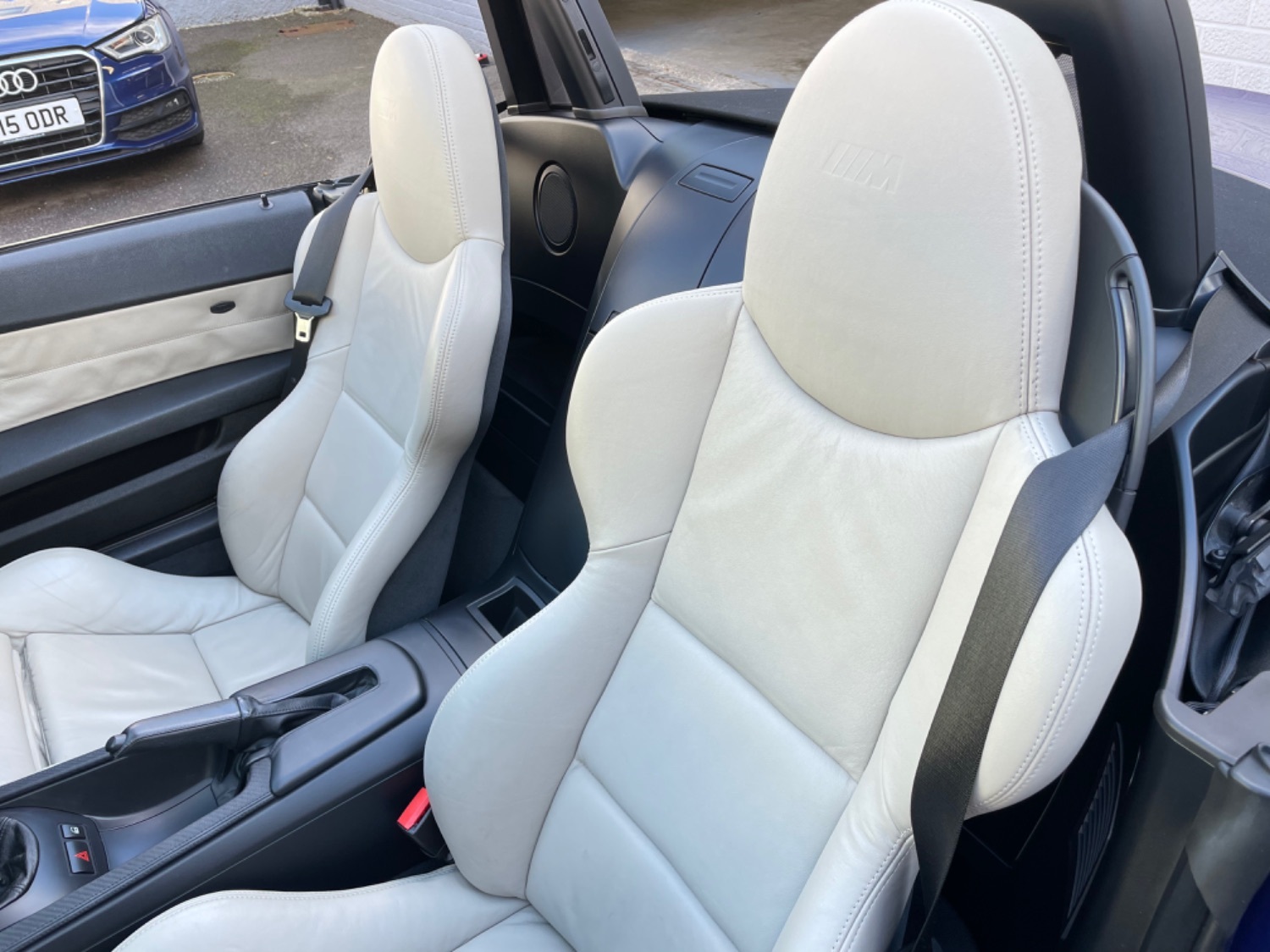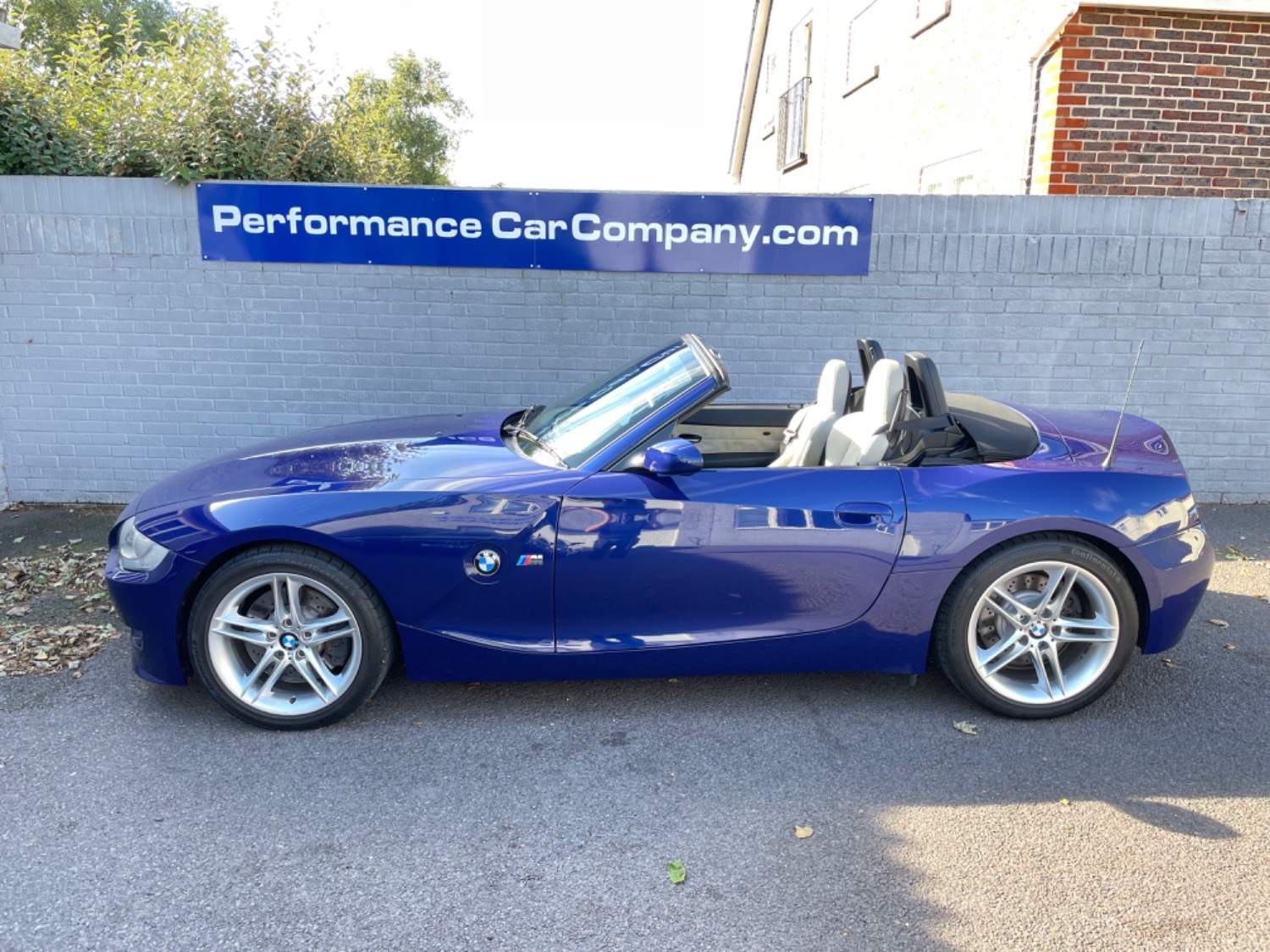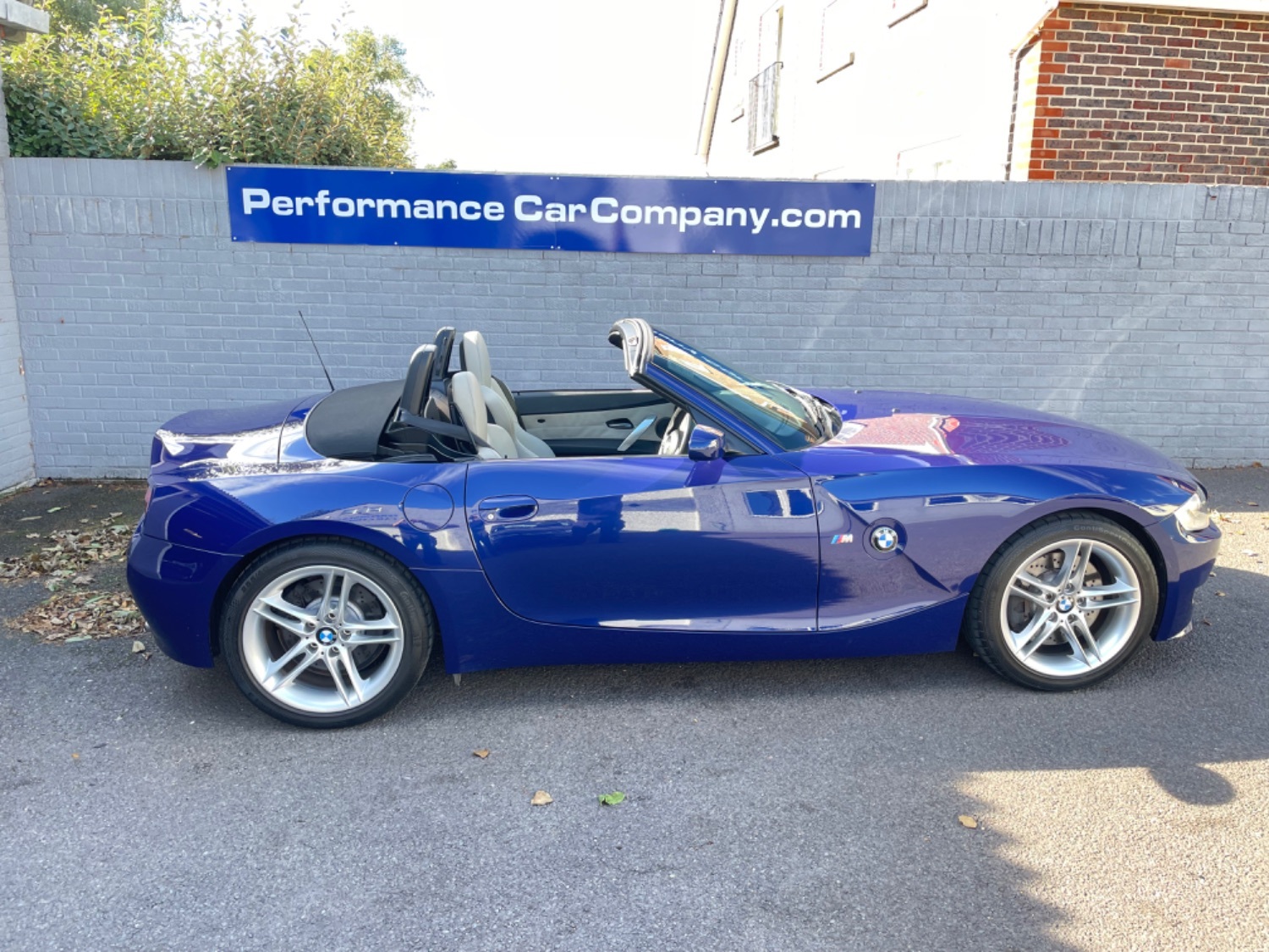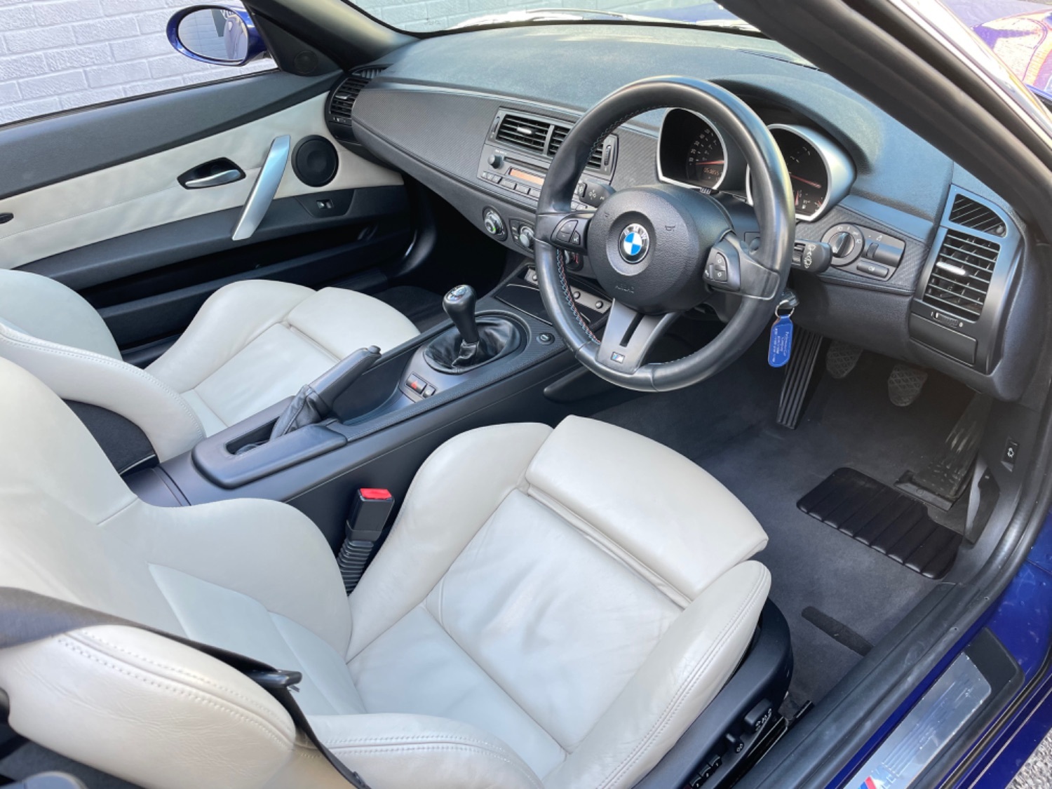2006 / 06 BMW Z4M Finished in Metallic interlargos Blue with Only 54000 miles with FBMWSH with Running in Service carried out at 1208 miles, Only 2 Private Owners from New, Rare Light Sepang Bronze Nappa Leather, Heated seats, Wind Deflector, Air Conditioning, Rear Parking Sensors, Enhanced Bluetooth, 18 Unmarked Alloys with Continental Sport Contact 3 tyres all round, Xenons, Power Black Hood in fantastic condition, CD, Fitted Tracker. Vanos + Timing Chain replaced with updated guides and new bolts for Cam Gears, Modified Oil Pump to prevent the exhaust hub tabs cracking fitted December 2021 by Mr Vanos with 3 Year Warranty and lifetime noise guarantee. This low mileage, low ownership Z4M is in Absolutely Exceptional Original Condition and must be one of the best available, especially in this Colour Combination of Interlargos Blue and Sepang Bronze Leather. Rare Opportunity to buy this Rare Car which Drives Superbly.