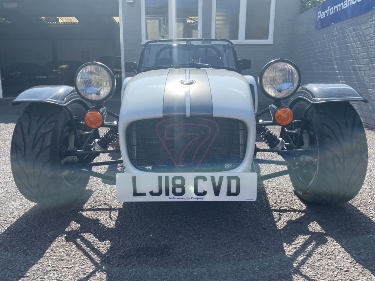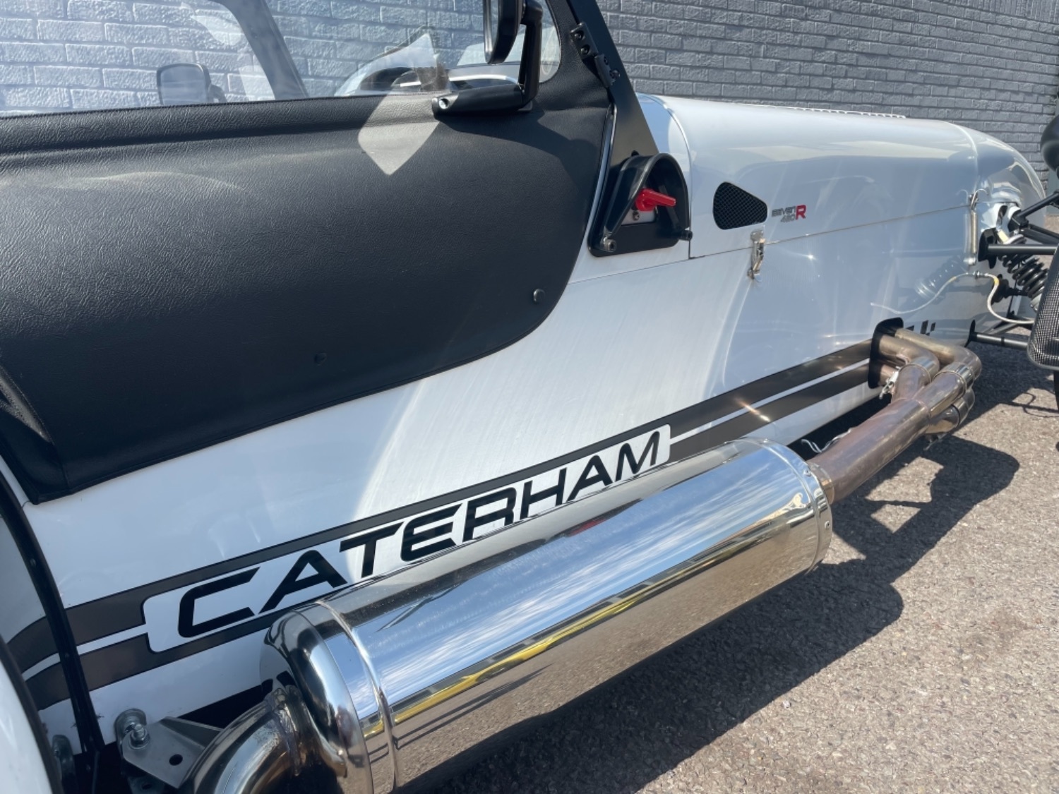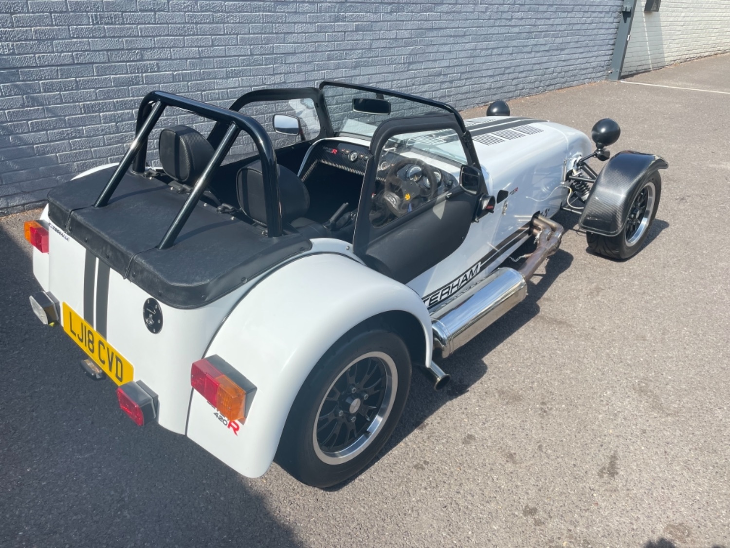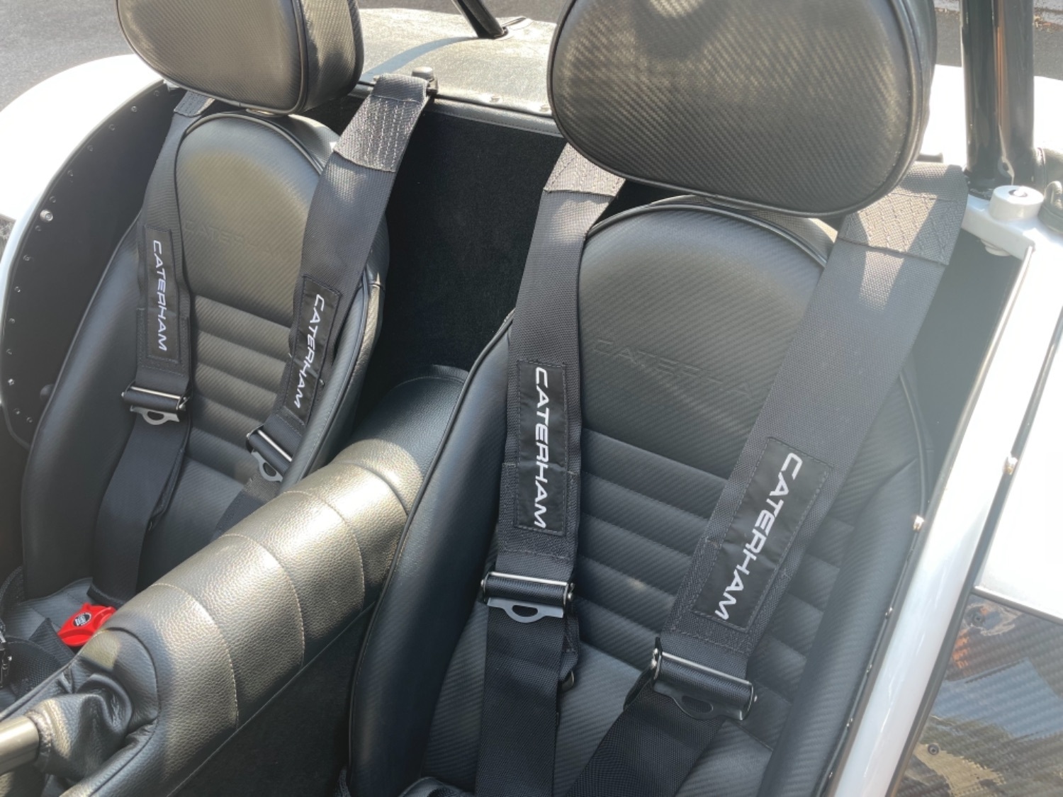 The car was freshly painted in Polar White with titanium double stripes applied. Around the car you’ll find it’s been specified up to a very high level and includes 13″ Apollo Black alloy wheels with Polished edges wrapped in Avon ZZS tyres, Sports Suspension, Painted Red Seven Grill, uprated brakes with quad piston front calipers, carbon leather seats, heater and heated windscreen with full weather equipment, Suede Momo Quick Release Steering Wheel, Carbon Wheel Covers and plenty more. If you’re looking for a car to enjoy a nice day on the road or to attack the track this car has been specified to excel in both areas.