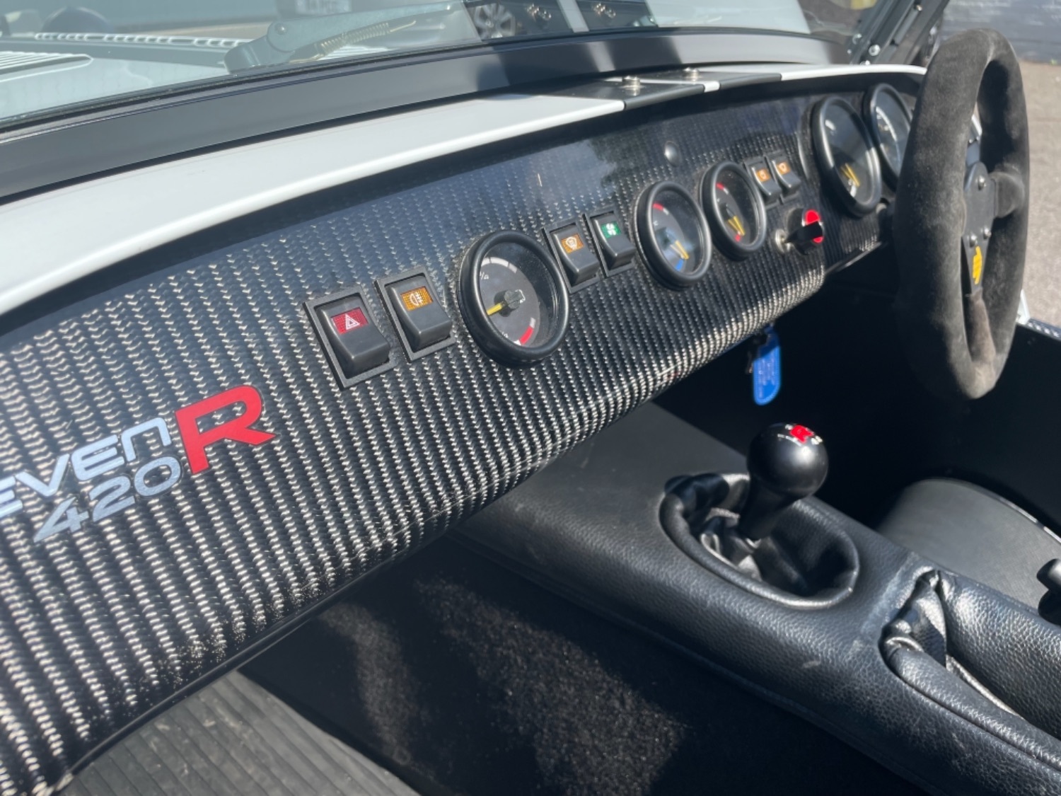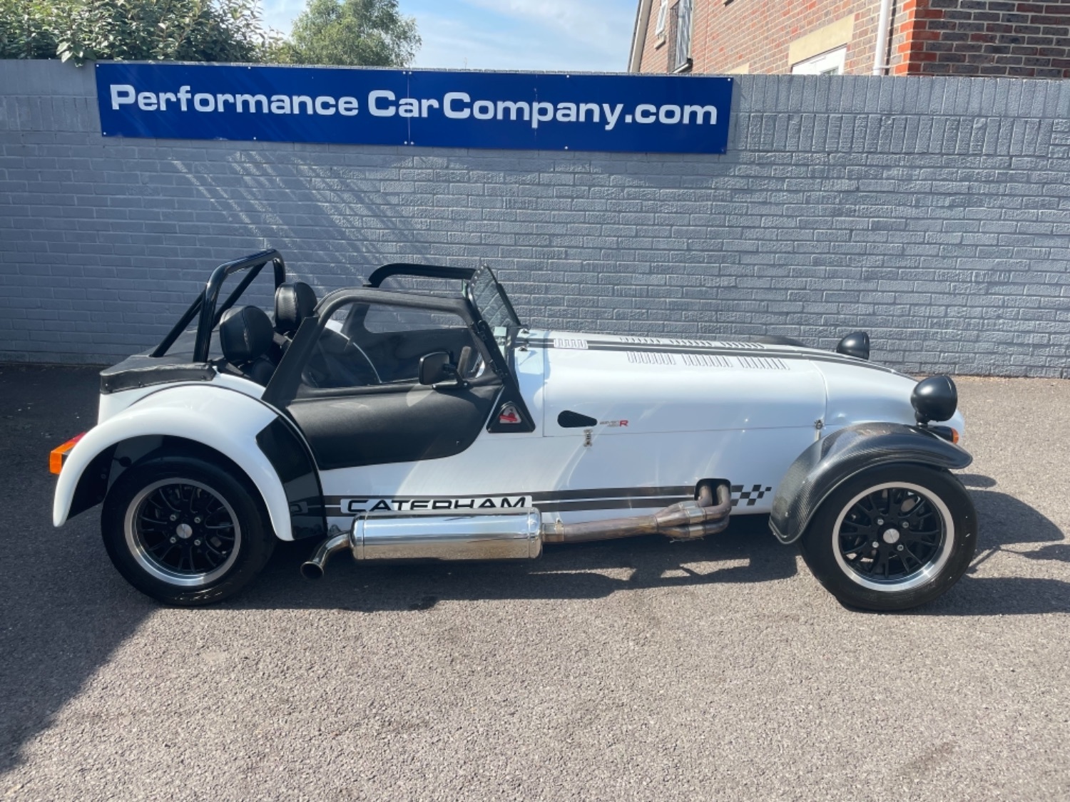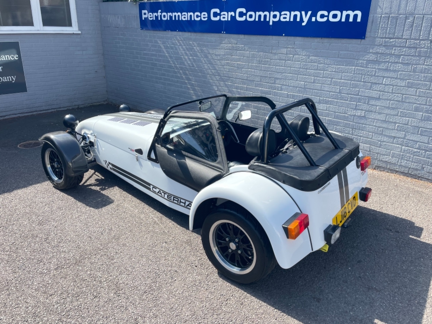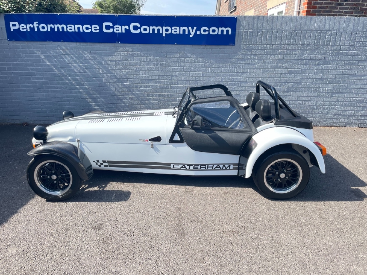 The car was freshly painted in Polar White with titanium double stripes applied. Around the car you’ll find it’s been specified up to a very high level and includes 13″ Apollo Black alloy wheels with Polished edges wrapped in Avon ZZS tyres, Sports Suspension, Painted Red Seven Grill, uprated brakes with quad piston front calipers, carbon leather seats, heater and heated windscreen with full weather equipment, Suede Momo Quick Release Steering Wheel, Carbon Wheel Covers and plenty more. If you’re looking for a car to enjoy a nice day on the road or to attack the track this car has been specified to excel in both areas.
