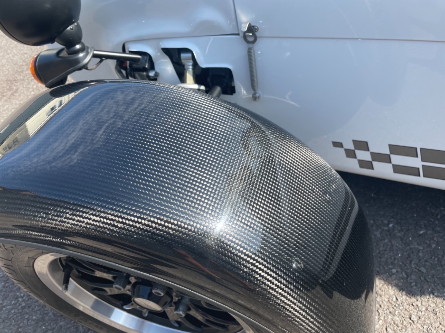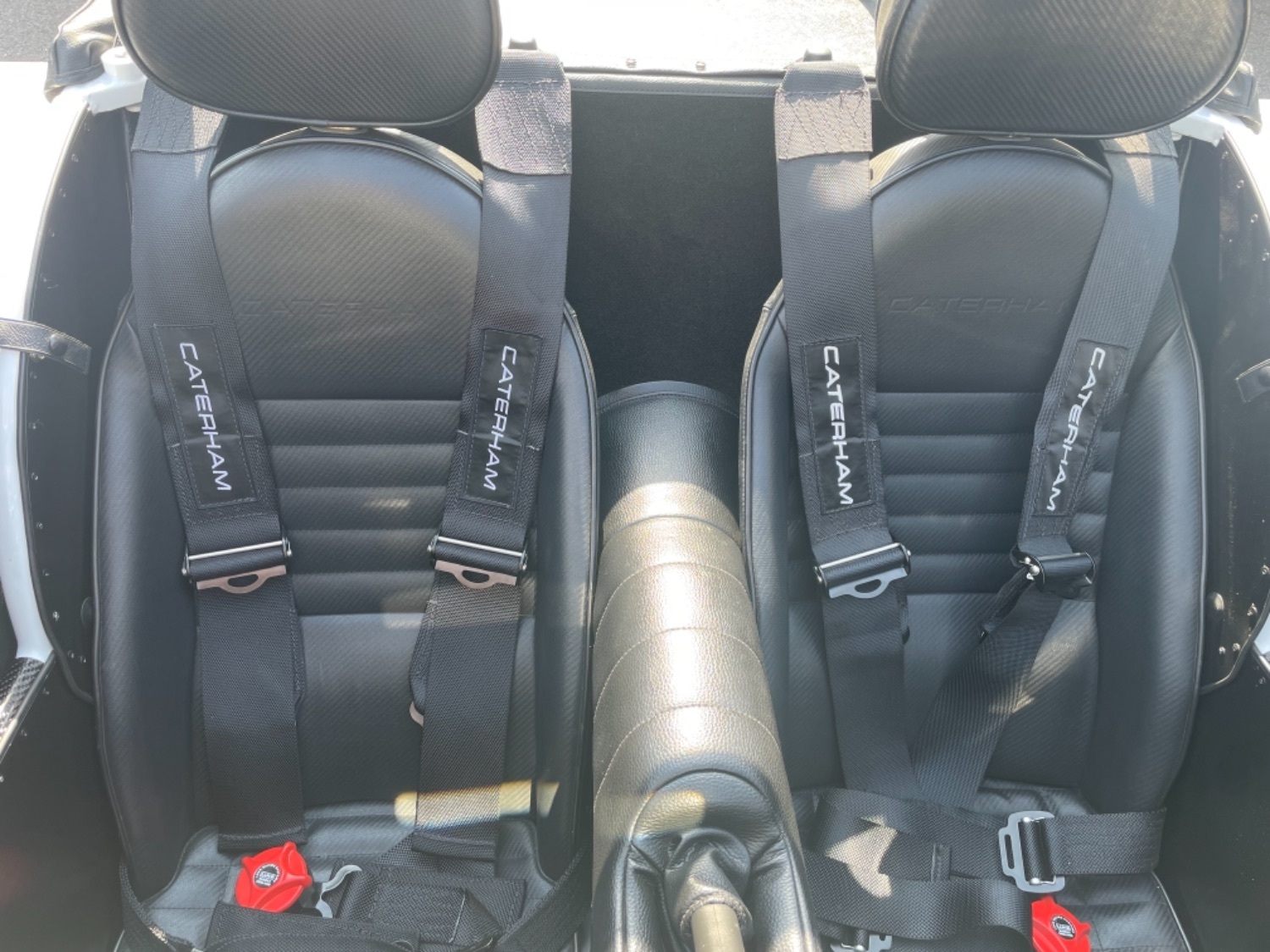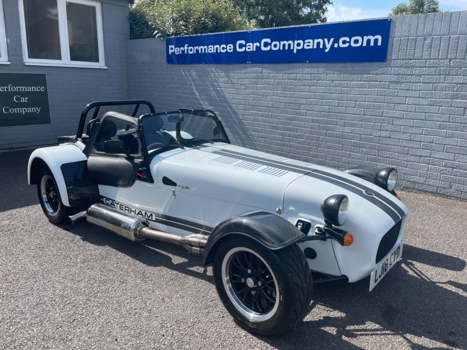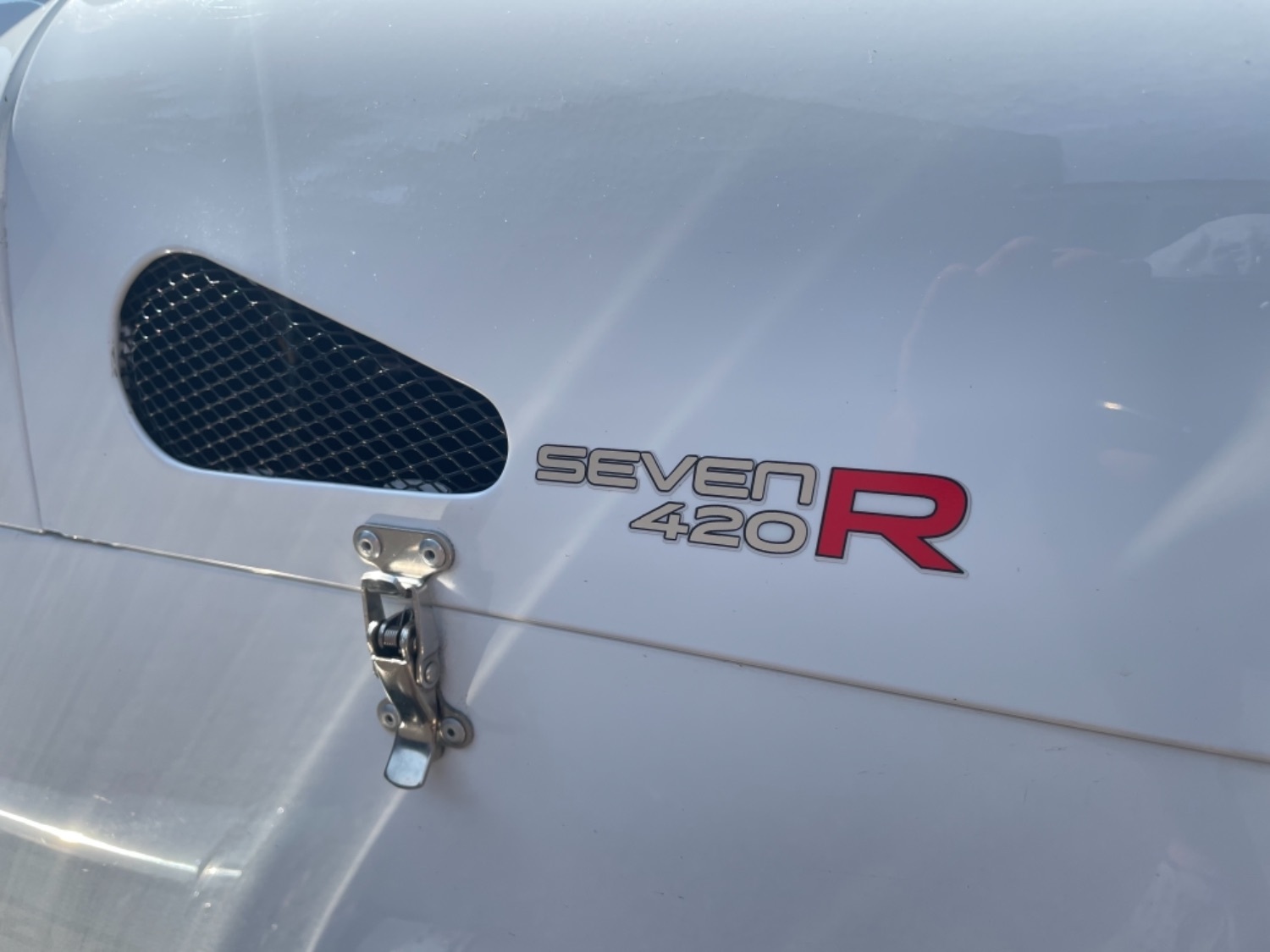 The car was freshly painted in Polar White with titanium double stripes applied. Around the car you’ll find it’s been specified up to a very high level and includes 13″ Apollo Black alloy wheels with Polished edges wrapped in Avon ZZS tyres, Sports Suspension, Painted Red Seven Grill, uprated brakes with quad piston front calipers, carbon leather seats, heater and heated windscreen with full weather equipment, Suede Momo Quick Release Steering Wheel, Carbon Wheel Covers and plenty more. If you’re looking for a car to enjoy a nice day on the road or to attack the track this car has been specified to excel in both areas.