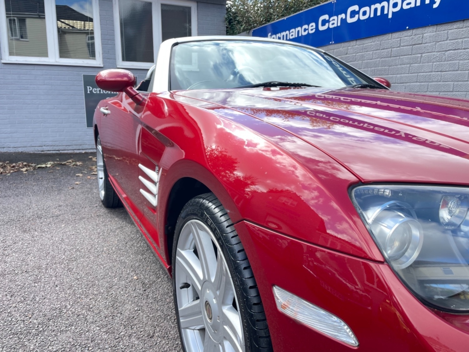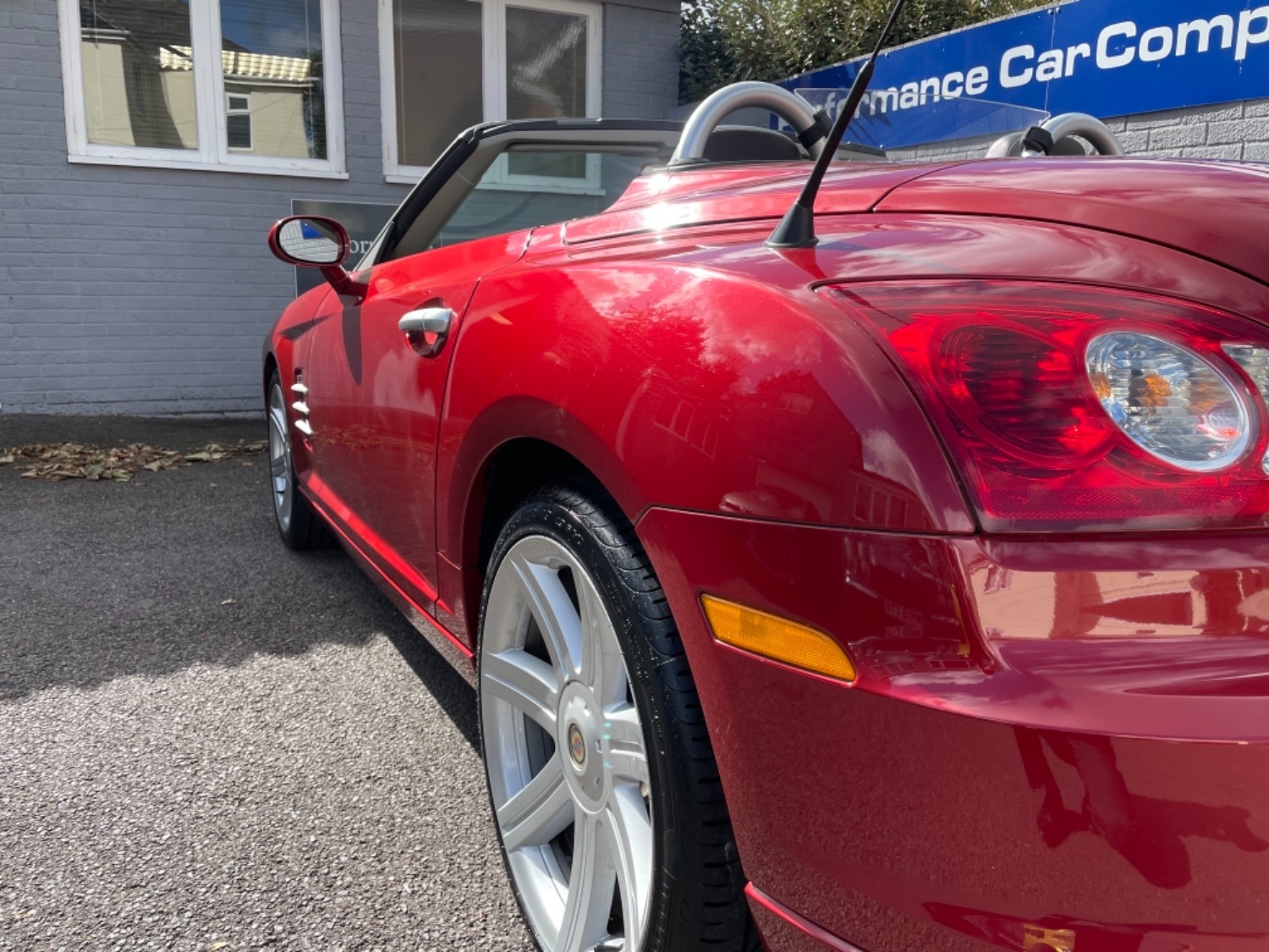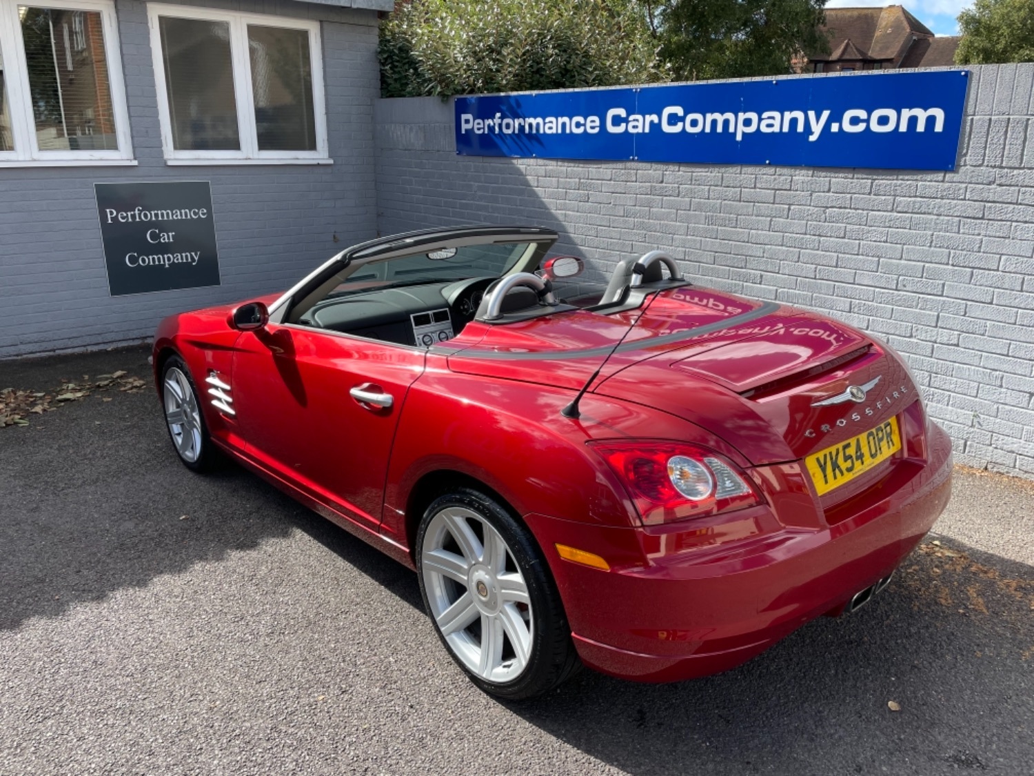 2004 / 54 Finished in Metallic Red with Charcoal Leather and Black Power Folding Roof. Only 44,000 miles with Service History and Old MOTs and Just had Service with Front pads and 4 New Pirelli Pzero Tyres, Last Owner for 6 Years, Full Leather Electric Heated Seats, Air Conditioning which is lovely and cold, Cruise Control, Original Stereo with Satellite Navigation, Unmarked Alloys with New Pirelli Pzero Tyres All Round, Electric Windows, Electric Mirrors, Remote Alarm and Central Locking. Absolutely Superb Condition. These Crossfires are becoming quite collectible So this presents a Great Opportunity to purchase a Rare Low Mileage Crossfire Convertible Automatic in Rare Colour, Low Ownership and with added bonus of being the Cheaper Road Tax Model.