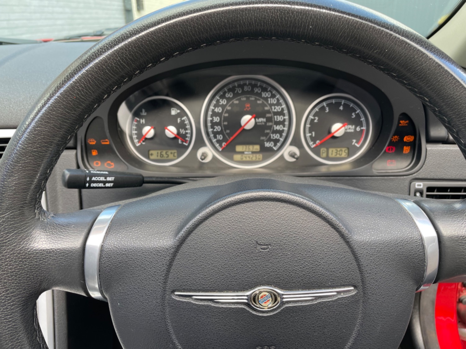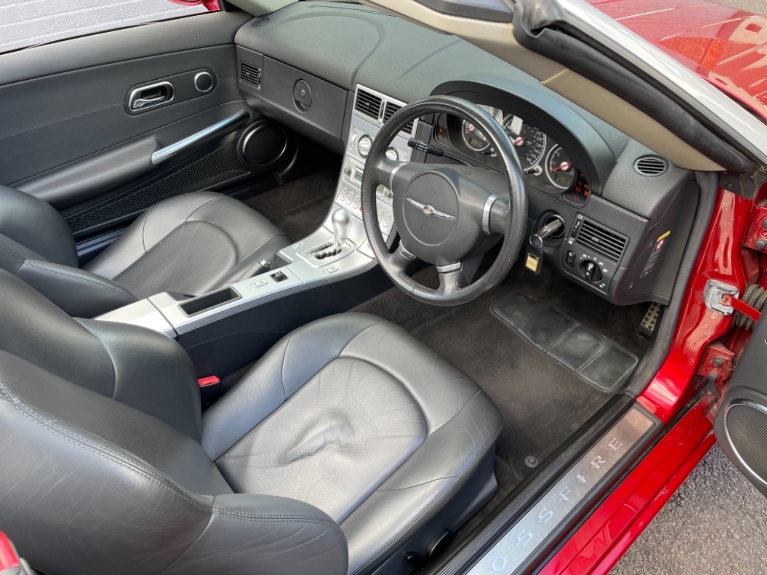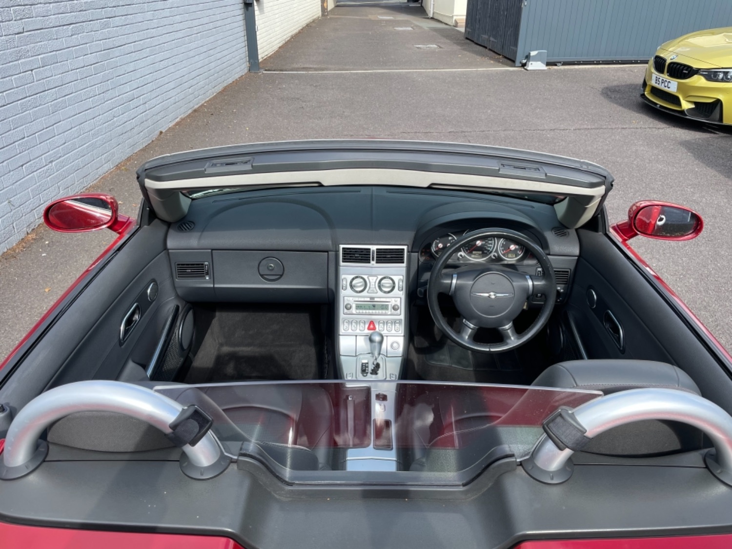 2004 / 54 Finished in Metallic Red with Charcoal Leather and Black Power Folding Roof. Only 44,000 miles with Service History and Old MOTs and Just had Service with Front pads and 4 New Pirelli Pzero Tyres, Last Owner for 6 Years, Full Leather Electric Heated Seats, Air Conditioning which is lovely and cold, Cruise Control, Original Stereo with Satellite Navigation, Unmarked Alloys with New Pirelli Pzero Tyres All Round, Electric Windows, Electric Mirrors, Remote Alarm and Central Locking. Absolutely Superb Condition. These Crossfires are becoming quite collectible So this presents a Great Opportunity to purchase a Rare Low Mileage Crossfire Convertible Automatic in Rare Colour, Low Ownership and with added bonus of being the Cheaper Road Tax Model.