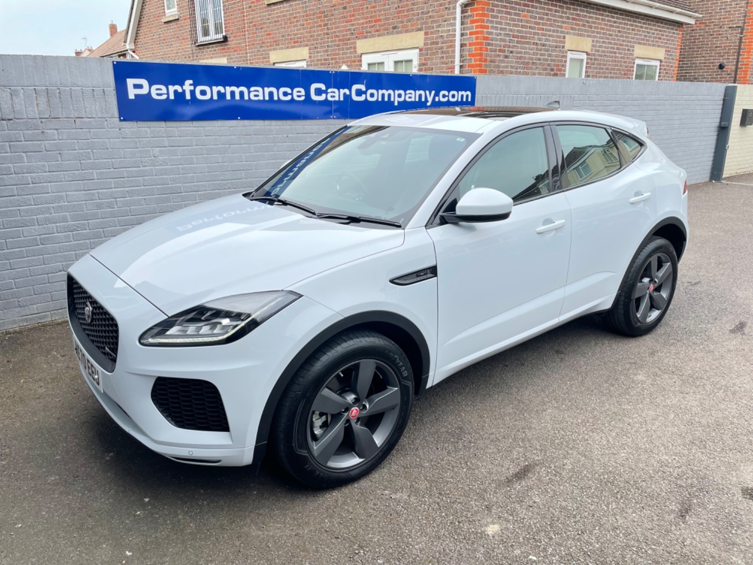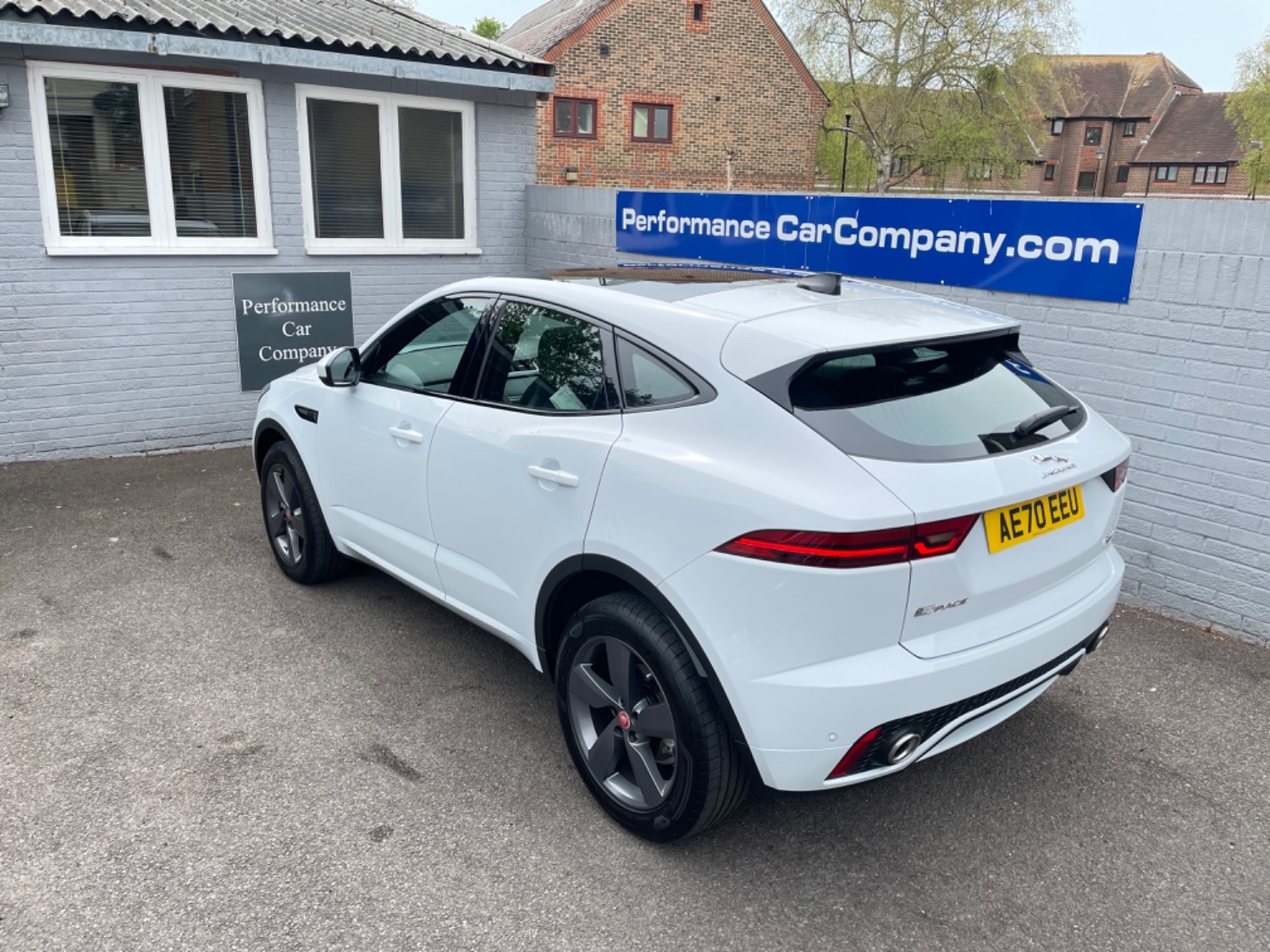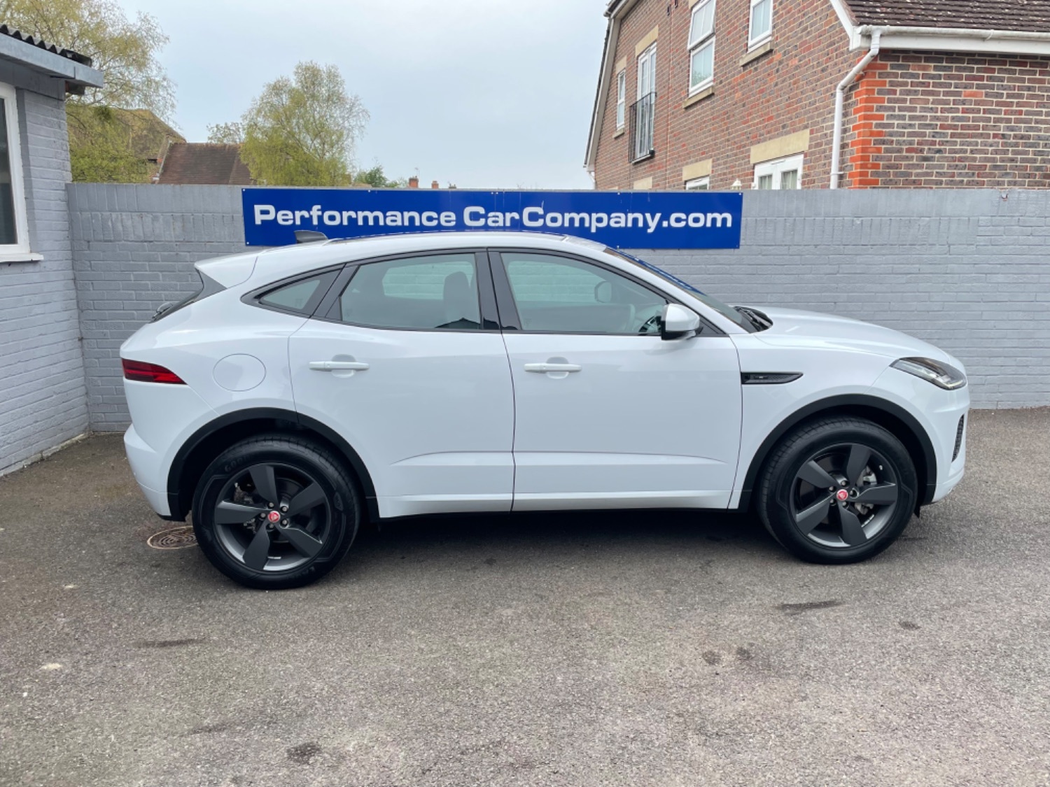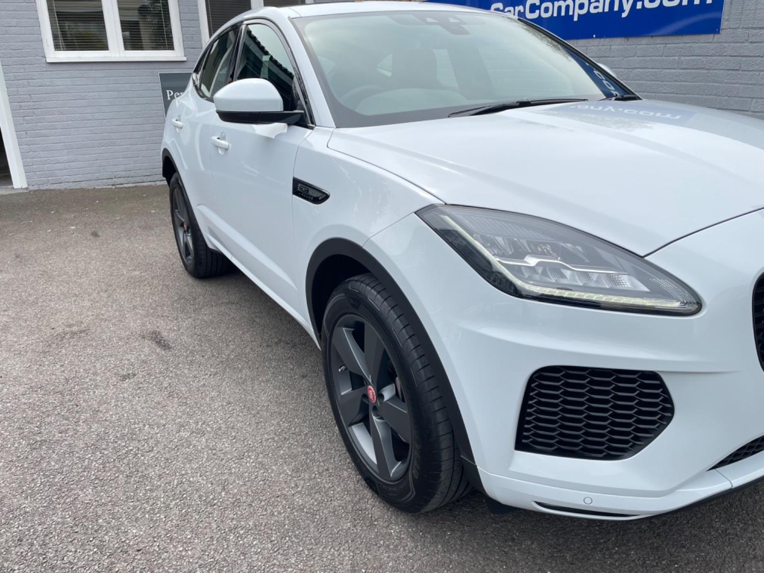 2020 / 70 Jaguar E-Pace R-Dynamic Chequered Flag P200 AWD Finished in Yulong White with only 1600 miles from New, Black Ebony Leather with Red Stitching, 10 Way Electric Seats, Panoramic Roof, Reversing Camera, R-Dynamic branded Leather Multi Function Steering Wheel with Satin Gearshift paddles, Cruise Control, 19 5 Spoke Unmarked Satin Grey Alloys, LED Headlights with Signature DRL, 10 inch Satellite Navigation Pro with Apple Car Play Bluetooth, Power Tailgate, Keyless Entry and Push Button Start, Front and Rear Parking Sensors, Park Assist, Lane Keep Assist, Electric Folding Mirrors, Autolights, Heated Front Screen, Black Exterior Pack. Williams Racing Ceramic Paint and Interior Protector. This E Pace has covered only 1600 miles and is like New and available to be driven away today at a Fantastic Price for this low mileage. Manufacturers Warranty Until October 2023.