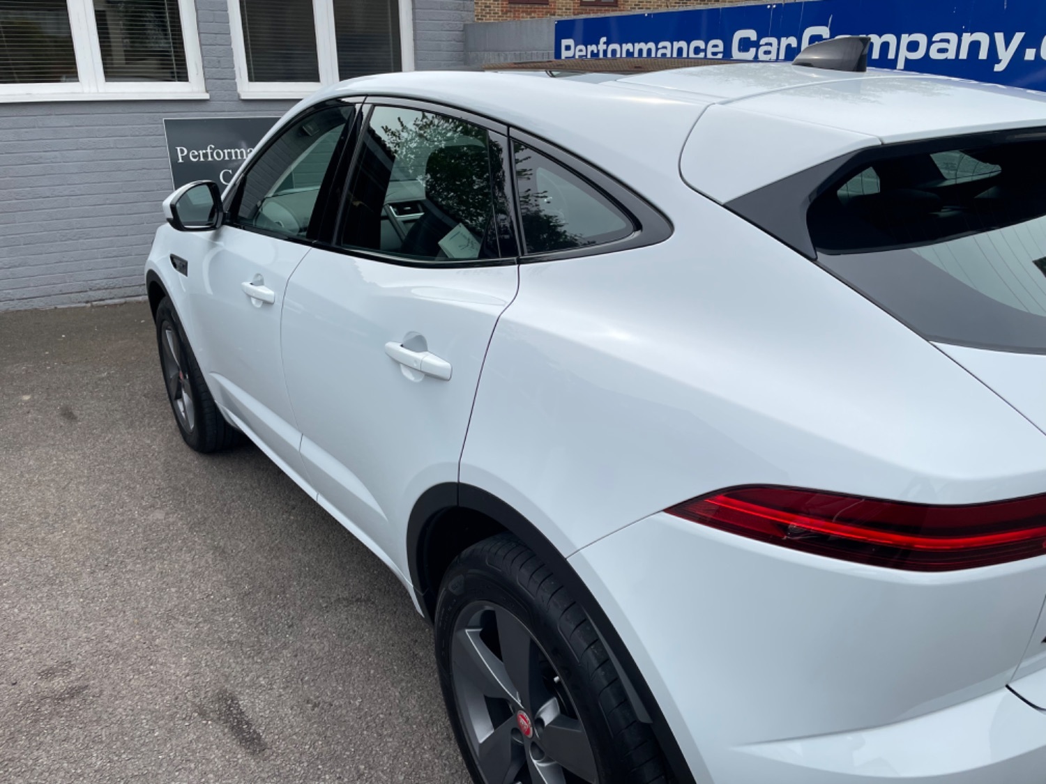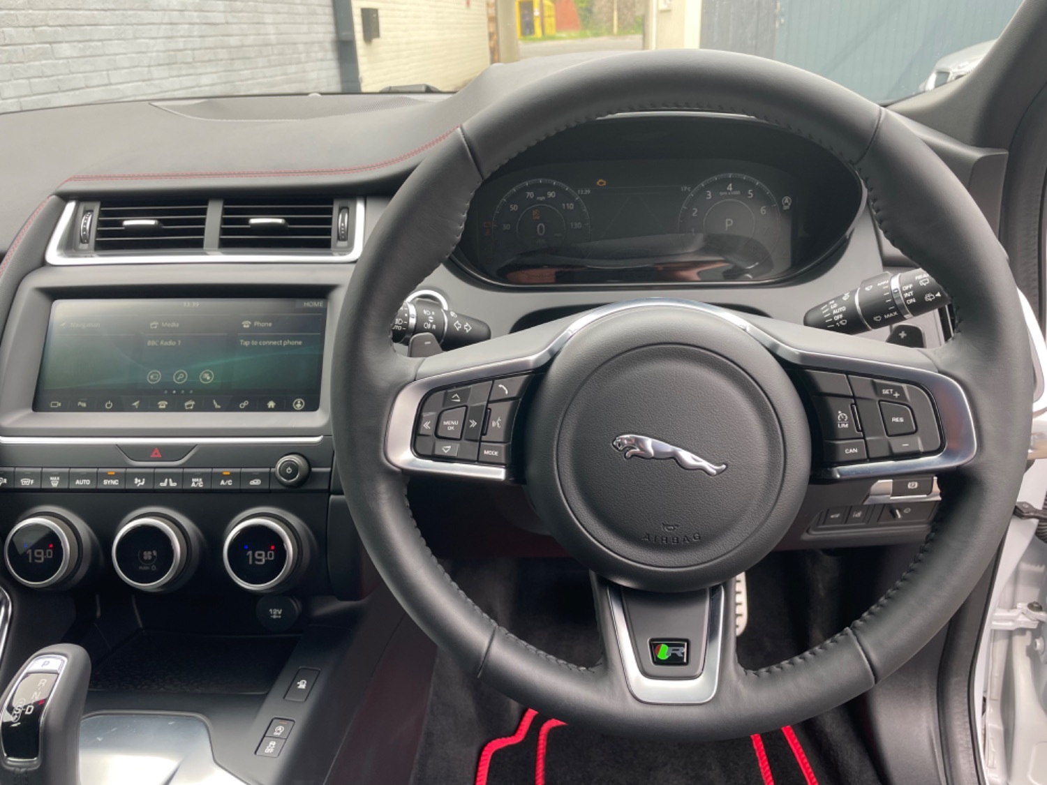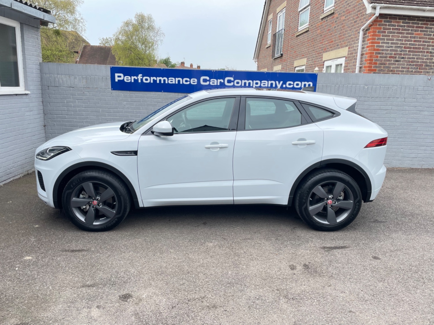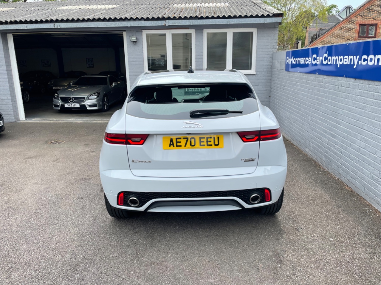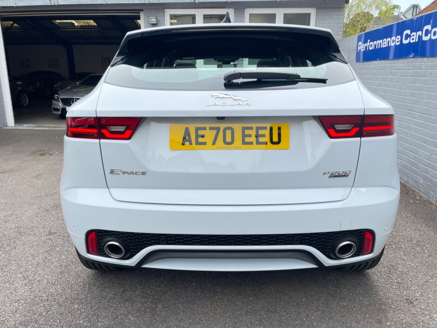 2020 / 70 Jaguar E-Pace R-Dynamic Chequered Flag P200 AWD Finished in Yulong White with only 1600 miles from New, Black Ebony Leather with Red Stitching, 10 Way Electric Seats, Panoramic Roof, Reversing Camera, R-Dynamic branded Leather Multi Function Steering Wheel with Satin Gearshift paddles, Cruise Control, 19 5 Spoke Unmarked Satin Grey Alloys, LED Headlights with Signature DRL, 10 inch Satellite Navigation Pro with Apple Car Play Bluetooth, Power Tailgate, Keyless Entry and Push Button Start, Front and Rear Parking Sensors, Park Assist, Lane Keep Assist, Electric Folding Mirrors, Autolights, Heated Front Screen, Black Exterior Pack. Williams Racing Ceramic Paint and Interior Protector. This E Pace has covered only 1600 miles and is like New and available to be driven away today at a Fantastic Price for this low mileage. Manufacturers Warranty Until October 2023.