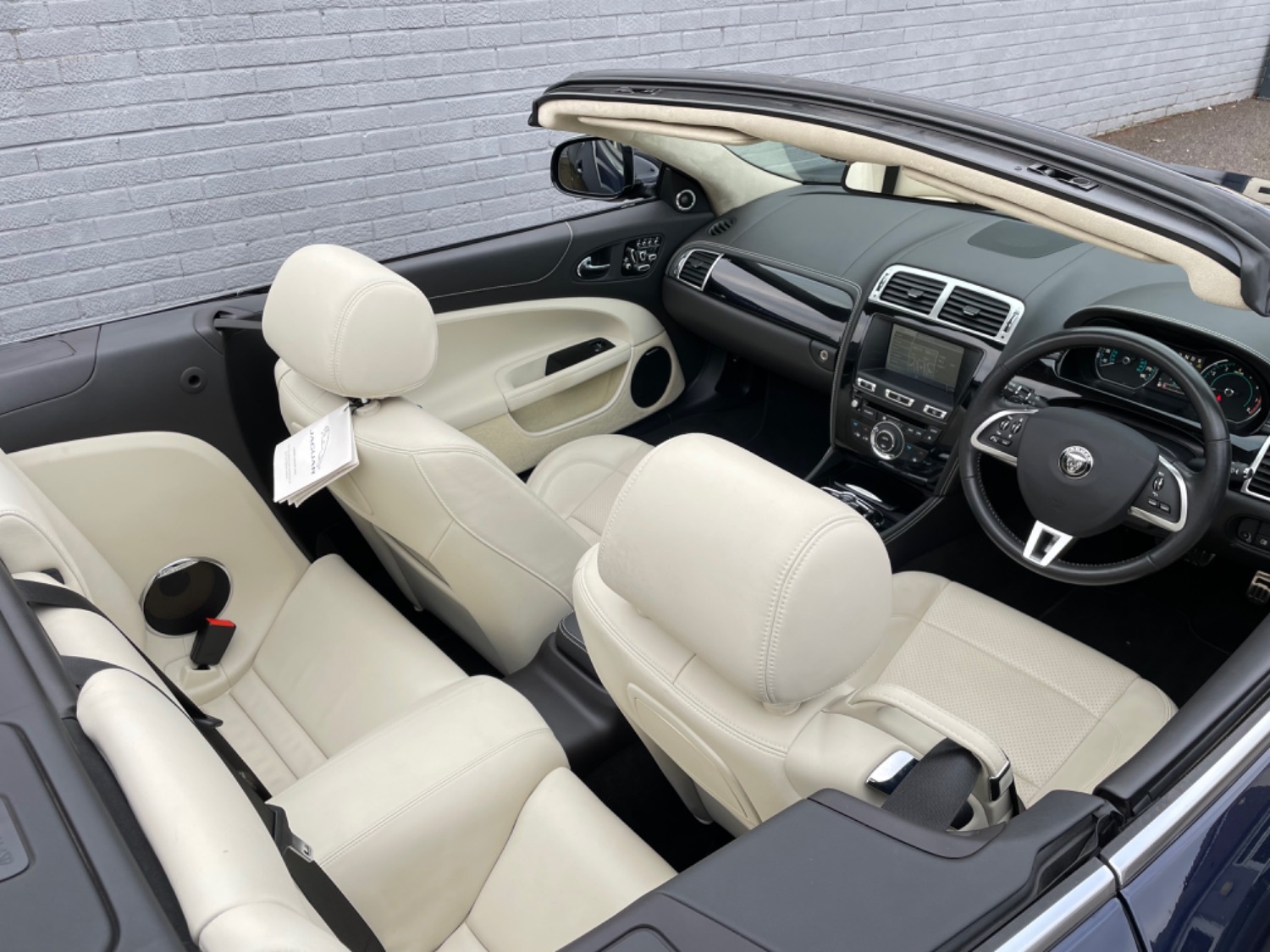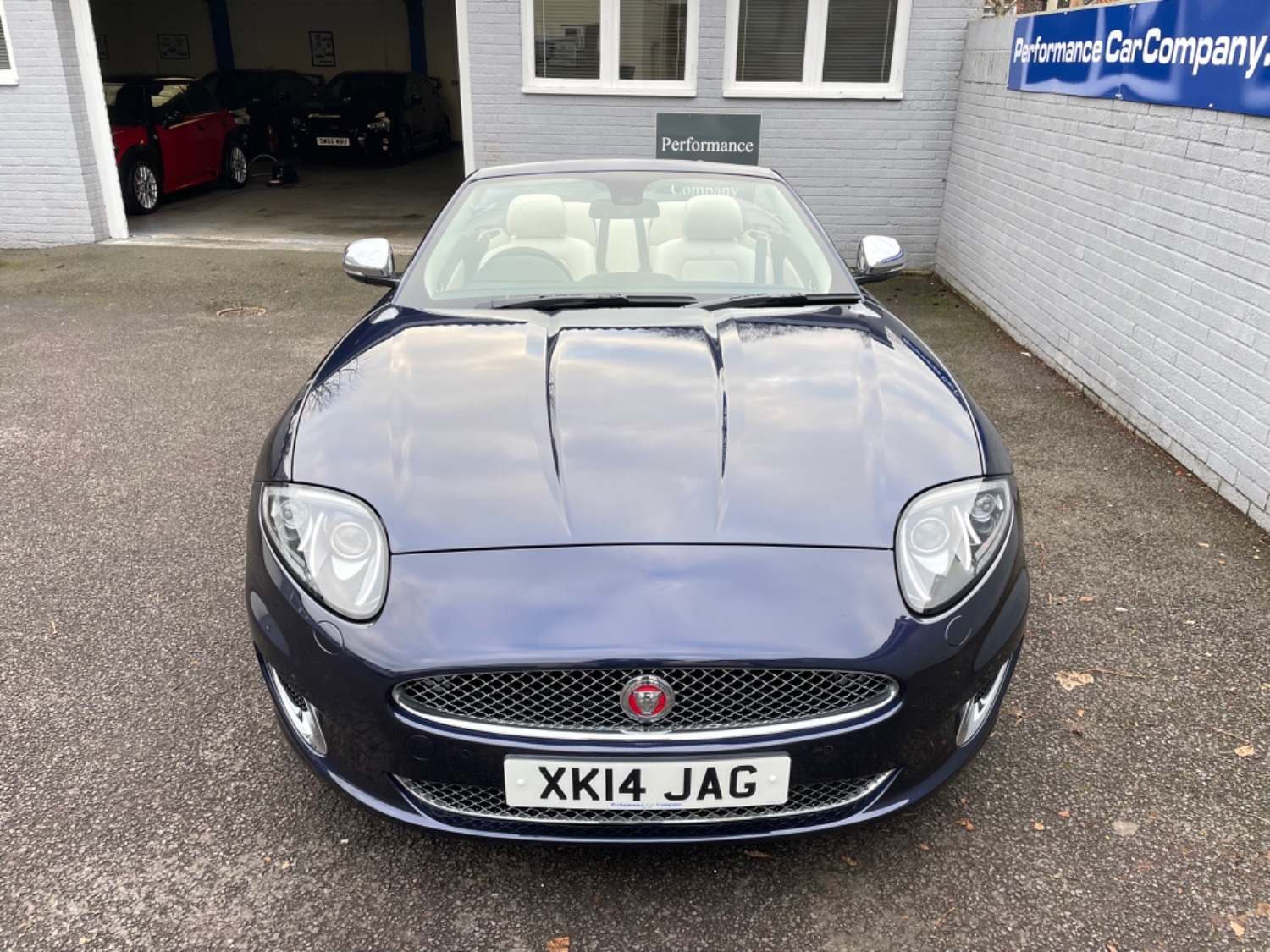 2014 14 Jaguar XK 5.0 Signature Convertible Finished in Metallic Dark Sapphire Blue with only 14,000 miles and 1 Private Owner from New, Services at 5168 miles, 10104 miles and just serviced at Harwoods Jaguar at 13987 miles, Full Ivory Perforated Leather, Electric Memory Sports Seats, Heated and Ventilated Seats, Black Leather door Trims