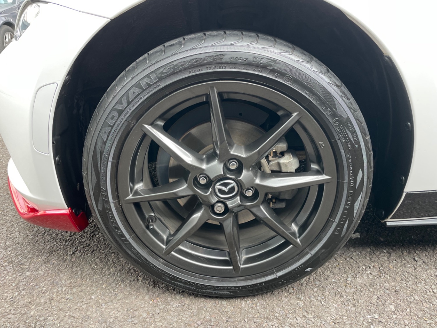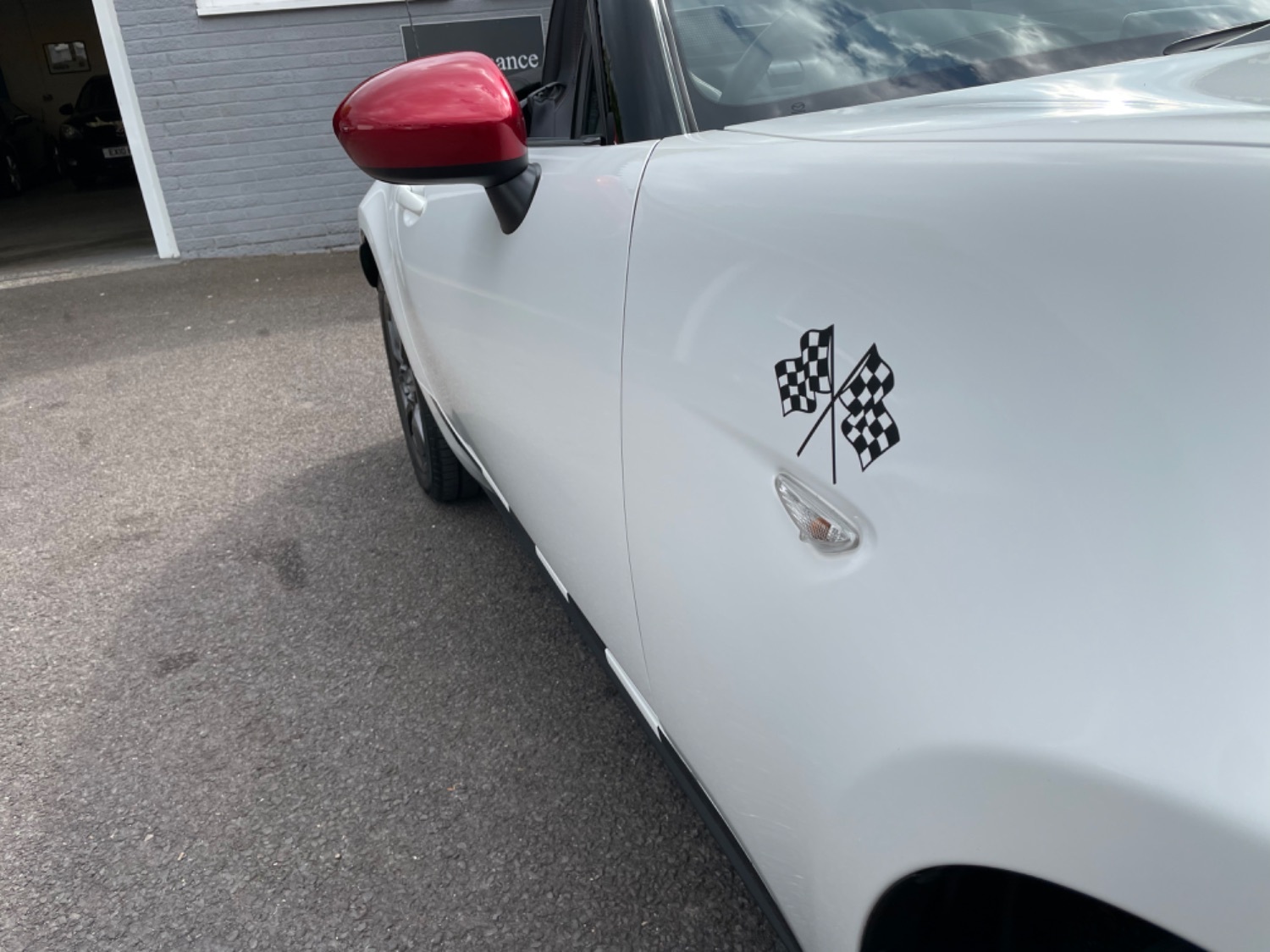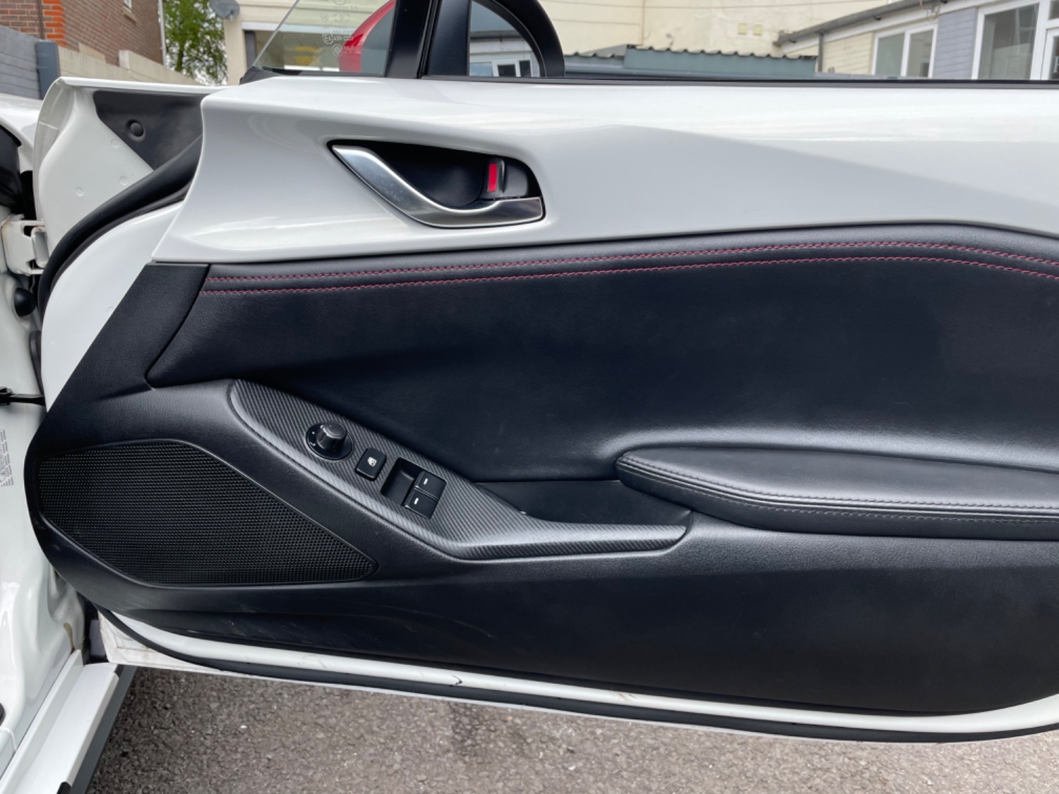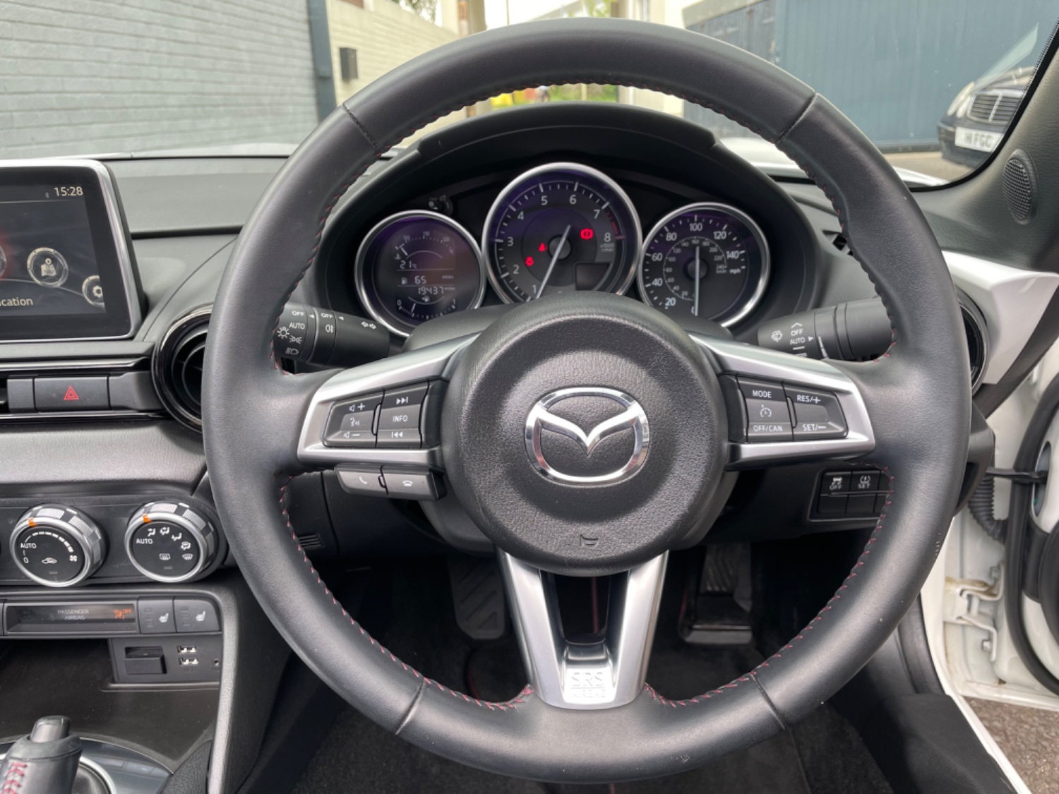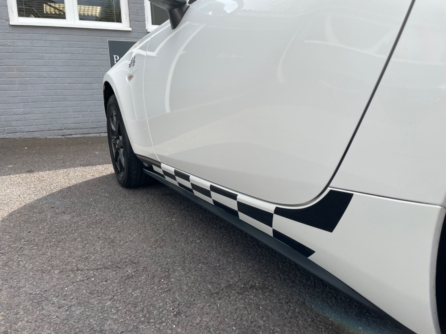 2017 / 66 Mazda MX-5 Icon Limited Edition 1 of 600 made, Finished in Crystal White Pearlescent with door mirrors, front and rear spoiler finished in Soul Red Metallic + Chequered Flag Decals, Having covered Only 19000 miles and with a Full Service History, 6 Speed Manual, Full Black Leather Seats, Heated Seats, 7 inch Satellite Navigation Screen, Factory Bluetooth, LED Headlights, Multi Function Steering Wheel, Cruise Control, Push Button Start, Dusk Sensing Lights, Auto Wipers, Rear Parking Sensors, Air Conditioning, Electric Windows, Electric Mirrors, Remote Alarm and Central Locking, Unmarked Anthracite Alloys. Fantastic looking MX-5 in absolutely Superb Original Condition. UK Supplied with Full Book Pack and Spare Key.