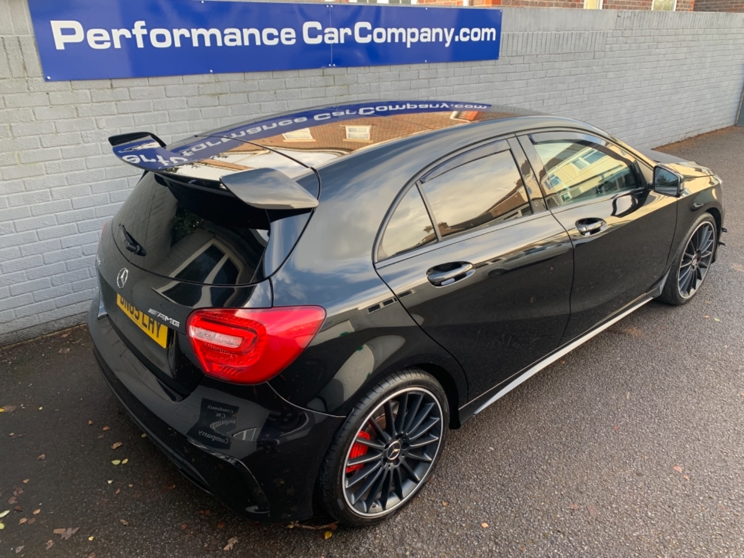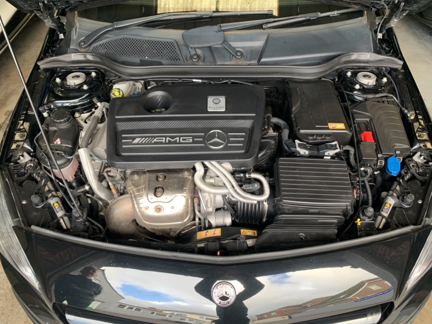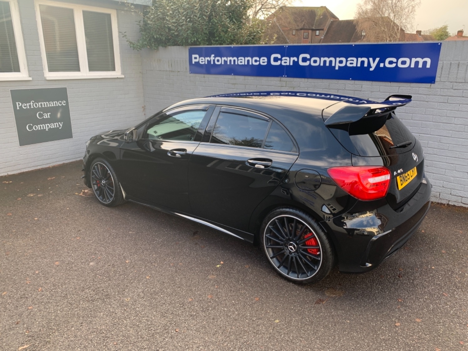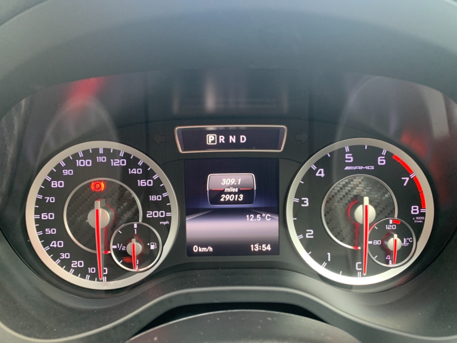 2015/65 Finished in Black with only 29,500 miles and a Full Mercedes and Specialist Service History with Services at 3977 miles, 6900 miles, 12800 miles, 19876 miles, 21090 miles and 25896 miles Plus just had Brand New Mercedes Gearbox fitted April 2021 at a cost of Five Thousand Pounds due to common issue of Crunching into Reverse when Cold. Full Aero Kit, AMG Designo Race Style Wing Back Front Half Leather/ Alcantara Sports Seats, Red Seat Belts, Electric Panoramic Glass Roof with Electric Blind, Carbon Fibre effect Dash, 19 Bi Colour AMG Alloys with Goodyear F1 Tyres all Round, Command Satellite Navigation, Factory Bluetooth, AMG Performance Leather / Alcantara Multi Function Flat bottom Steering Wheel, Cruise Control, Auto Lights, Xenons, Red brake Calipers, AMG illuminated Stainless Door sills, AMG Puddle Lights, AMG Night Package ( Exterior ), illumination Package, Front and Rear Parking Sensors, Sun Protection Glass, Climate Air Conditioning, Remote Alarm And Central Locking, Electric Mirrors. Absolutely Superb Condition, Stunning Looking A45 AMG with High Specification in a Great Colour Combination. UK Supplied with Full Book Pack and Spare key.
