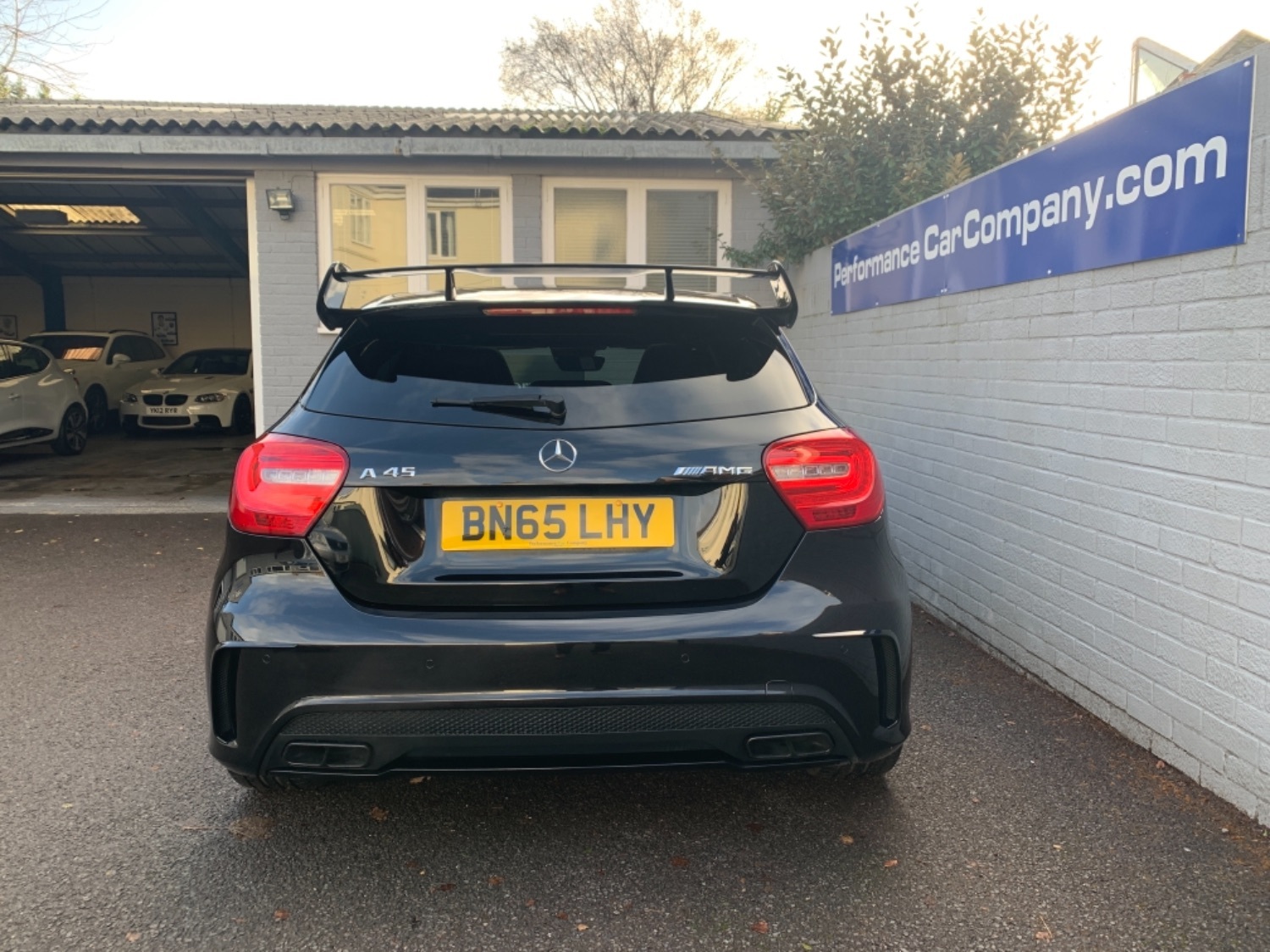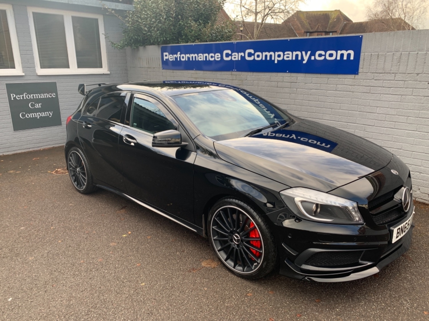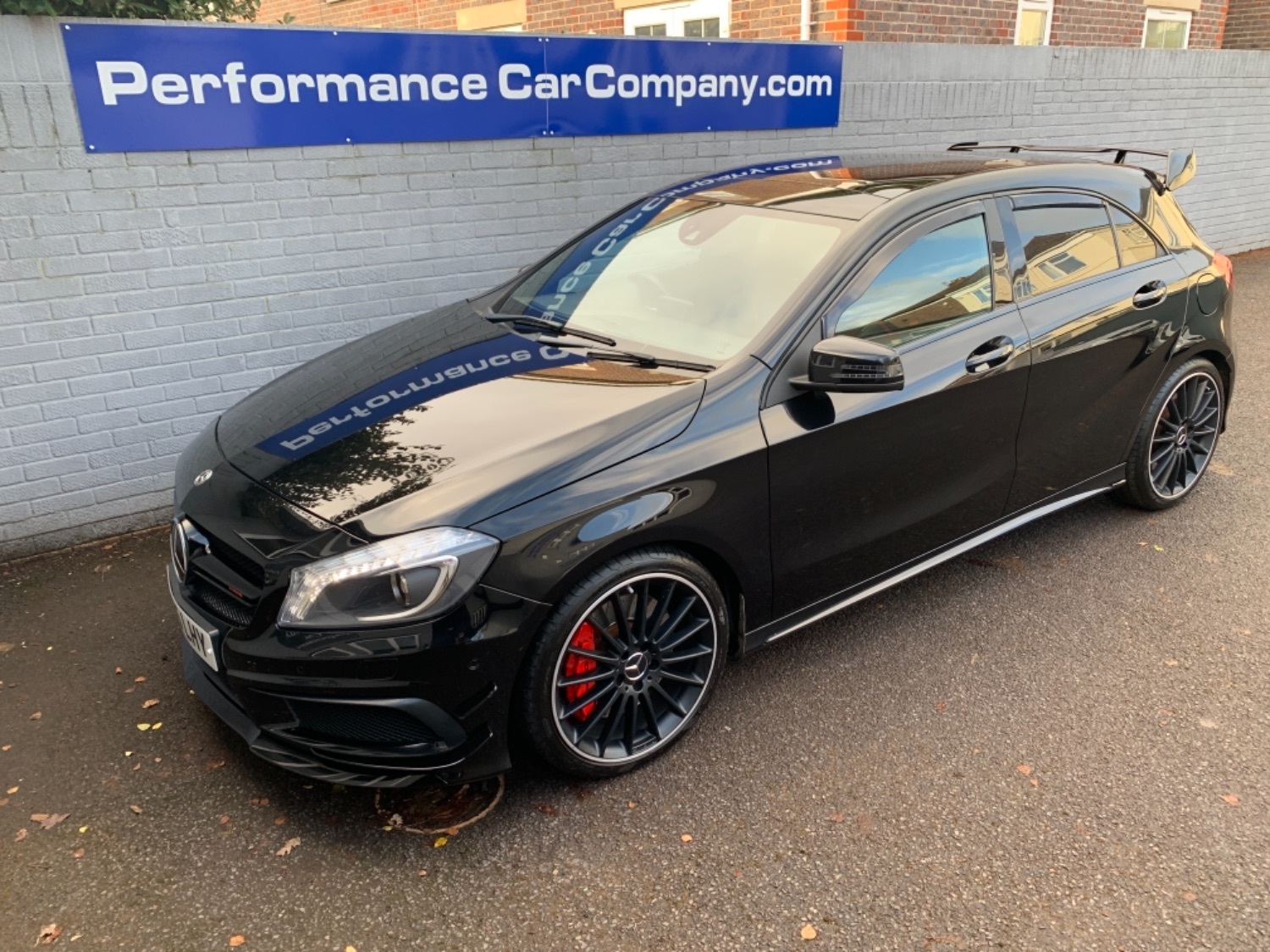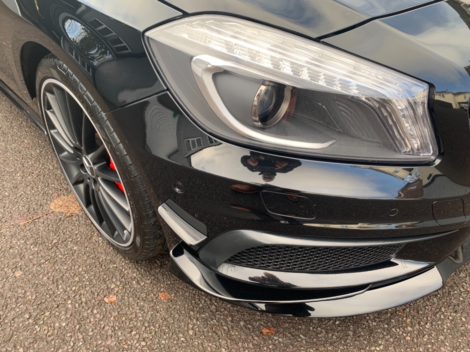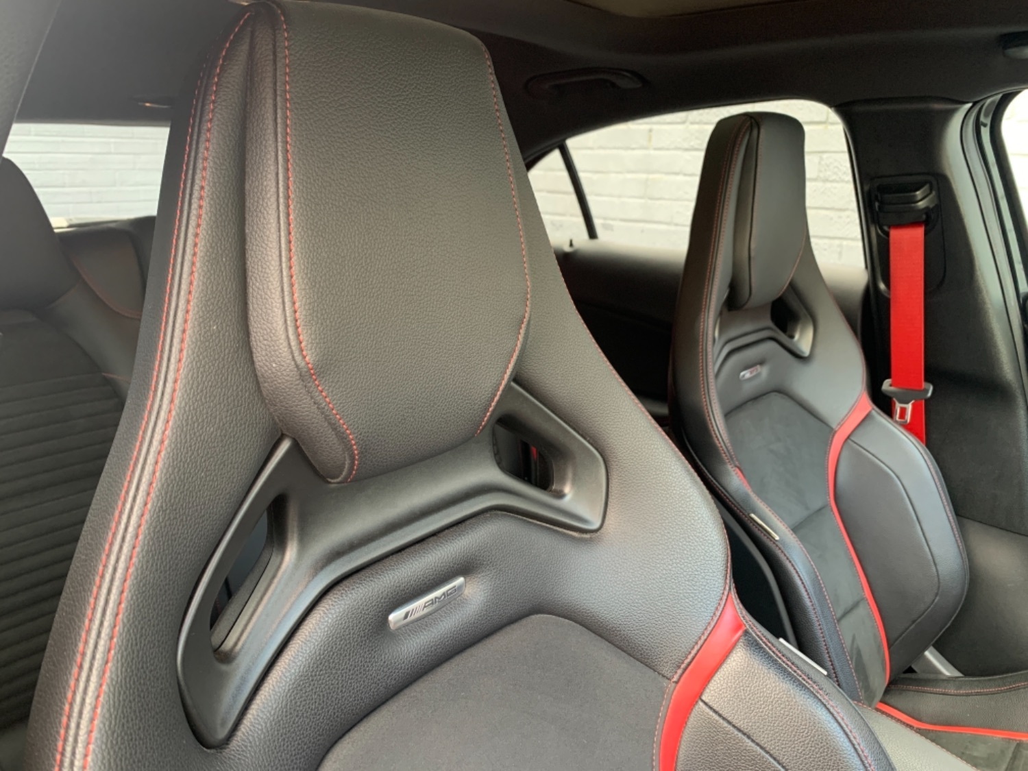 2015/65 Finished in Black with only 29,500 miles and a Full Mercedes and Specialist Service History with Services at 3977 miles, 6900 miles, 12800 miles, 19876 miles, 21090 miles and 25896 miles Plus just had Brand New Mercedes Gearbox fitted April 2021 at a cost of Five Thousand Pounds due to common issue of Crunching into Reverse when Cold. Full Aero Kit, AMG Designo Race Style Wing Back Front Half Leather/ Alcantara Sports Seats, Red Seat Belts, Electric Panoramic Glass Roof with Electric Blind, Carbon Fibre effect Dash, 19 Bi Colour AMG Alloys with Goodyear F1 Tyres all Round, Command Satellite Navigation, Factory Bluetooth, AMG Performance Leather / Alcantara Multi Function Flat bottom Steering Wheel, Cruise Control, Auto Lights, Xenons, Red brake Calipers, AMG illuminated Stainless Door sills, AMG Puddle Lights, AMG Night Package ( Exterior ), illumination Package, Front and Rear Parking Sensors, Sun Protection Glass, Climate Air Conditioning, Remote Alarm And Central Locking, Electric Mirrors. Absolutely Superb Condition, Stunning Looking A45 AMG with High Specification in a Great Colour Combination. UK Supplied with Full Book Pack and Spare key.