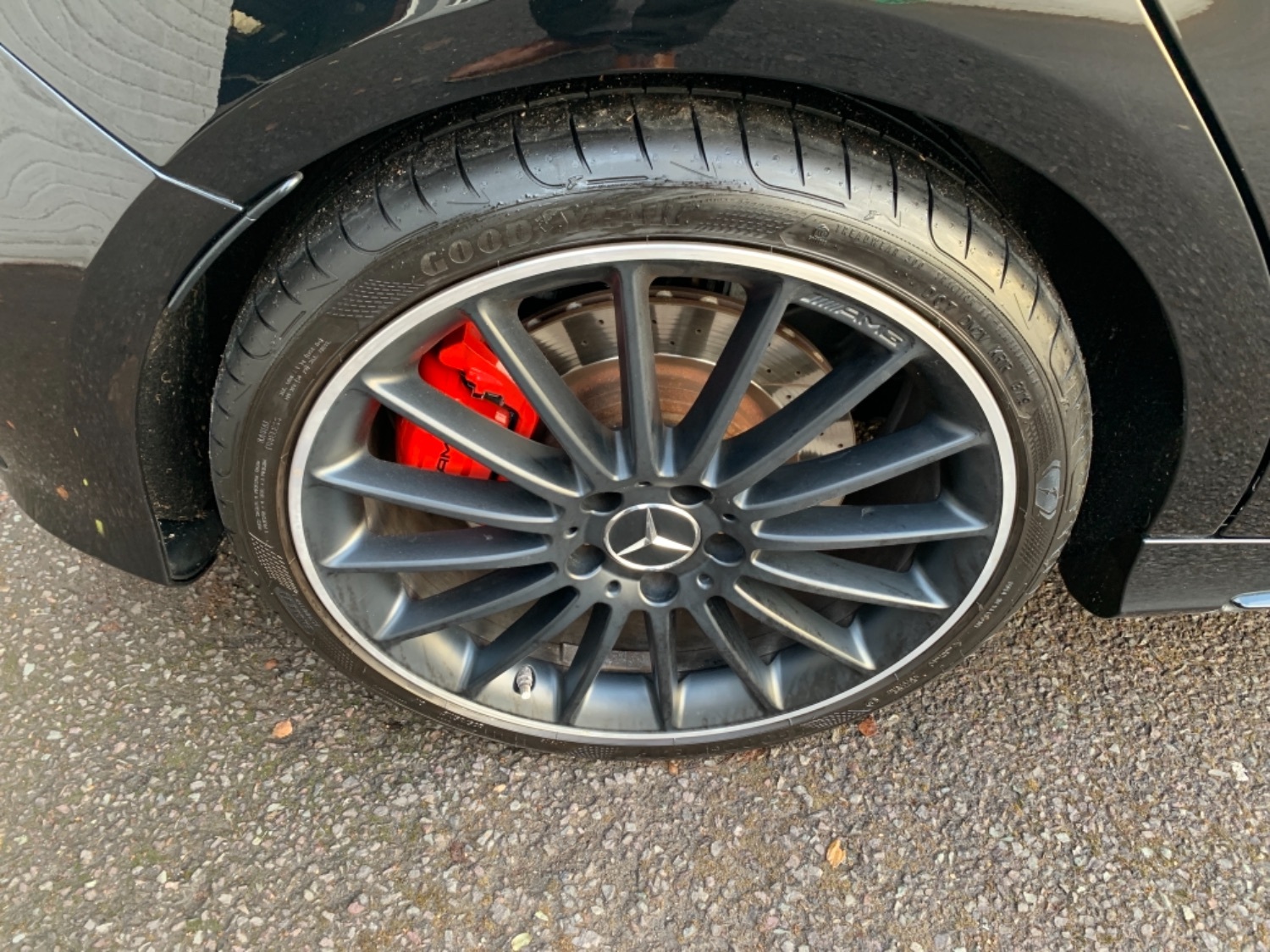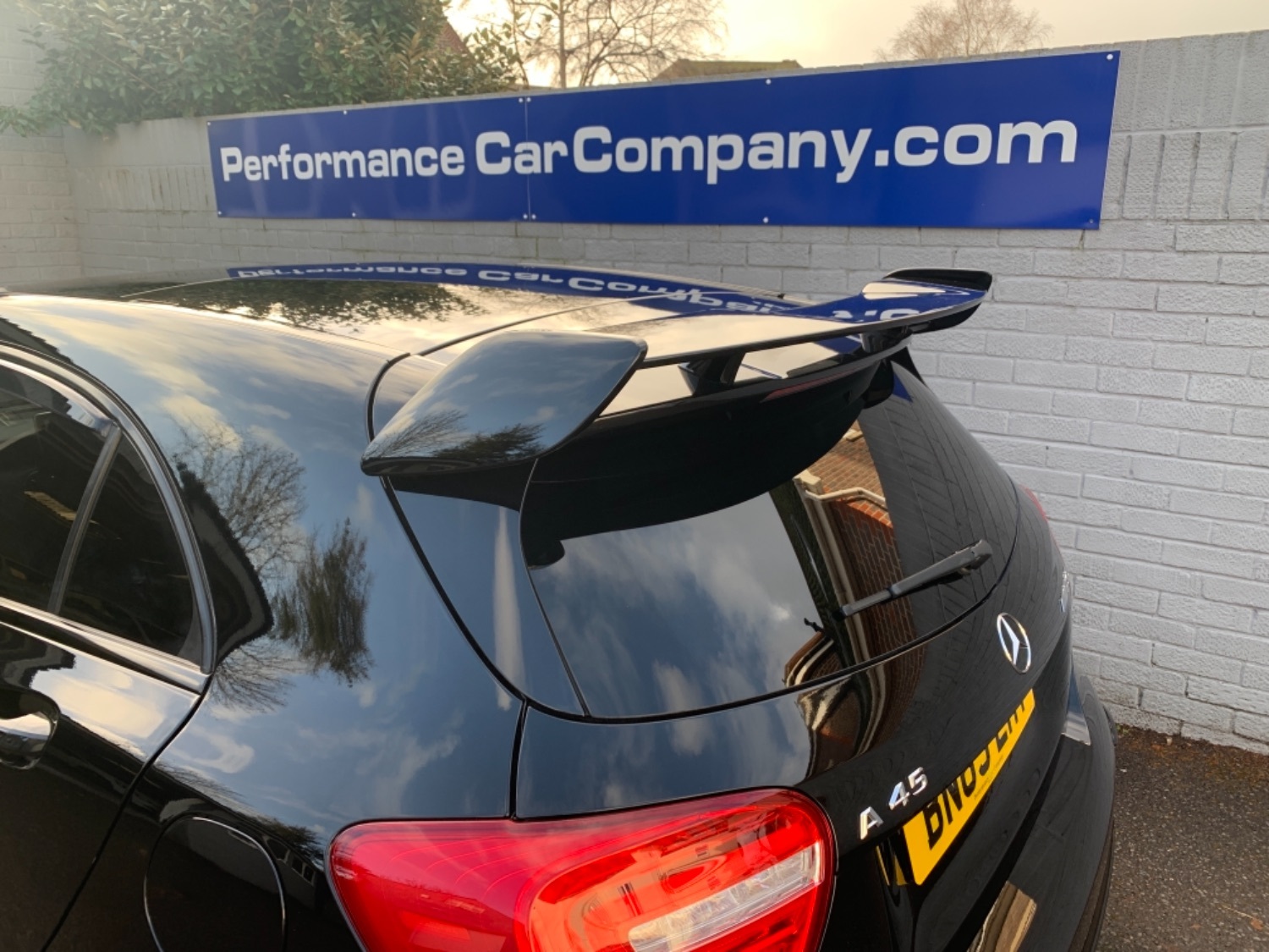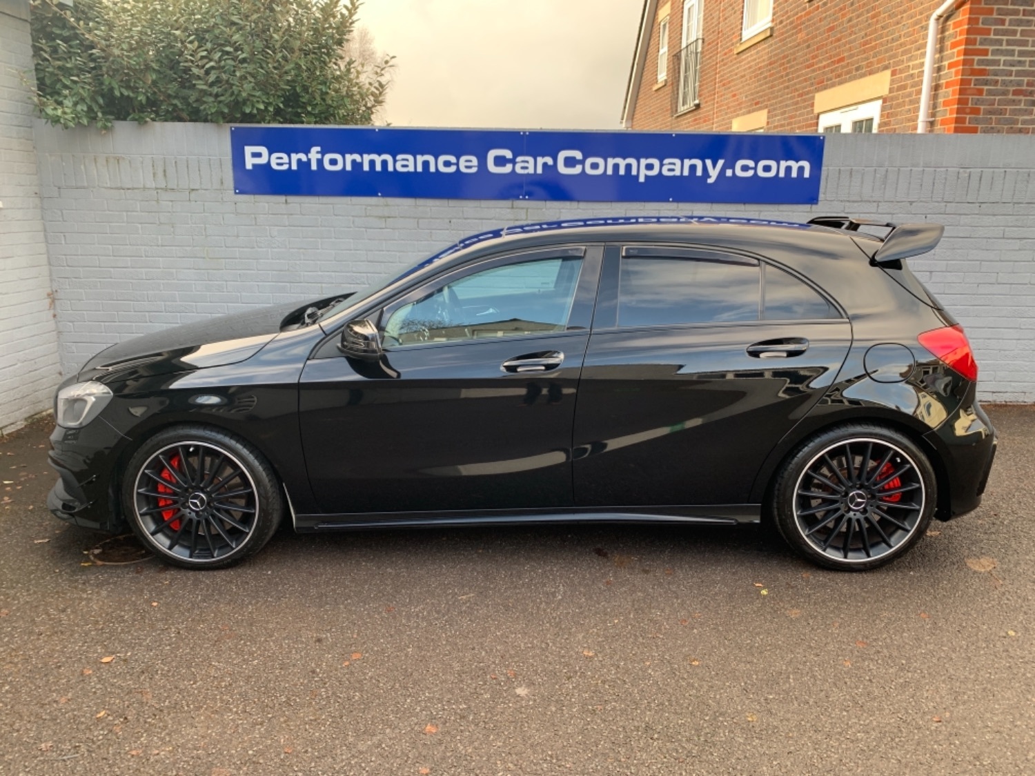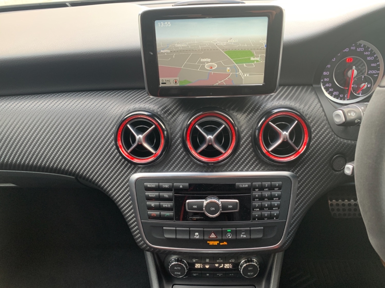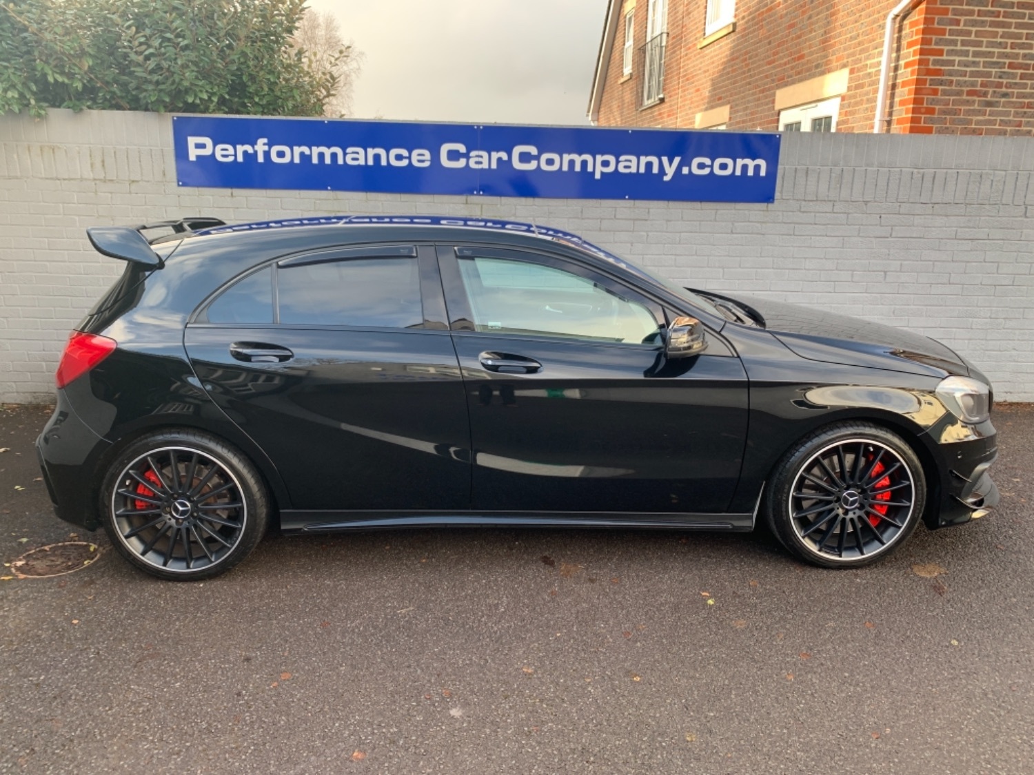 2015/65 Finished in Black with only 29,500 miles and a Full Mercedes and Specialist Service History with Services at 3977 miles, 6900 miles, 12800 miles, 19876 miles, 21090 miles and 25896 miles Plus just had Brand New Mercedes Gearbox fitted April 2021 at a cost of Five Thousand Pounds due to common issue of Crunching into Reverse when Cold. Full Aero Kit, AMG Designo Race Style Wing Back Front Half Leather/ Alcantara Sports Seats, Red Seat Belts, Electric Panoramic Glass Roof with Electric Blind, Carbon Fibre effect Dash, 19 Bi Colour AMG Alloys with Goodyear F1 Tyres all Round, Command Satellite Navigation, Factory Bluetooth, AMG Performance Leather / Alcantara Multi Function Flat bottom Steering Wheel, Cruise Control, Auto Lights, Xenons, Red brake Calipers, AMG illuminated Stainless Door sills, AMG Puddle Lights, AMG Night Package ( Exterior ), illumination Package, Front and Rear Parking Sensors, Sun Protection Glass, Climate Air Conditioning, Remote Alarm And Central Locking, Electric Mirrors. Absolutely Superb Condition, Stunning Looking A45 AMG with High Specification in a Great Colour Combination. UK Supplied with Full Book Pack and Spare key.