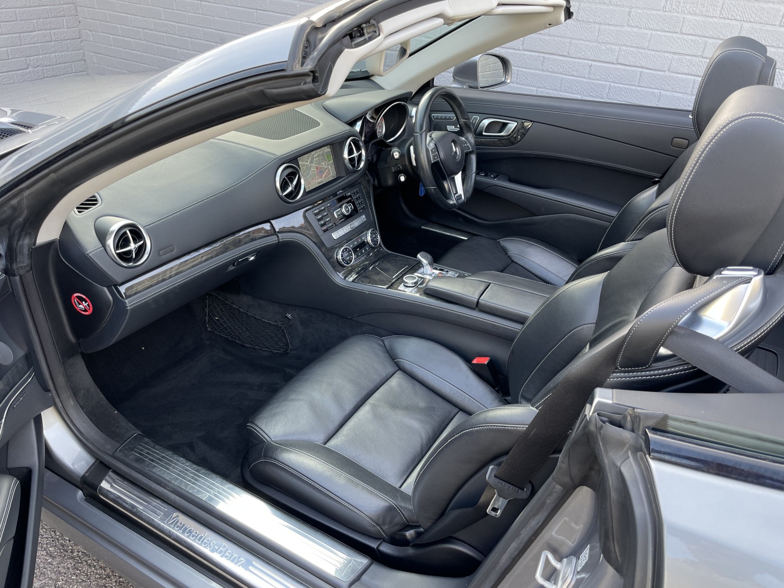 Great Specification Including AMG Sports Package, Black Leather Interior with grey Stitching, Panoramic Sunroof, Power Roof, Reversing Camera, Active Park Assist, Front and Rear Parking sensors. Electric Wind Deflector, Multi Function Steering Wheel with Paddle change, Electric Memory Seats Driver and Passenger, Heated Seats, Airscarf, Electric Steering Column, Command Satellite Navigation, Harmon Kardon, Factory Bluetooth, Cruise Control, Xenons, Autolights, Electric Windows, Electric Folding Mirrors, Remote Alarm and Central Locking, Unmarked 19 AMG Alloys. Absolutely Beautiful Condition and a. Stunning Looking SL350 with lovely Specification in a Great Colour Combination Plus Rare to find with such low mileage. UK Car with Full Book Pack and Spare Key.