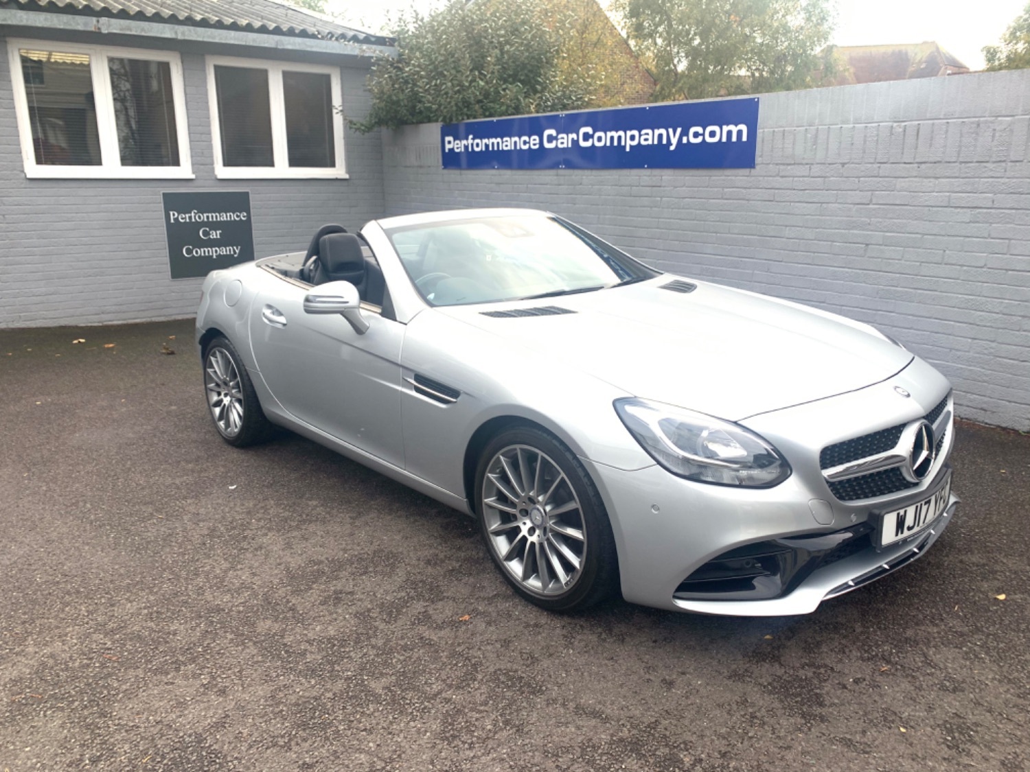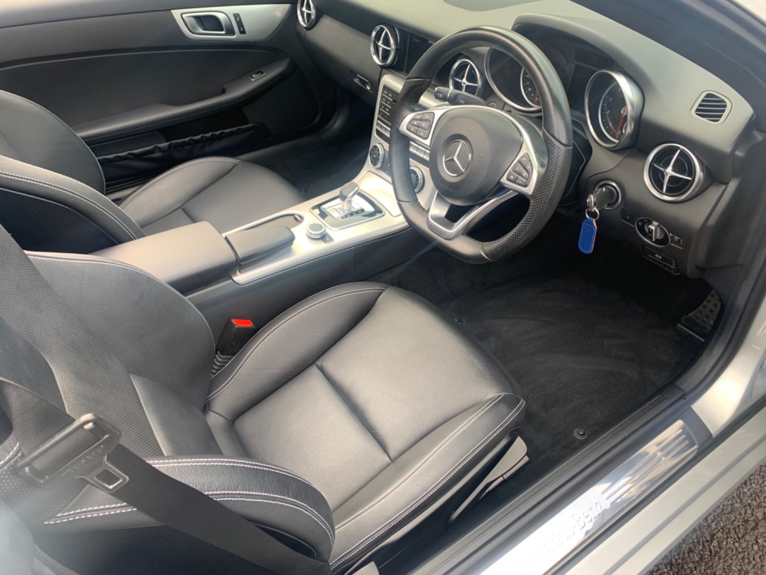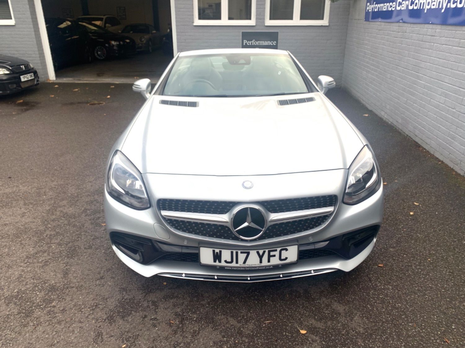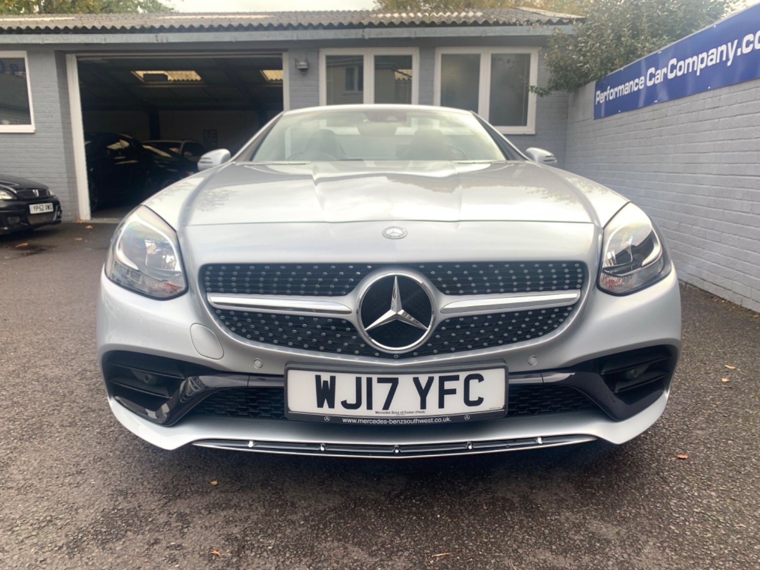 Finished in Metallic Silver with only 9959 miles by One Private Owner and a Full Mercedes Main History with Services at 4118 miles, 7280 miles and 9086 miles. Black Leather With Silver Stitching Sports Seats, Heated Seats, Airscarf, Satellite Navigation, Panoramic Roof, Mercedes Bluetooth, DAB, Air Conditioning, Multi Function Steering Wheel with Paddle gear Change, Dynamic Select, Cruise Control, Auto Lights. Auto Wipers, 18 AMG Polished Alloys with Bridgestone Potenza tyres all round, Front and Rear Parking Sensors, Power folding Roof, Remote Alarm and Central Locking. High Specification Very Low mileage 1 owner 2017 17 SLC200 AMG LINE in Absolutely Fantastic Original Condition. UK Supplied with Full Book Pack, Service Invoices and Spare Key.