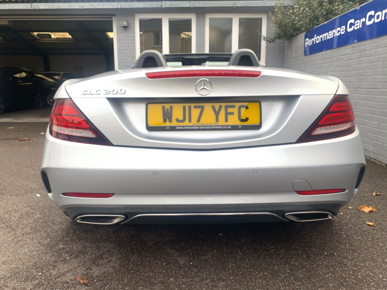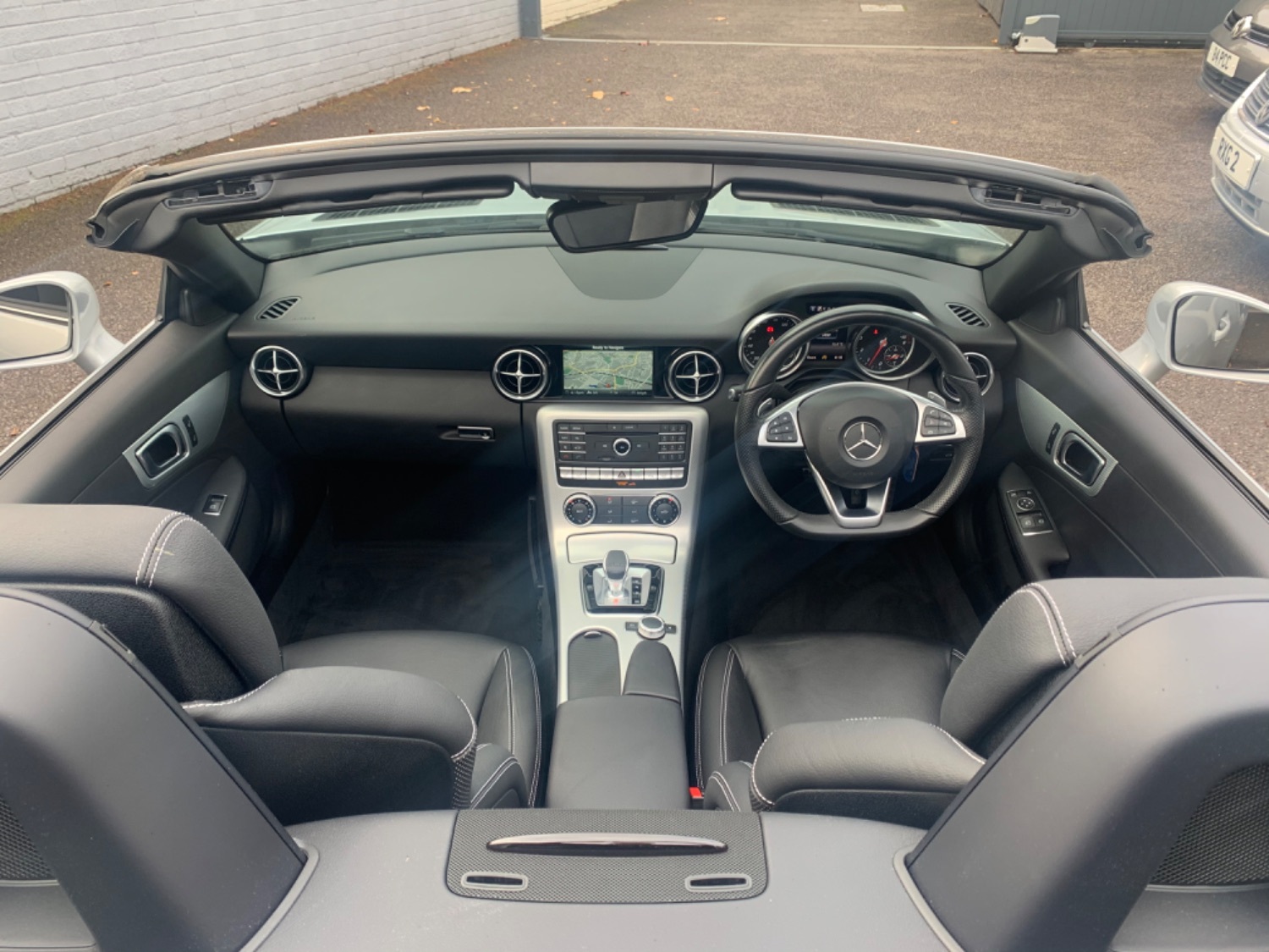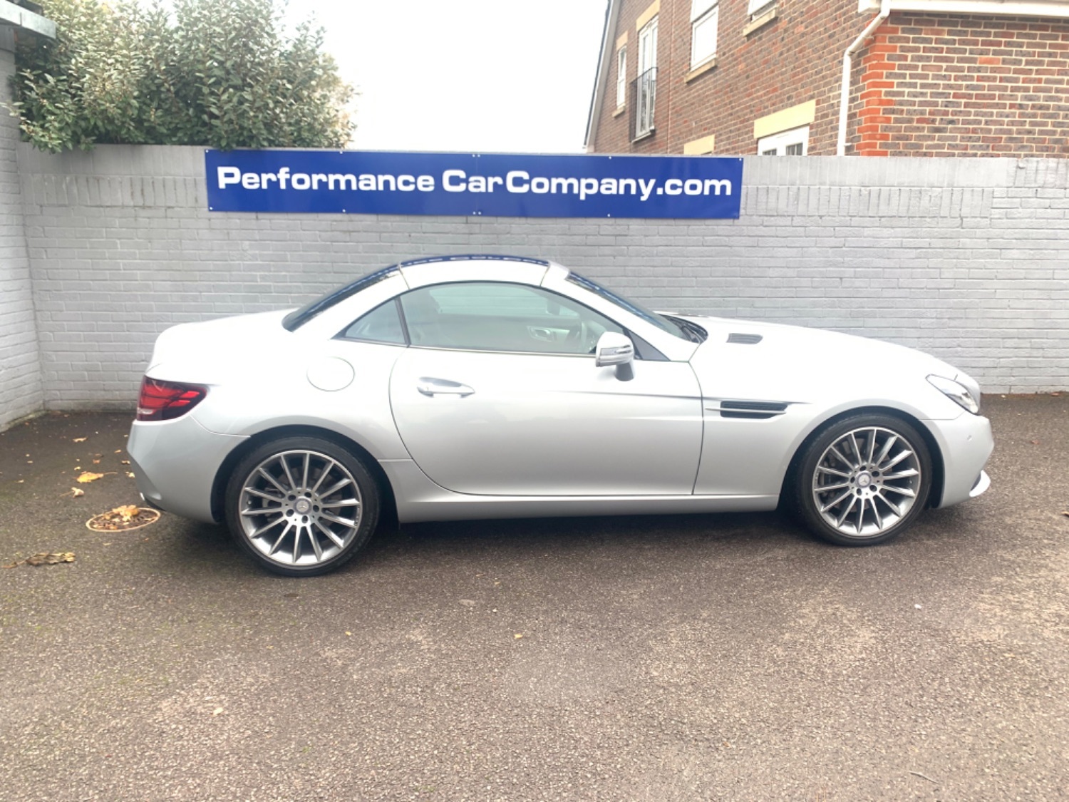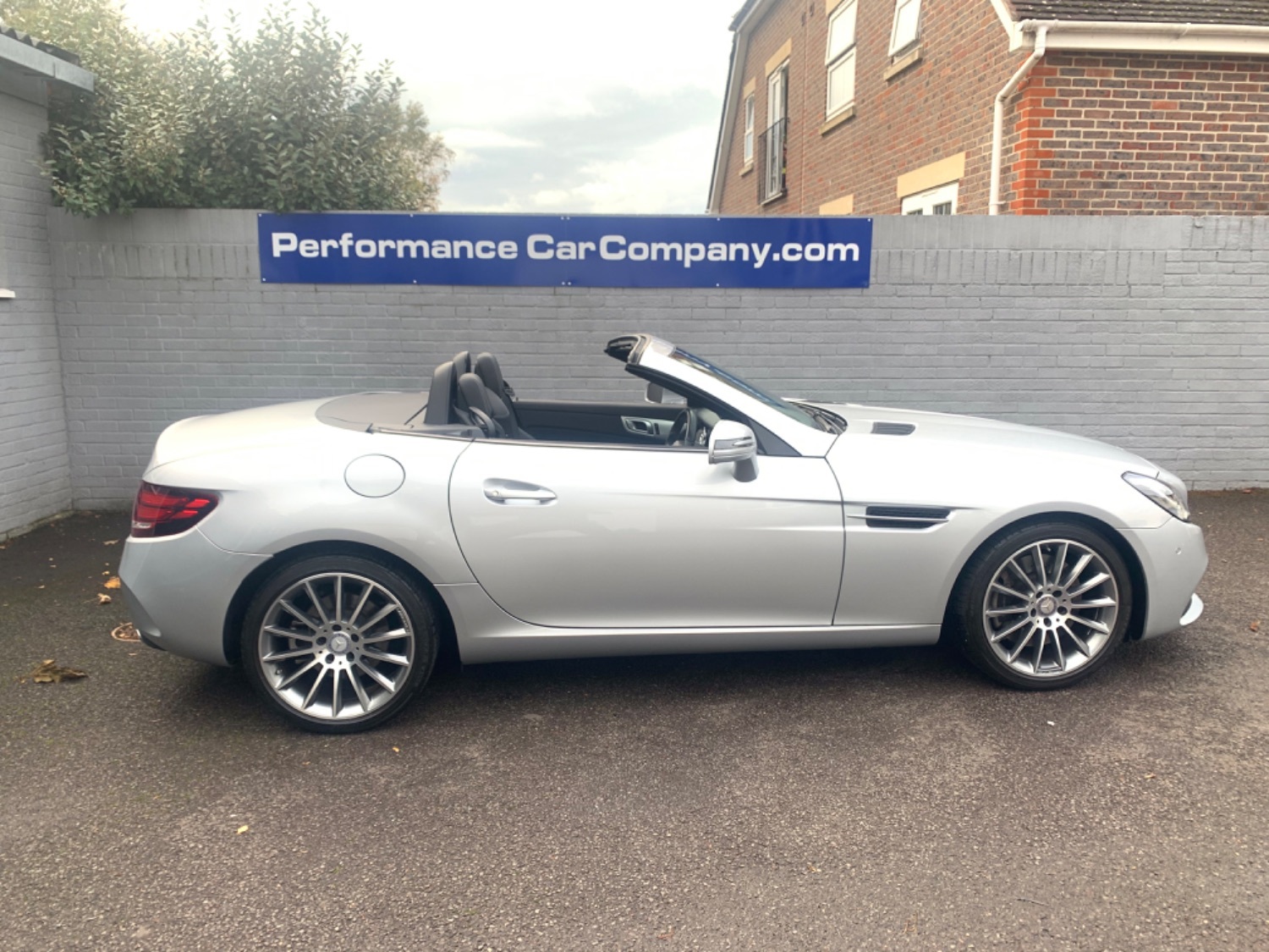Finished in Metallic Silver with only 9959 miles by One Private Owner and a Full Mercedes Main History with Services at 4118 miles, 7280 miles and 9086 miles. Black Leather With Silver Stitching Sports Seats, Heated Seats, Airscarf, Satellite Navigation, Panoramic Roof, Mercedes Bluetooth, DAB, Air Conditioning, Multi Function Steering Wheel with Paddle gear Change, Dynamic Select, Cruise Control, Auto Lights. Auto Wipers, 18 AMG Polished Alloys with Bridgestone Potenza tyres all round, Front and Rear Parking Sensors, Power folding Roof, Remote Alarm and Central Locking. High Specification Very Low mileage 1 owner 2017 17 SLC200 AMG LINE in Absolutely Fantastic Original Condition. UK Supplied with Full Book Pack, Service Invoices and Spare Key.