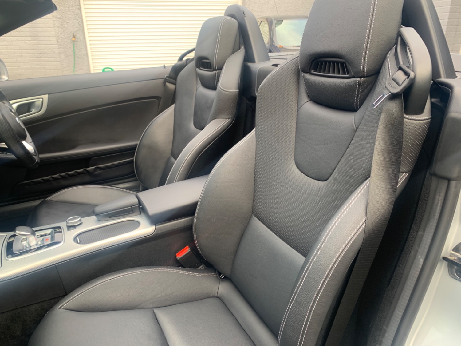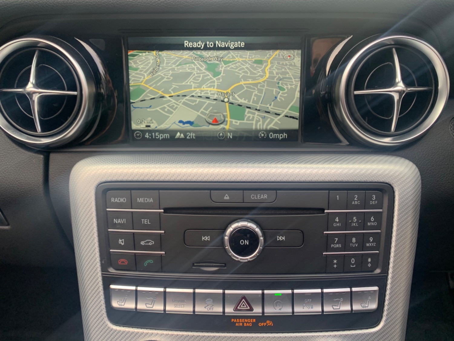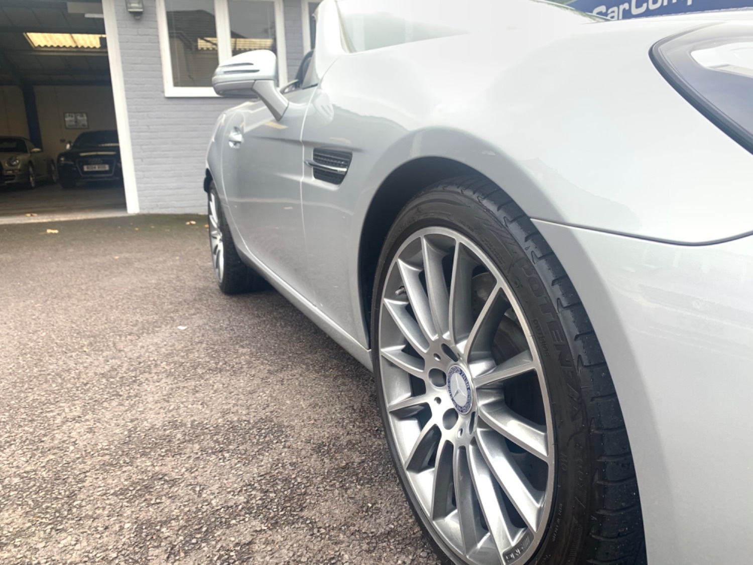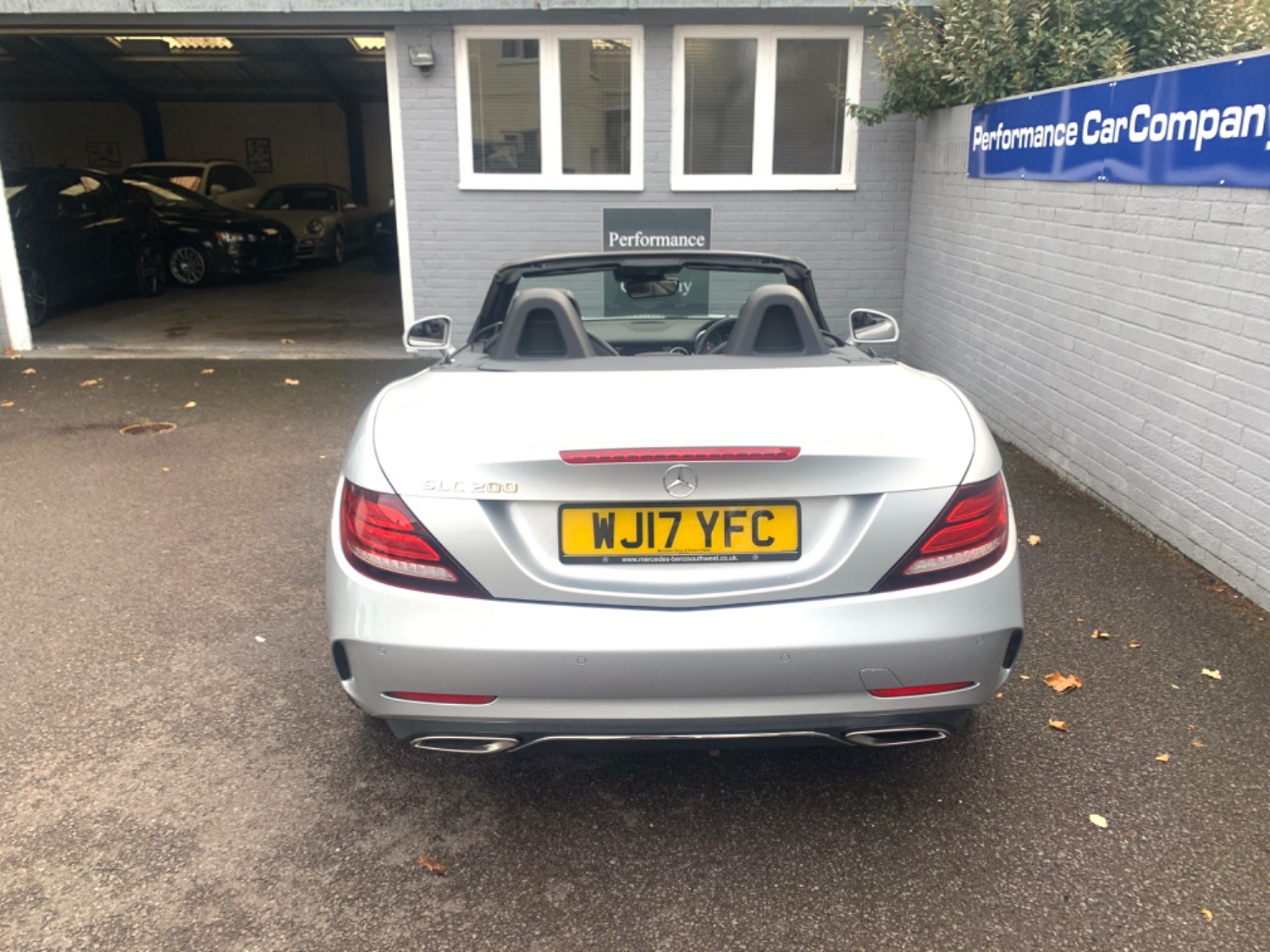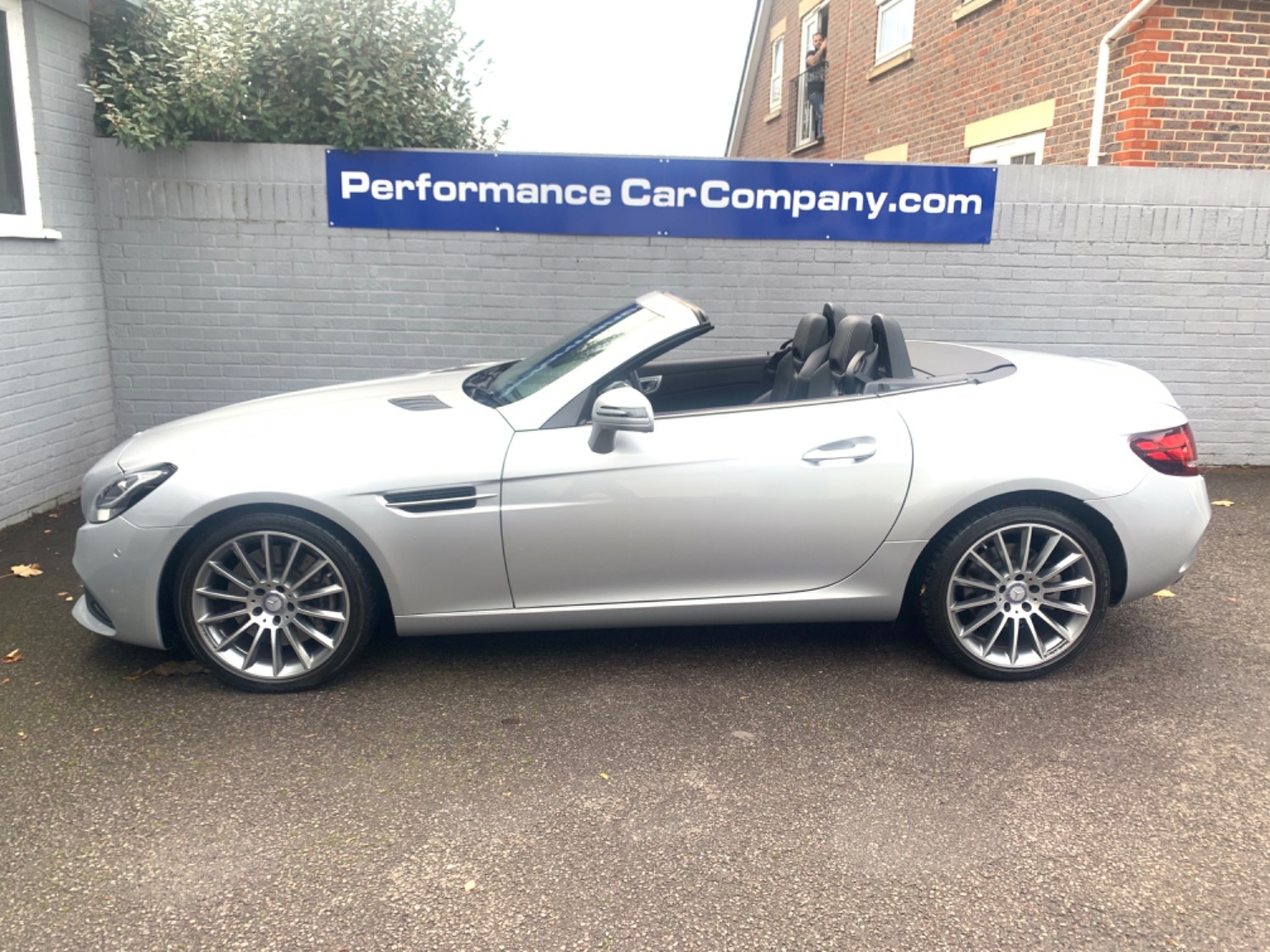 Finished in Metallic Silver with only 9959 miles by One Private Owner and a Full Mercedes Main History with Services at 4118 miles, 7280 miles and 9086 miles. Black Leather With Silver Stitching Sports Seats, Heated Seats, Airscarf, Satellite Navigation, Panoramic Roof, Mercedes Bluetooth, DAB, Air Conditioning, Multi Function Steering Wheel with Paddle gear Change, Dynamic Select, Cruise Control, Auto Lights. Auto Wipers, 18 AMG Polished Alloys with Bridgestone Potenza tyres all round, Front and Rear Parking Sensors, Power folding Roof, Remote Alarm and Central Locking. High Specification Very Low mileage 1 owner 2017 17 SLC200 AMG LINE in Absolutely Fantastic Original Condition. UK Supplied with Full Book Pack, Service Invoices and Spare Key.