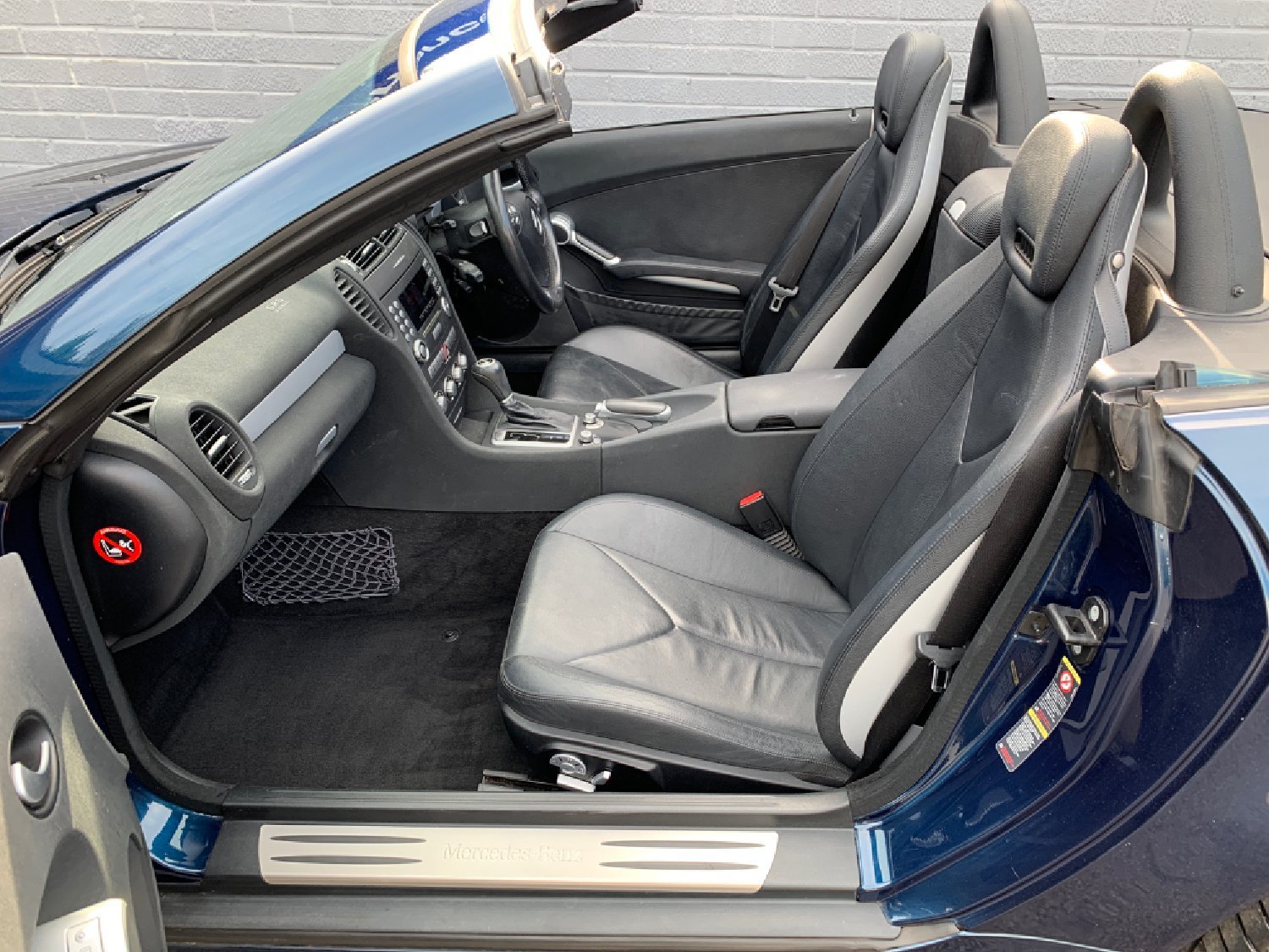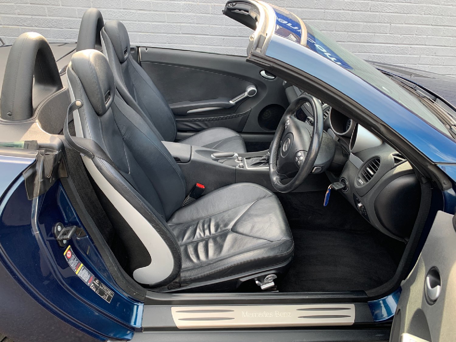 Finished in Metallic Blue with only 57,000 miles and a Full Mercedes and Mercedes Specialist Service History, Electric Memory Black Leather Seats, Heated Seats, Airscarf, Air Conditioning, Electric Steering Column, Multi Function Steering Wheel, Cruise Control, Electric Folding Mirrors, Xenons, 17 Alloys with Bridgestone Tyres All Round, CD, Power Roof, Electric Windows, Remote Alarm and Central Locking. Superb Condition and Great Value for a High Specification Low mileage rare SLK 350 auto. UK Supplied with Full Book pack and spare key.