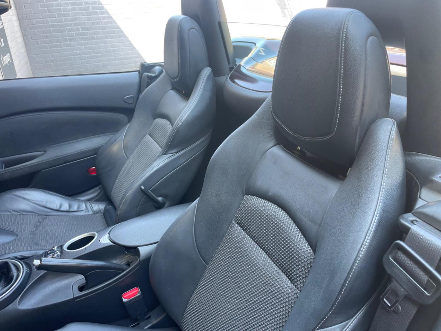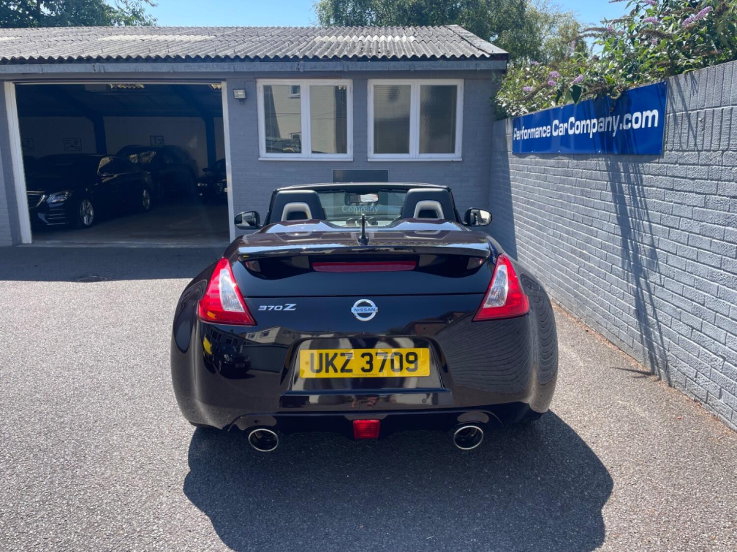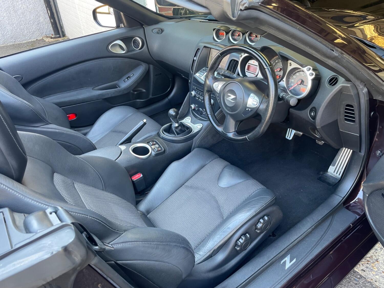 2011 / 61 Nissan 370z GT Convertible 6 Speed Manual Finished in Metallic Black Rose Pearl with only 30000 miles and a Full Service History with last service carried out by Nissan Main Dealer at 29634 miles. We supplied this beautiful 370z to the last owner 5 years ago and since then he has fitted a New Colour coded Rear Spoiler, Front and rear Parking sensors fitted at a cost of 960 pounds + Upgraded exhaust. Electric Black Leather / Alcantara Sports seats which are Heated and Cooled, Black Power Roof, Satellite Navigation, Factory Bluetooth, Air Conditioning, 19 GT Alloys with Michelin Tyres all Round, Xenons, Multi Function Sports Steering Wheel, Cruise Control, CD + BOSE, Electric Windows, Electric Folding Mirrors, Keyless Entry and Push Button Start, Remote Alarm and Central Locking plus UKZ 3709 Private number plate included with car.