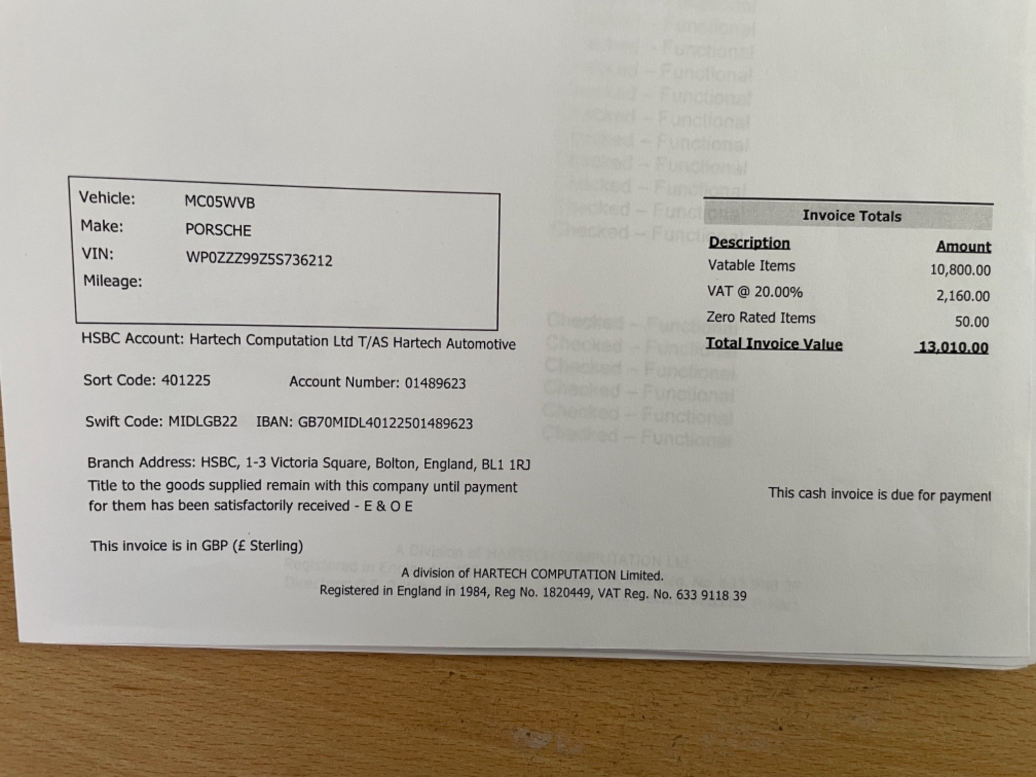 Supplied with Full Book Pack, Invoice for Hartech Full Engine rebuild and Spare key.