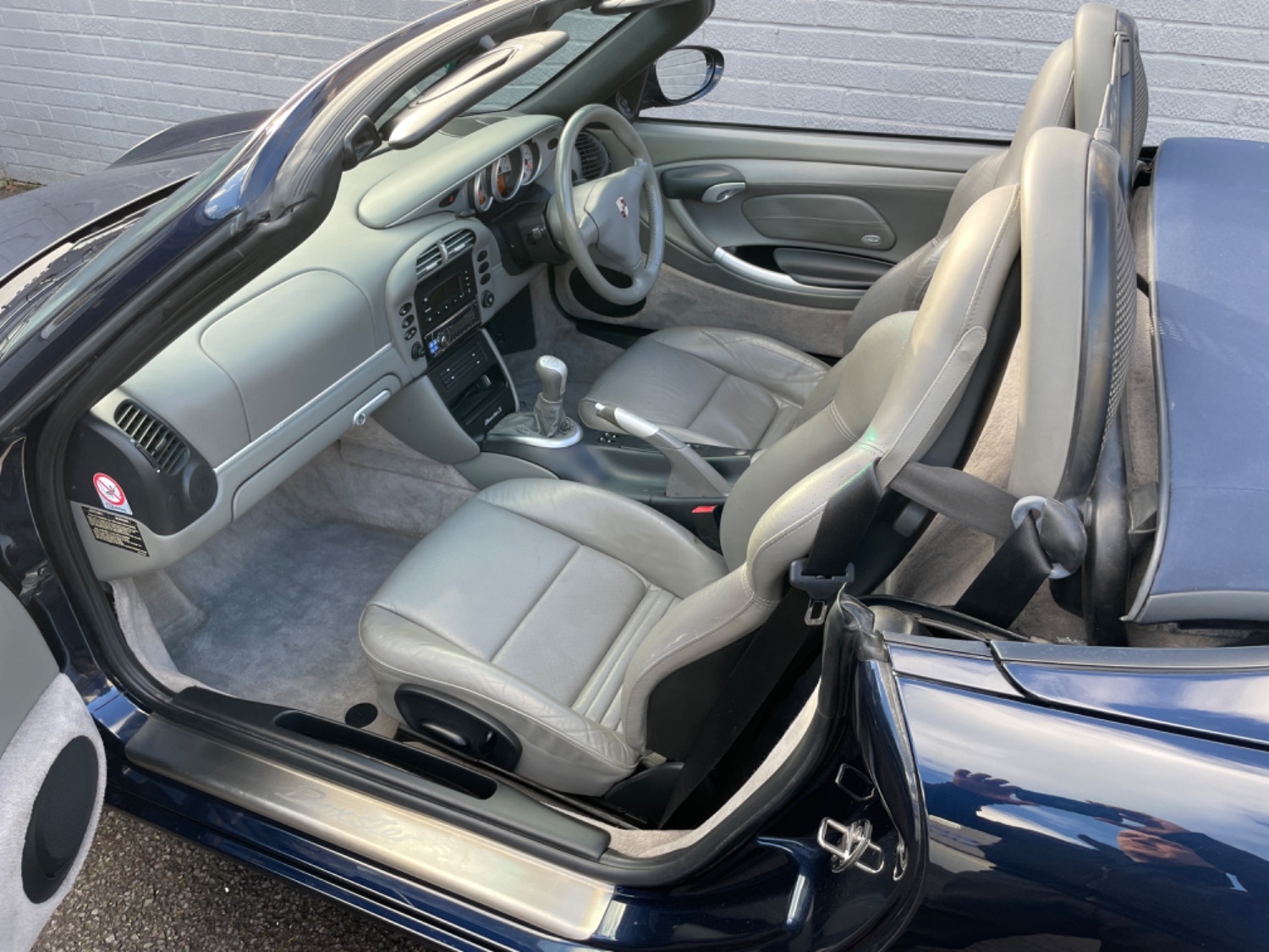 2003 / 03 Porsche Boxster S Finished in Metallic Midnight Blue and fitted with Paint Protection Film To Front and sides of car which cost 1600 Pounds. Only 63,000 miles and a Full Service History with Services at 7484 miles, 12140 miles, 16835 miles, 22178 miles, 27466 miles, 32474 miles, 40542 miles, 46107 miles, 54064 miles, 56372 miles, 59086 miles and 62362 miles, Grey Leather Sports Seats, Blue Power Hood, Wind Deflector, Unmarked 18 Carrera Alloys with Continental Tyres All Round, Upgraded Stereo with Bluetooth, Xenons, Fitted Front and Rear Parking Sensors, Electric Windows, Electric Mirrors, Remote Alarm and Central Locking, Previously Supplied by us to last owner nearly 6 years ago. Superb Condition and Great Value for Low mileage Porsche Boxster 986 S Manual. UK Supplied with Full Book Pack and Spare Key.