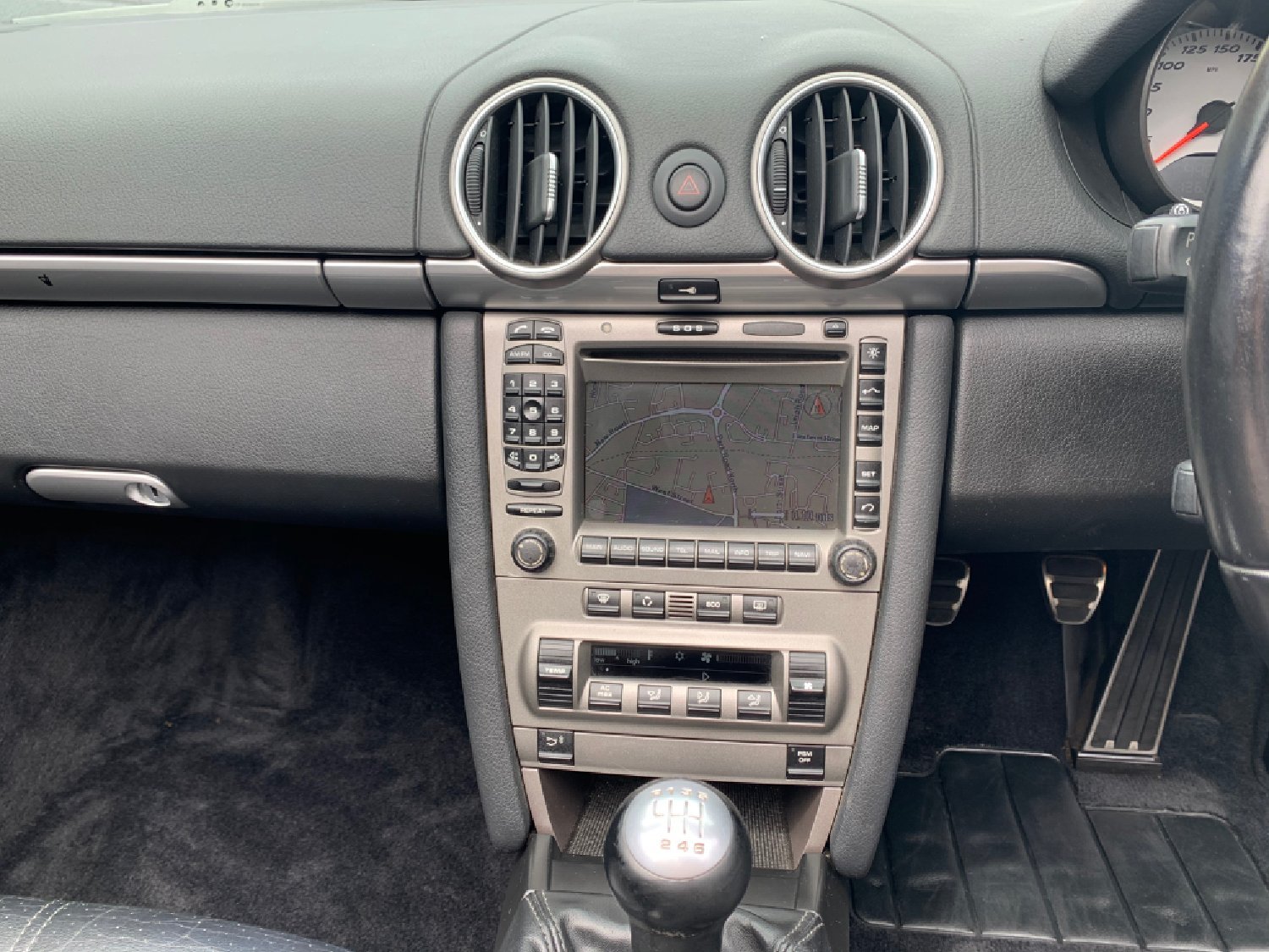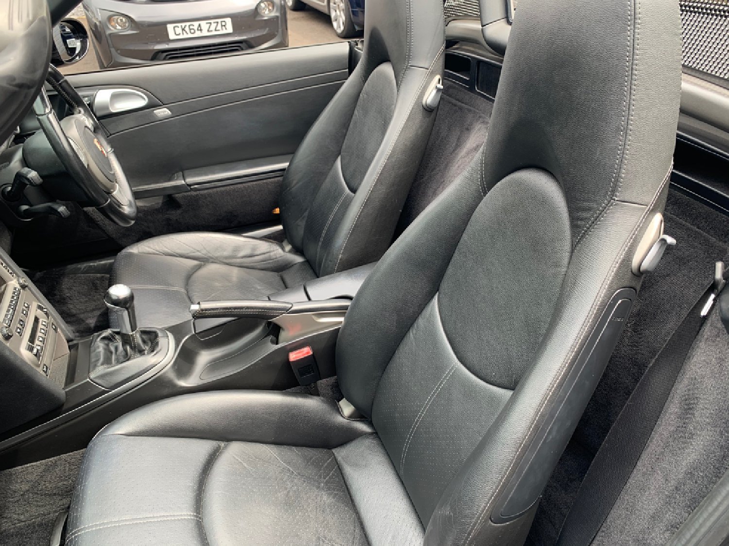 2007 07 Finished in Metallic Black with only 44,000 miles and a Full Service History with services at 9222 miles - Porsche, 20587 miles - Porsche, 25677 miles - Porsche, 42375 miles - Independent, 44258 miles - Independent, Black Leather Seats, Porsche PCM Satellite Navigation, 6 Speed Manual, PSM, 19 Alloys with matching Bridgestone Potenza Tyres All Round, Climate Air Conditioning with 2 New Condensers Just Fitted, Computer, Rear Parking Sensors, Black Power Roof, Electric Windows, Remote Alarm and Central Locking, Electric Mirrors. Superb Original Condition and Value for Great Looking low mileage Boxster 3.4 S. UK Supplied with Full Book Pack.
