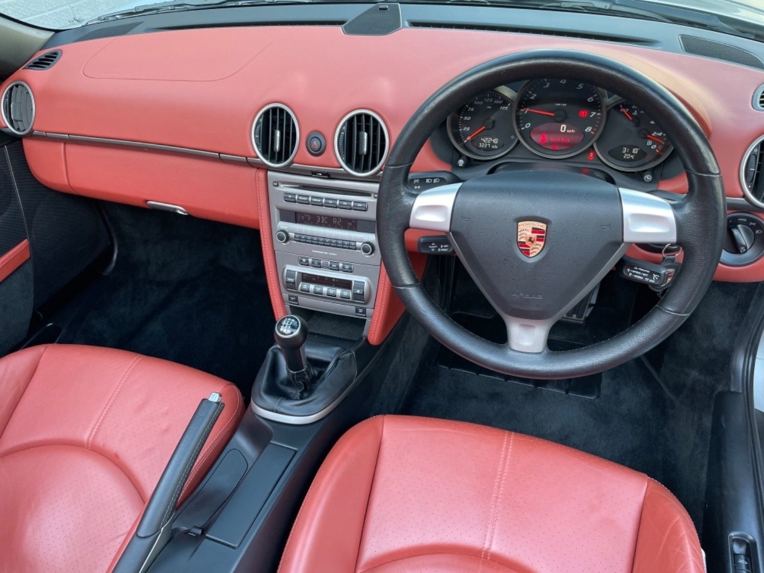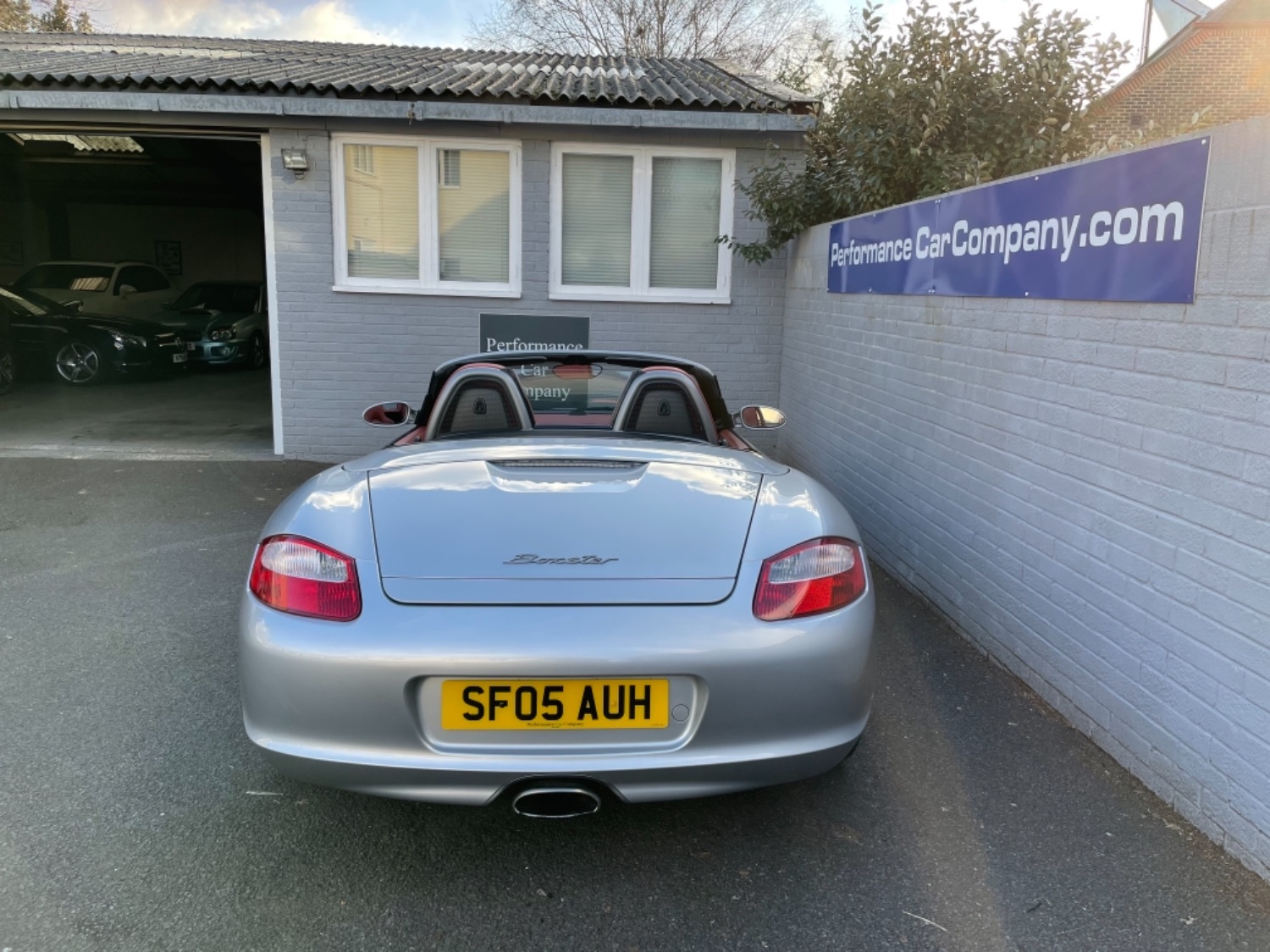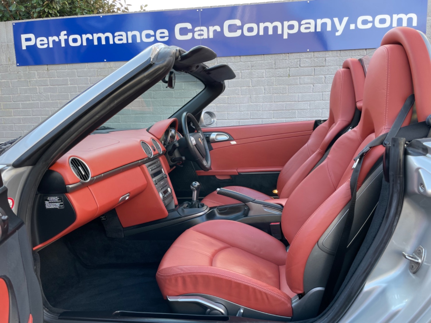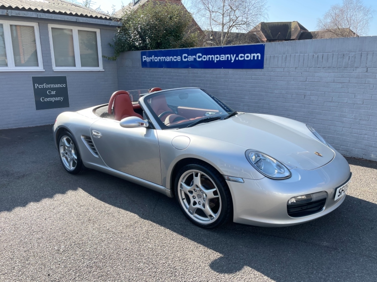 2005 05 Boxster 987 2.7 Finished in Metallic Artic Silver with Leather to sample Boxster Red Sports Seats ( 3099 pound option ) This Boxster has only covered 42000 miles with Full Service History by Porsche and Independent Garages with services at 18609 miles, 30550 miles, 36476 miles, 37946 miles, 38003 miles, 39002 miles and 40432 miles in June 2020. Only 3 private owners since new. 19 Carrera S Alloys ( 1736 Pound Option ) with Michelin N Rated tyres all round, Air Conditioning, Computer, Cruise control ( 294 option ), Fitted tracker ( 499 pound option ), PSM, CD, Black Power Roof, Electric Windows, Remote Alarm and Central Locking, Cheaper Tax bracket as registered before March 2006. Absolutely Superb Condition and a Great Opportunity to buy a Rare Very Low mileage 987 Boxster 2.7 Manual with low ownership and nice options. UK Supplied with Full book pack and original bill of sale.