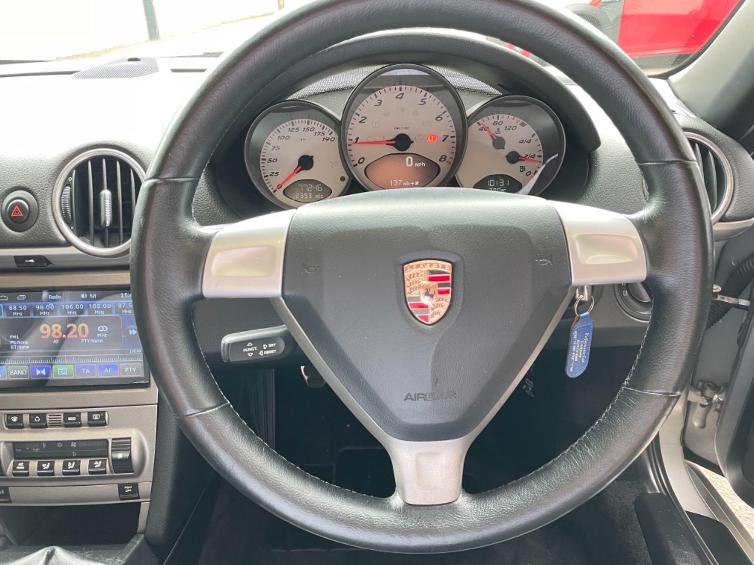 2005 05 Finished in Metallic Silver with 77,000 miles with a Full Service History, Black Leather Seats, Climate Air Conditioning, 6 Speed Manual, Boxster S Side logo, Upgraded Stereo with Bluetooth, 19" Metallic Graphite Alloys with Michelin Pilot Sport N Rated Tyres All Round, Electric Windows, Remote Alarm and Central Locking, Electric Mirrors, Black Power Roof. Superb Condition and Value for Manual 987 S. UK Supplied with Full Book Pack and Spare Key.