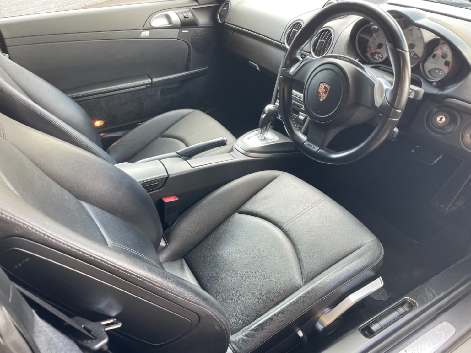 2010/60 Porsche Cayman 3.4 S PDK Gen 2 Finished in Metallic Seal Grey with only 50,000 miles and a Full Porsche Service History with services at Porsche Main Dealers at 11363 miles, 23726 miles, 34586 miles, 42426 miles and then Unique Porsche Specialist at 45603 miles in April 2021. Black Leather with Porsche Embossed Headrests, PCM Satellite Navigation updated to PCM 3.0, Porsche Bluetooth, Sports Chrono, White Dials, BOSE stereo, 19 Carrera 2 Alloys with N Rated Pirelli Tyres All Round, Porsche Coloured Crested Centres, Porsche Embossed Centre Console, Climate Air Conditioning, Rear Parking Sensors, Cruise Control, Xenons, Cayman R Side stripes, Electric Windows, Electric Mirrors, Remote Alarm and Central Locking. New AC Condensers fitted October 2021. Absolutely Fantastic Original Condition and a True Credit to its owners, plus this car was also kept under under Porsche Warranty until 20.6.21.
