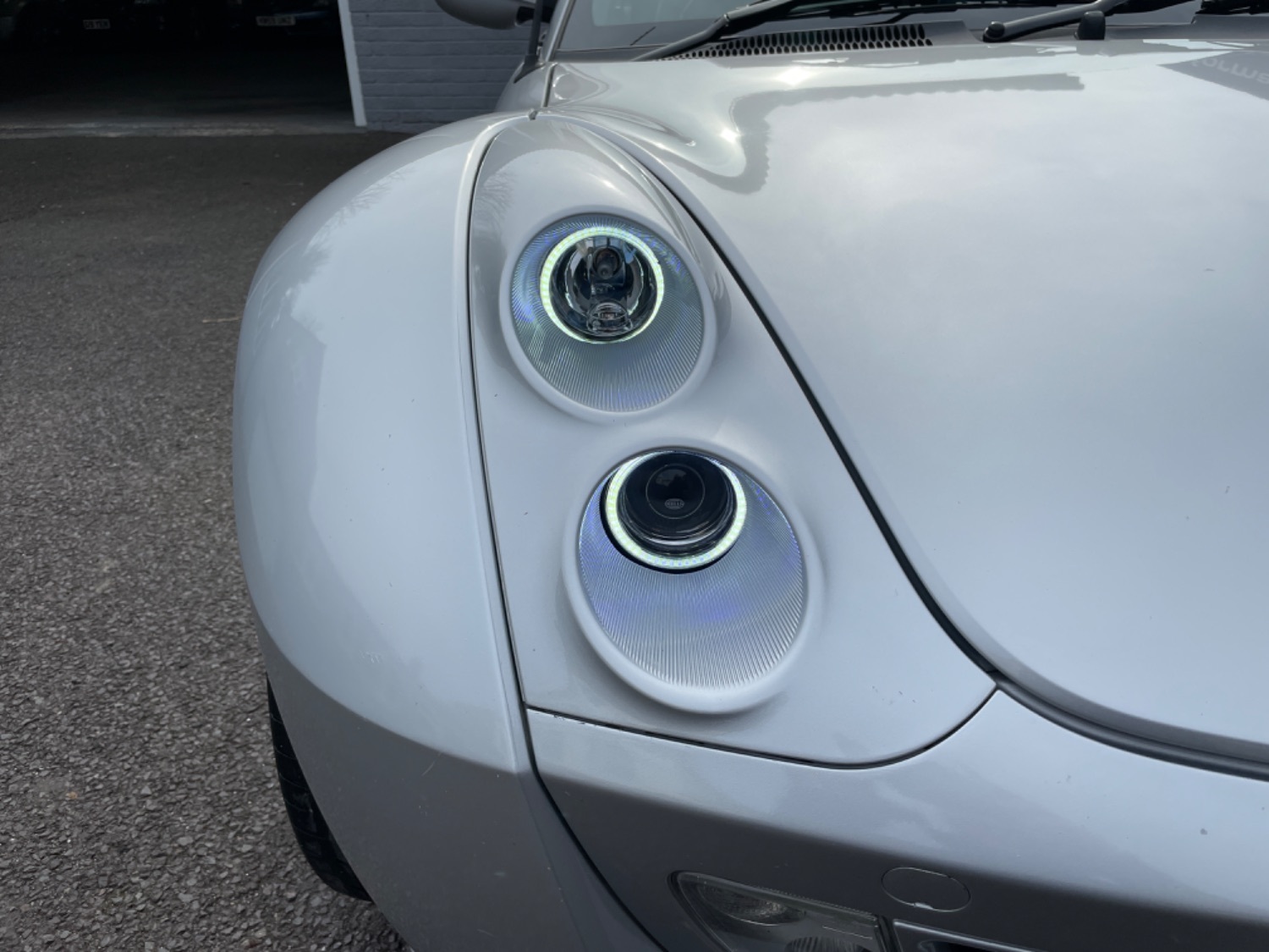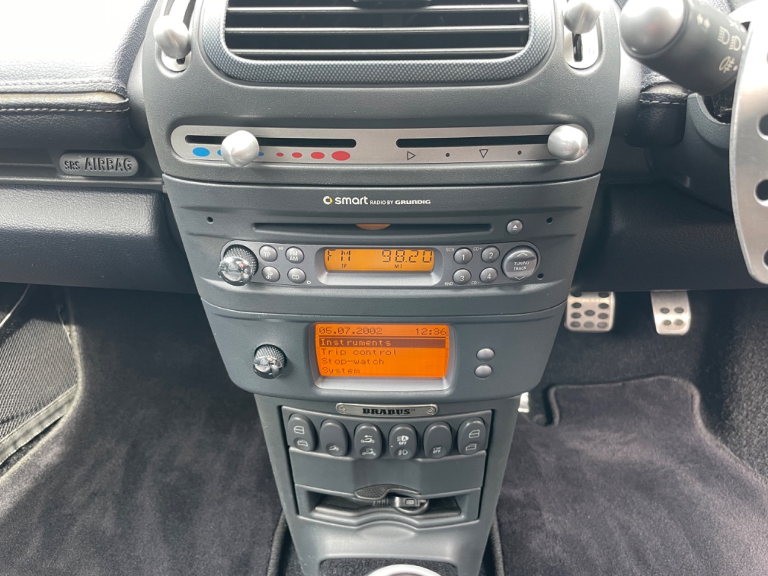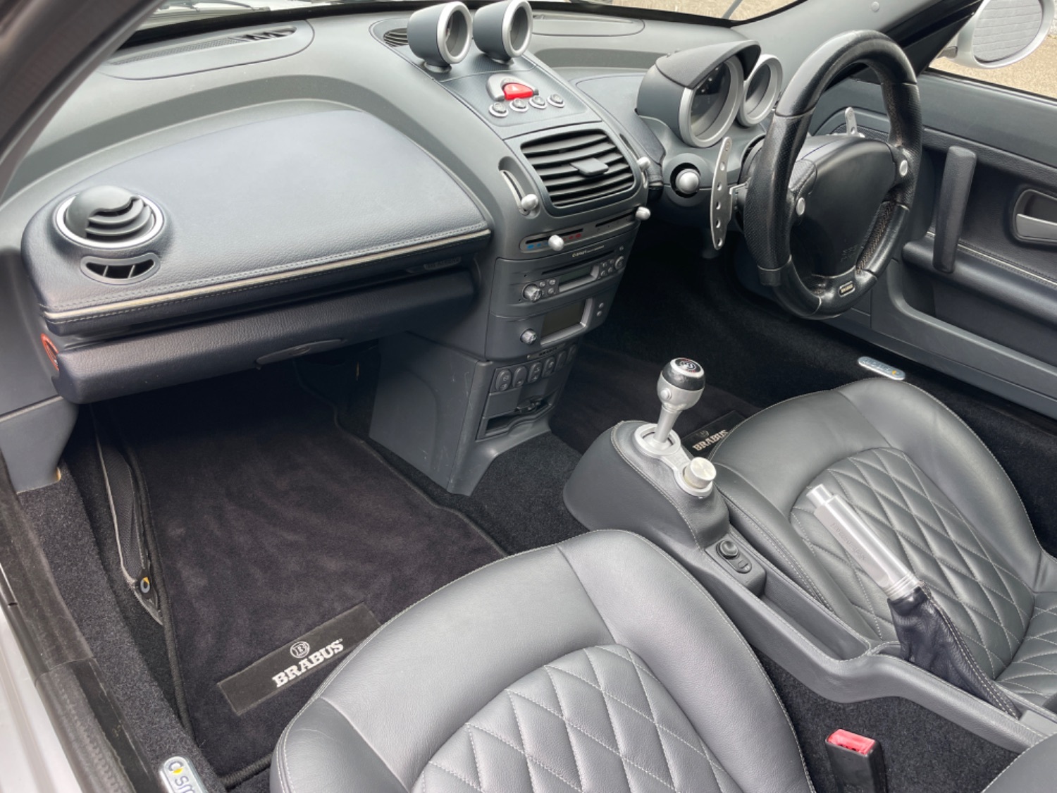 The last owner due to a back issue had the seats re trimmed with Quilted Smart Brabus Midnight Leather with Silver stitching and increased lumbar and bolster support plus the centre console re trimmed to match at a cost of 2367 pounds, ECU Remap to 116 BHP, Fitted with remote alarm on top of the standard immobiliser, upgraded Hella 90mmm angel headlight conversion which looks amazing, Unmarked 17 Alloys with Matching tyres all round, upgraded Air Conditioning pipes, fitted with very Rare Brabus V6 Steering wheel with upgraded Paddle change, Switch and knobs replaced with Alloy items. SAM Unit replaced and sealed, IPod / iPhone interface Fitted, Colour coded roof side bars and wing mirrors, Auto lights, Electric windows, Remote Central Locking, black Power Roof, Hard Top Preparation, Rear Load cover and divider, Original Brabus Mats. Cheap to Tax and 50+ MPG. This Rare Smart Roadster Brabus Coupe Xclusive has been cherished by only 3 Owners from new with an Incredible History File detailing all works, Old MOTs, upgrades and even original bill of sale. They certainly don’t come along very often like this and a Great Opportunity for a Fun Usable Future Classic which turns heads wherever it goes. UK Supplied with Full Book Pack, Amazing History File and Spare Key.