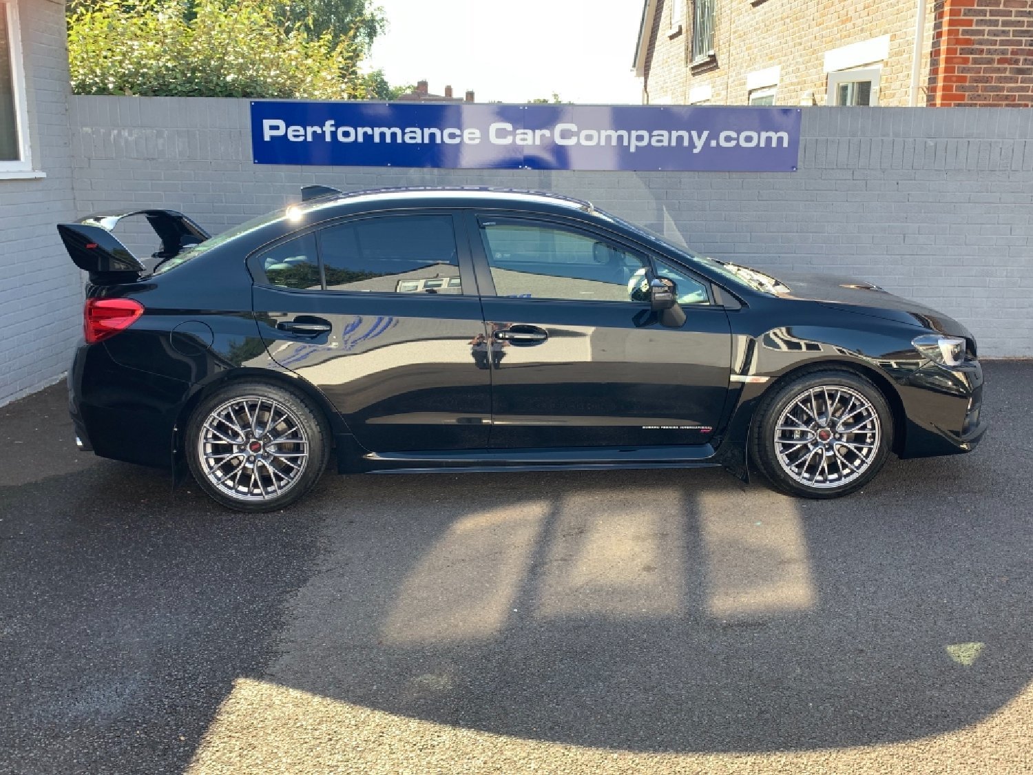 2015/65 Subaru WRX STi Finished in Metallic Black and having covered only 24,900 miles with a Full Service History with Services at 12065 miles, 22664 miles, and 23902 miles, Plus Only 2 Owners from new. Black and Red Alcantara Sports Seats, Air Conditioning, Multi Function Steering wheel, Cruise Control, 18 Graphite Alloys, Rear Parking Sensors with Visual and Audible Warning, Keyless Start and Entry, Rear Sun Protection Glass, Xenon Headlights, Auto Lights, High Level Rear Spoiler, Bluetooth Connectivity, DAB, Touch Screen Stereo, Push Button Start, Electric Windows, Electric Folding Mirrors, Remote Alarm and Central Locking, Cobra Trackers, Subtle Red Decals (can easily be removed) make this WRX STi Really Stand Out. It is in Superb Original Condition and a Credit to its 2 Owners. Superb UK WRX STi and Great Value with these Credentials in this Condition UK Supplied with Hand books and Spare Key.