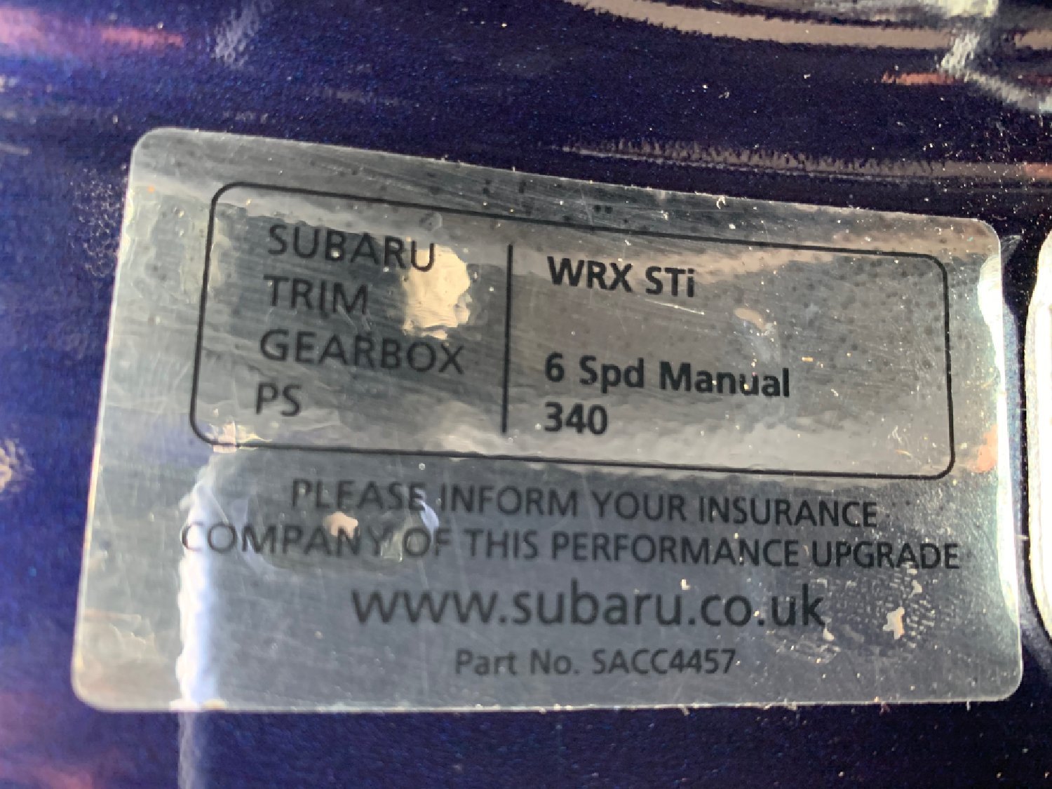 Finished in metallic Blue with 41,000 miles and a Full Service History, 6 Speed, Recaro Sports Seats, upgraded Stereo with Fitted Satellite Navigation, High Level Rear Spoiler, fitted STi front lip spoiler, Air Conditioning, 18 Alloys, Multi Function Steering Wheel, Cruise Control, Rear Spoiler, Electric Windows, Remote Central locking with Keyless Entry and Push Button Start, Electric Mirrors, Xenons, CD, Adjustable Differential, Fitted STi mud flaps Superb Original Condition, Rare low mileage WRX STi 340R. UK Supplied with Full Book Pack and Spare Key.