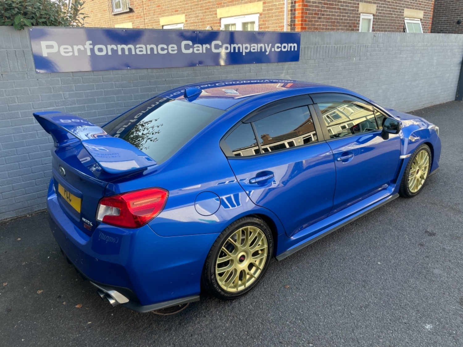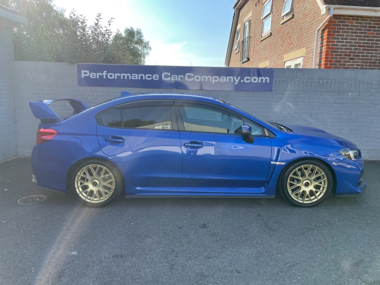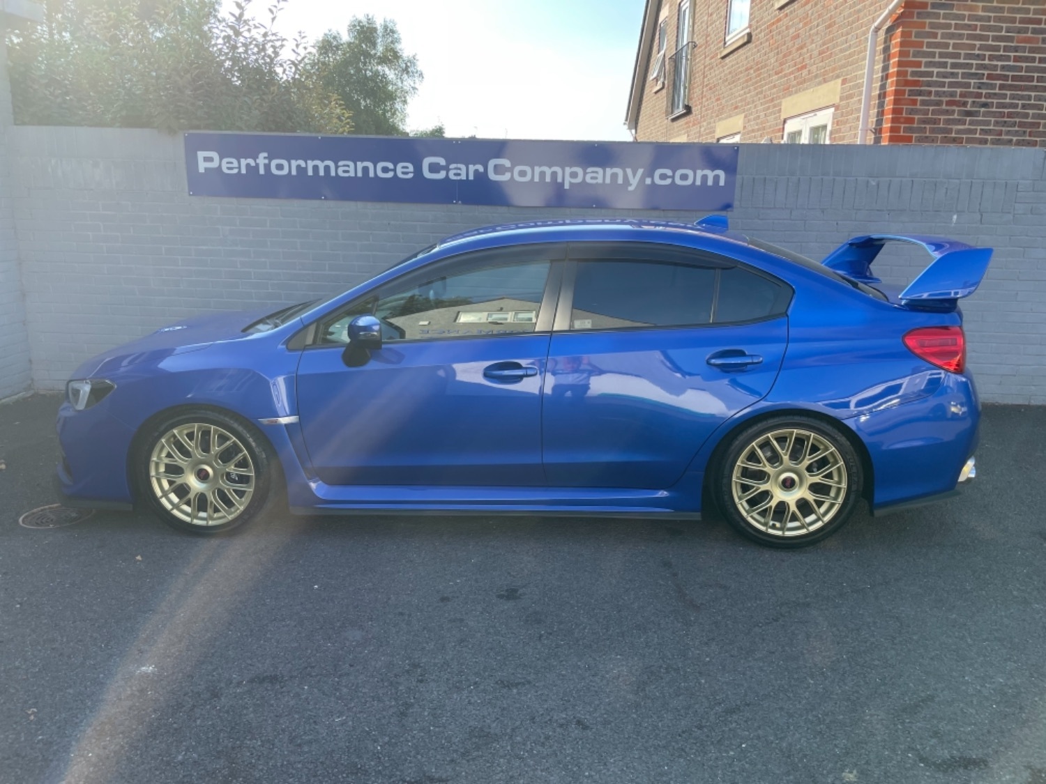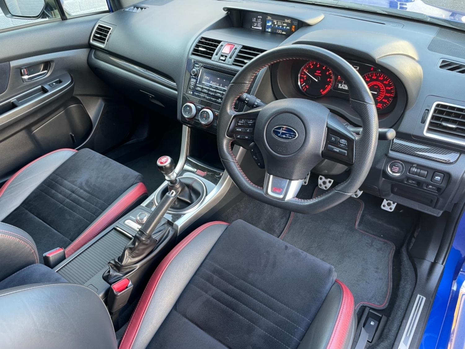 2015 / 15 Subaru WRX STi Finished in Metallic Blue and having covered only 37,000 miles with a Full Service History, Black and Red Alcantara Sports Seats, Air Conditioning, Rear Parking Sensors, Multi Function Steering wheel, Cruise Control, Rare 18 Original Gold Alloys from Factory with Matching Tyres All Round, Rear Sun Protection Glass, Auto Lights, High Level Rear Spoiler, Push Button Start, Keyless Entry, Electric Windows, Electric Folding Mirrors, Remote Alarm and Central Locking. Also Fitted with Lower Front, Rear and Side Lip spoilers plus Window wind deflectors. This WRX STi is in Absolutely Superb Condition and Looks Stunning with the extras fitted to this car. UK Supplied with Hand book and Spare Key.
