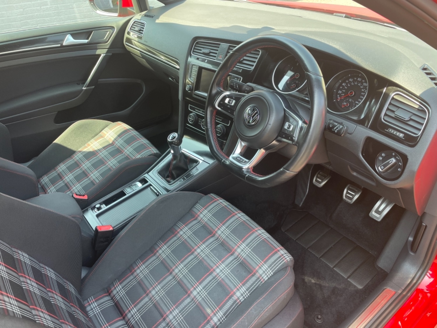 2014 14 VW Golf 2.0 GTi Finished in Red with Only 52,000 miles and a Full Service History with Services at 9367 miles, 19463 miles, 26846 miles, 43327 miles included Spark Plugs, 48824 miles and 52100 miles included Brake Fluid change. Golf GTi Tartan Seats, 6 Speed Manual, Factory Satellite Navigation, Factory Bluetooth, Cruise Control, Air Conditioning, Electric Windows, Electric Mirrors, Remote Alarm and Central Locking, 18 Alloys with Michelin Tyres All Round. Absolutely Superb Original Condition and Great Value for Low Mileage well maintained VW Golf GTi. UK Supplied with Full Book Pack and Spare key.